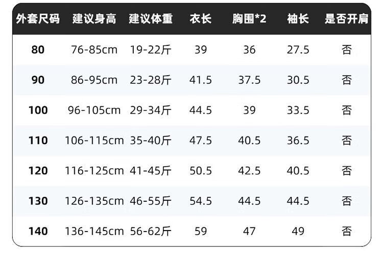 China(cm) 72-76 76-81 81-87 87-93 93-98