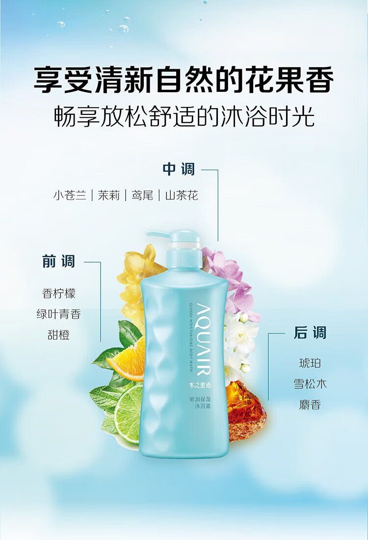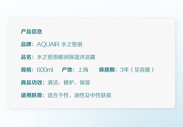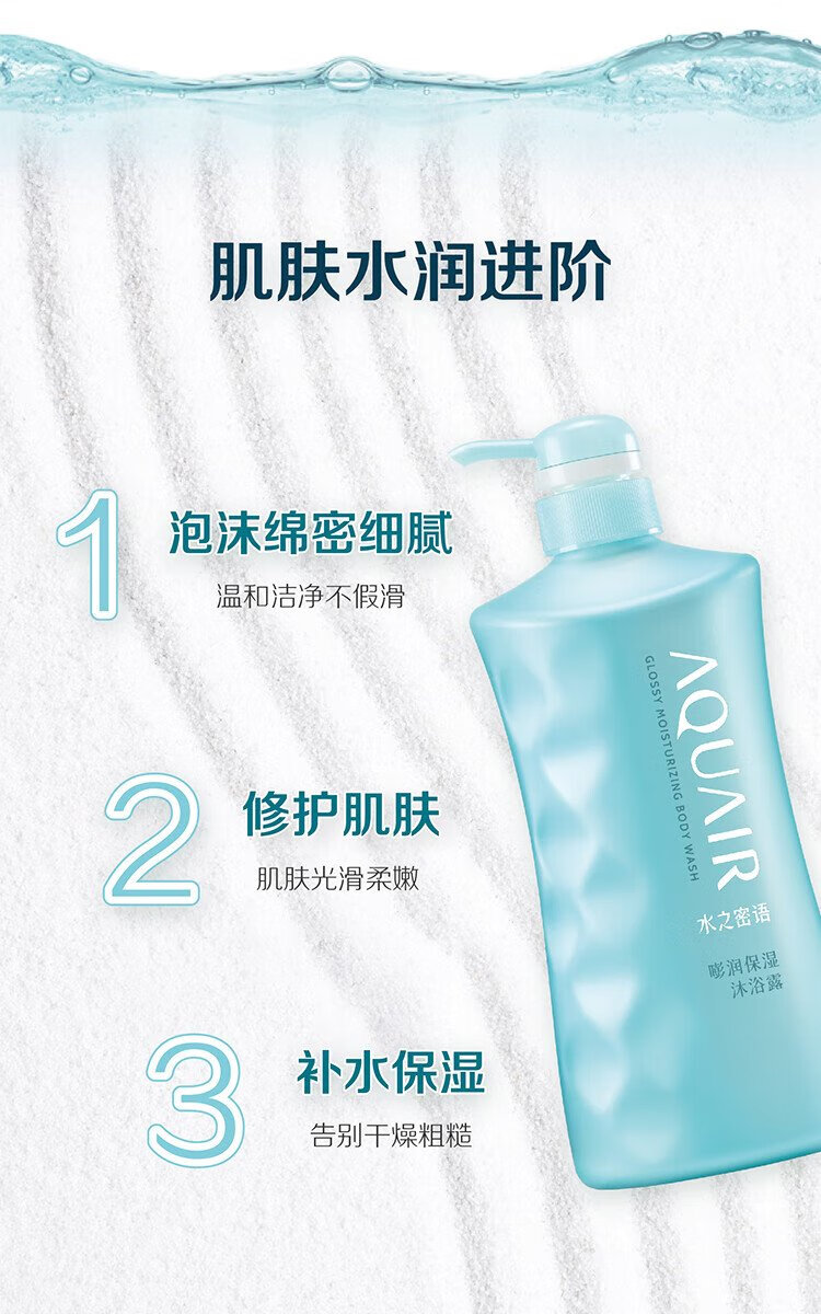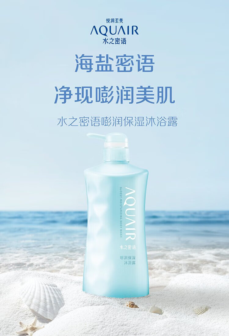 Secret of Water Hydrating Shower Gel 600ml, moisturizing, facial care grade hyaluronic acid, French sea salt for gentle cleansing