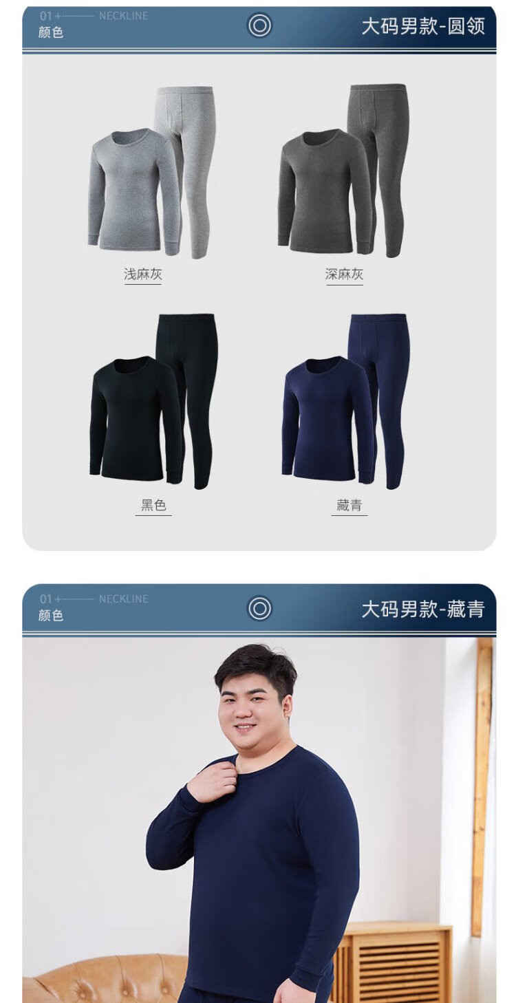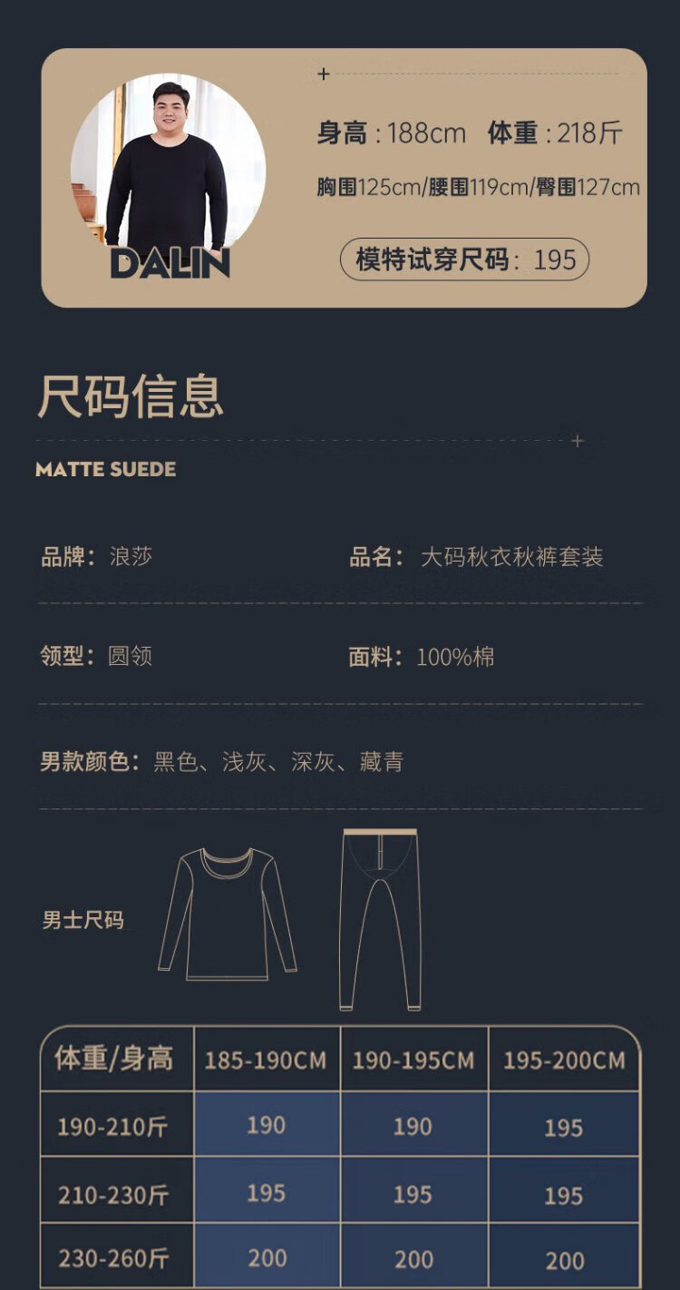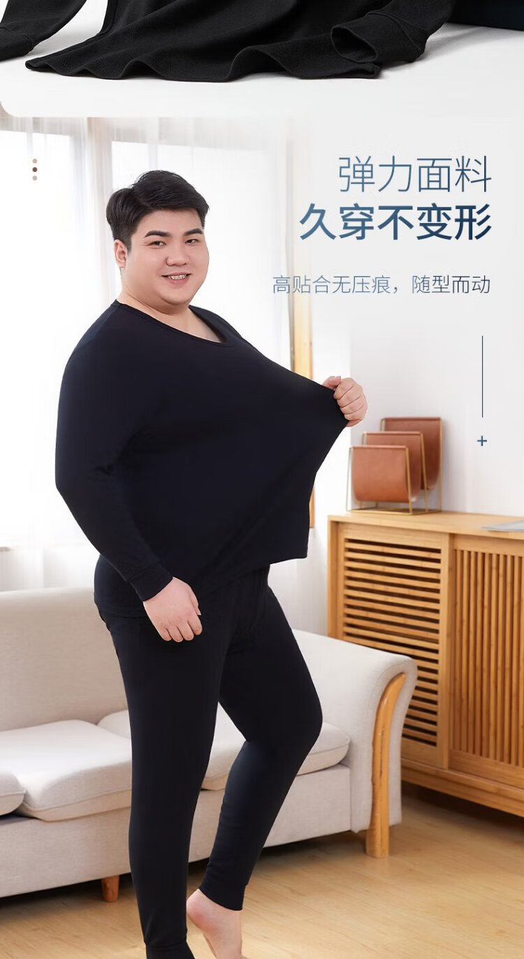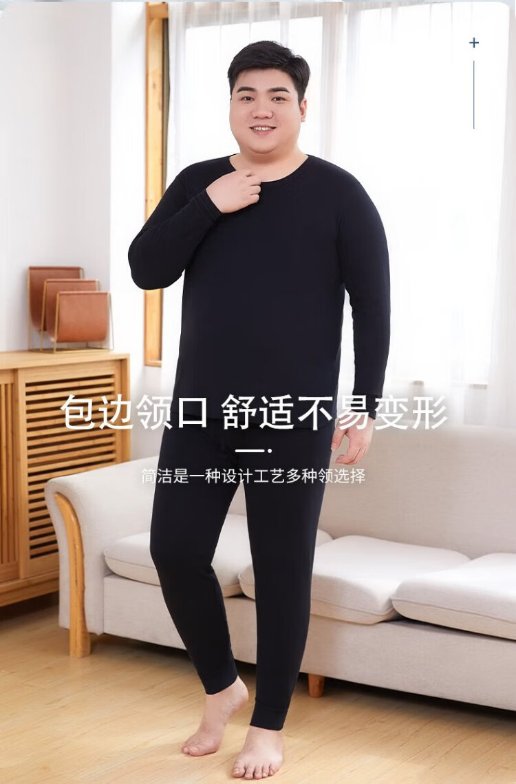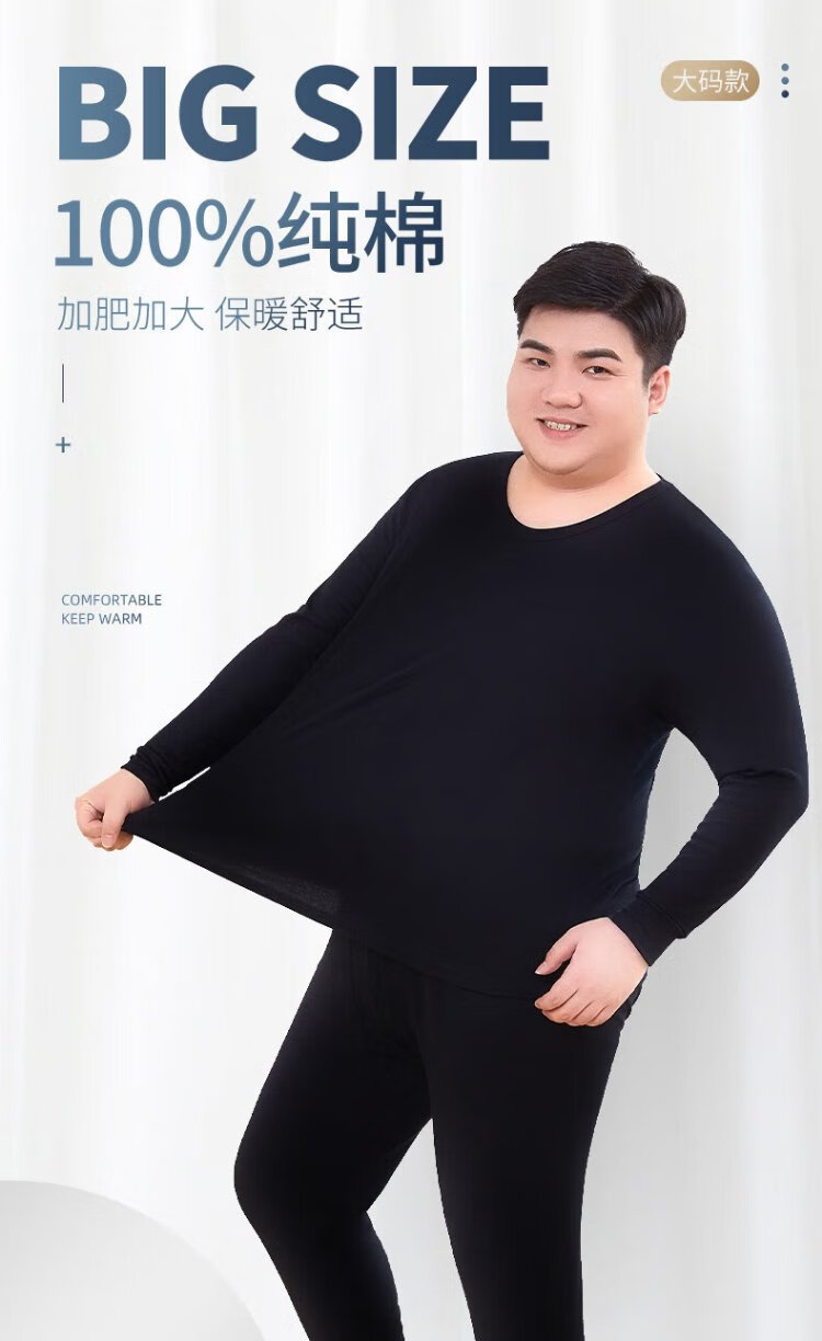 Langsha large size autumn clothes and autumn trousers men's suit with extra fat and 100% cotton for fat men and fat men loose thin thermal underwear