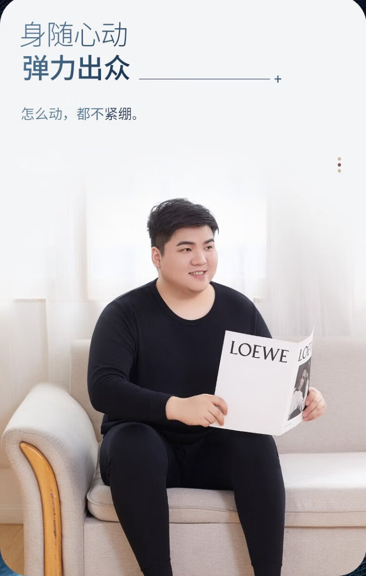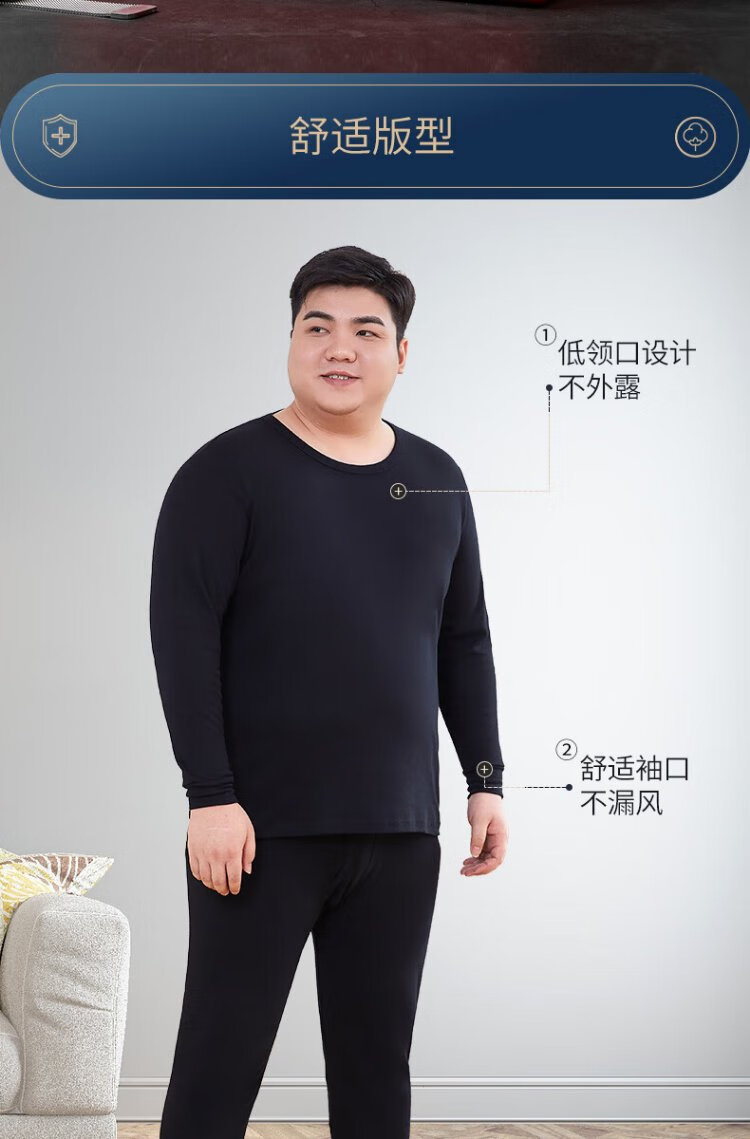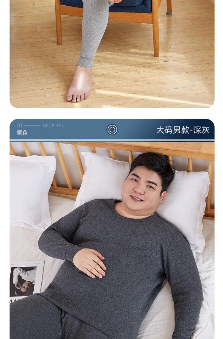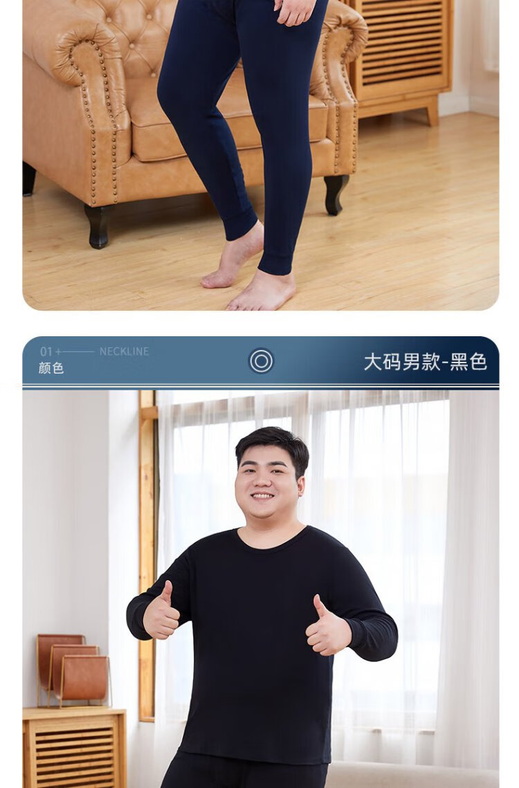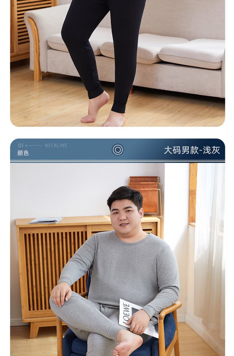 Langsha large size autumn clothes and autumn trousers men's suit with extra fat and 100% cotton for fat men and fat men loose thin thermal underwear