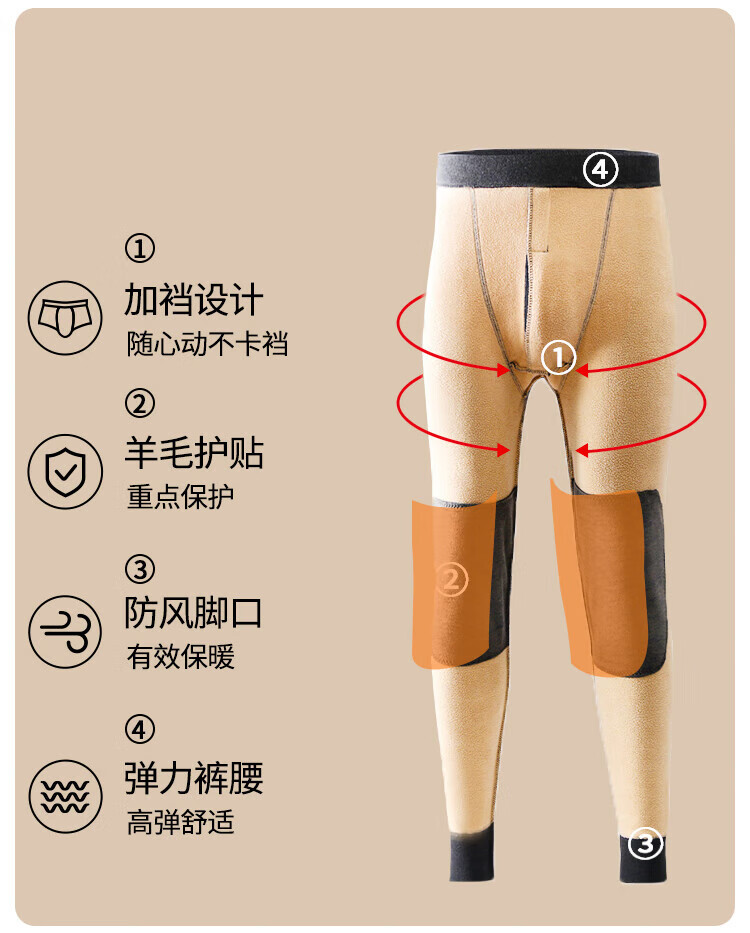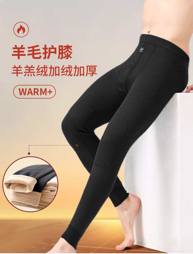 Catman wool knee pads for men, men's warm trousers, velvet thickened long johns, men's cotton trousers, winter men's large size cold-proof leggings