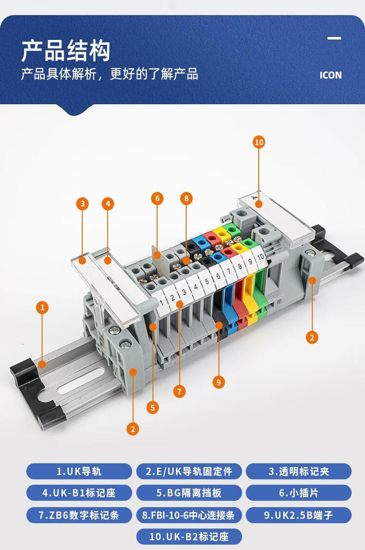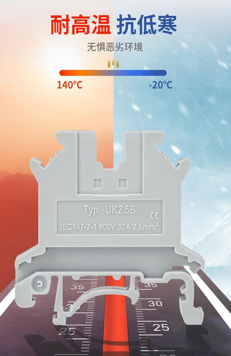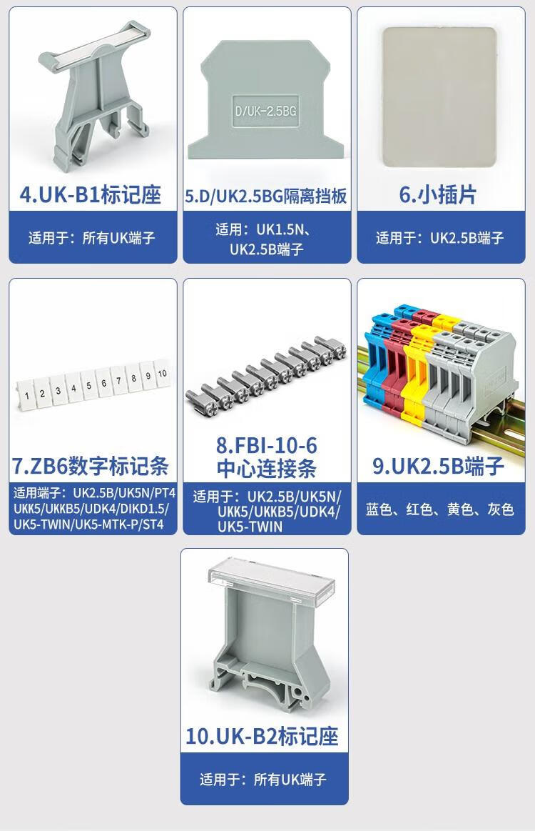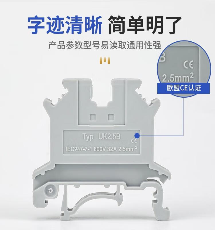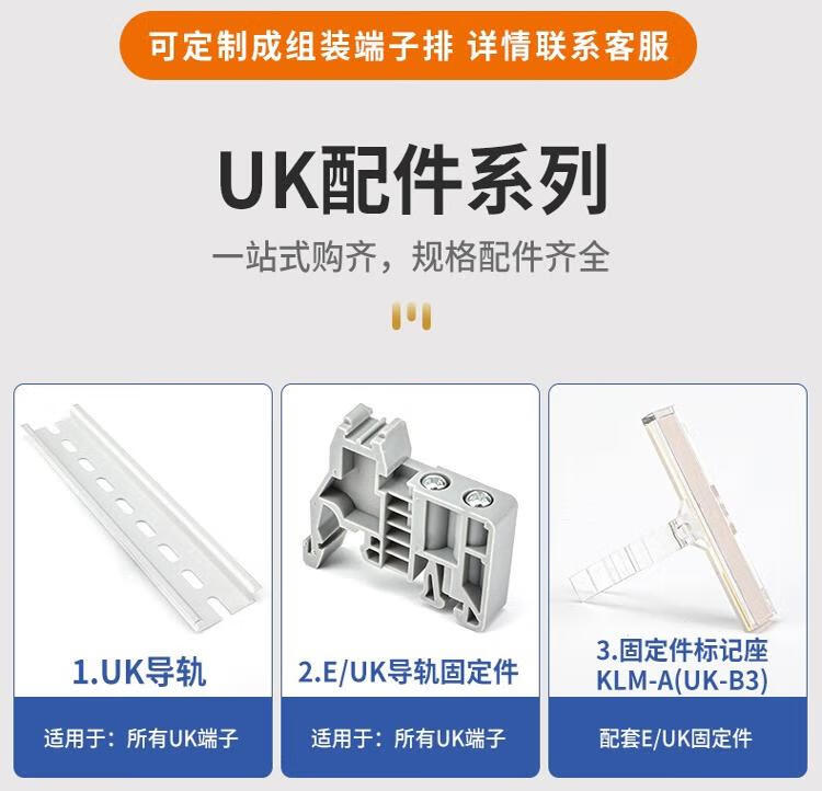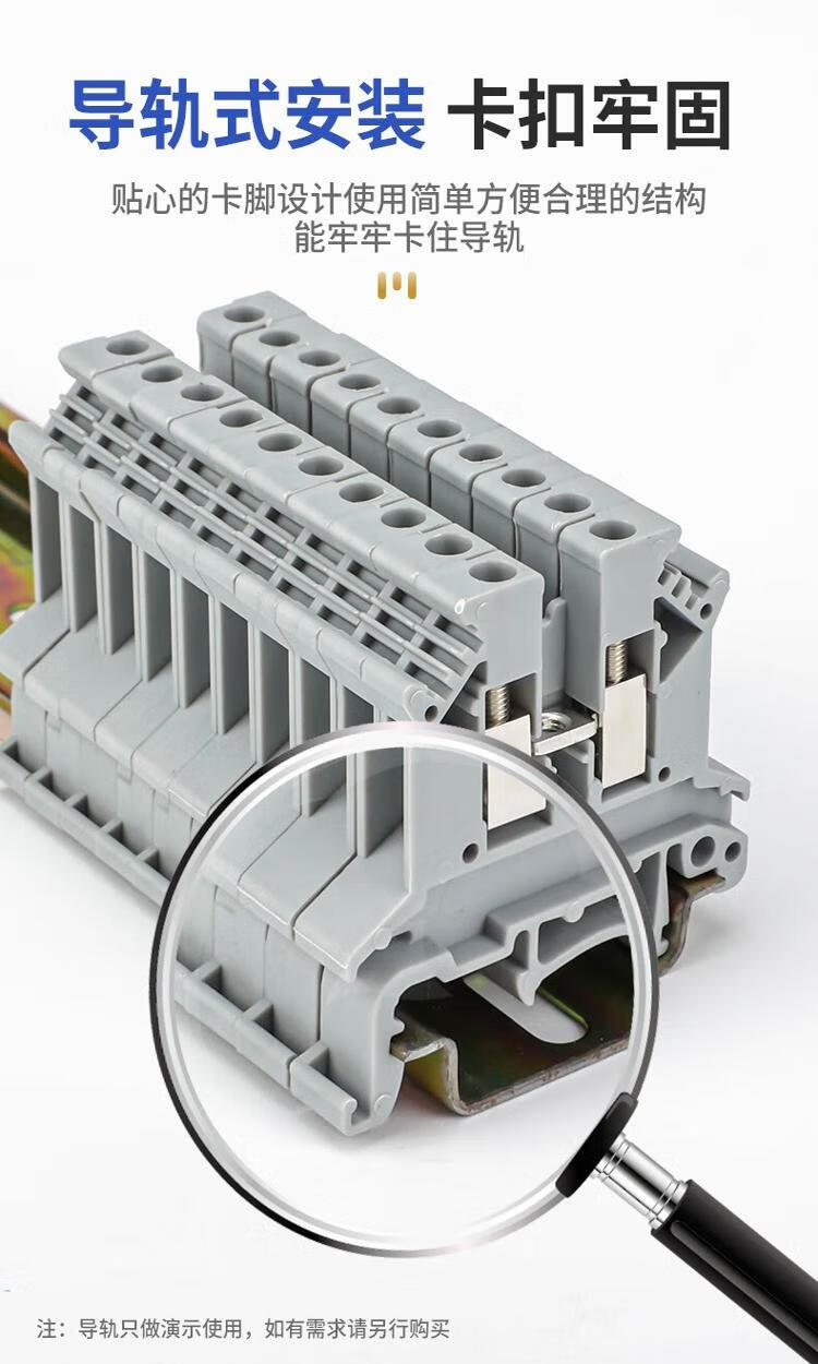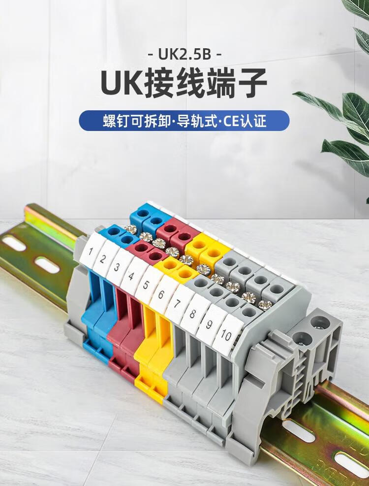Andatong UK terminal block UK2.5B terminal block nylon flame-retardant copper rail-type voltage terminal block FBI-10-6 center shorting strip 10 positions 1
