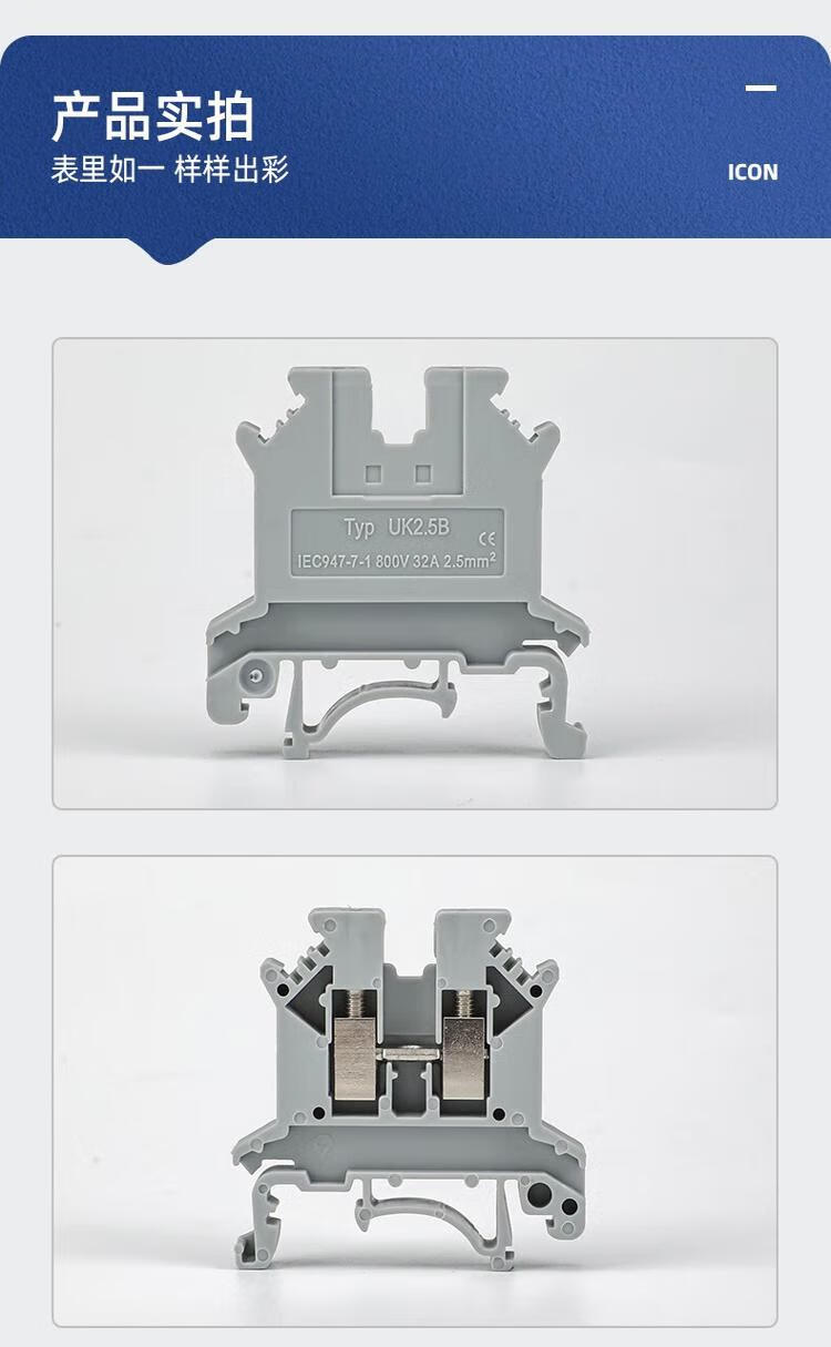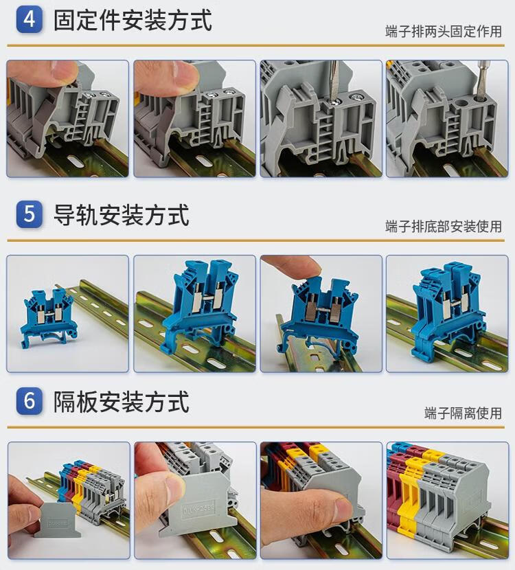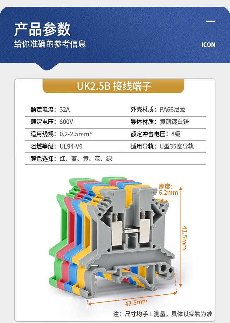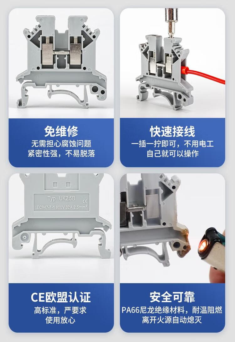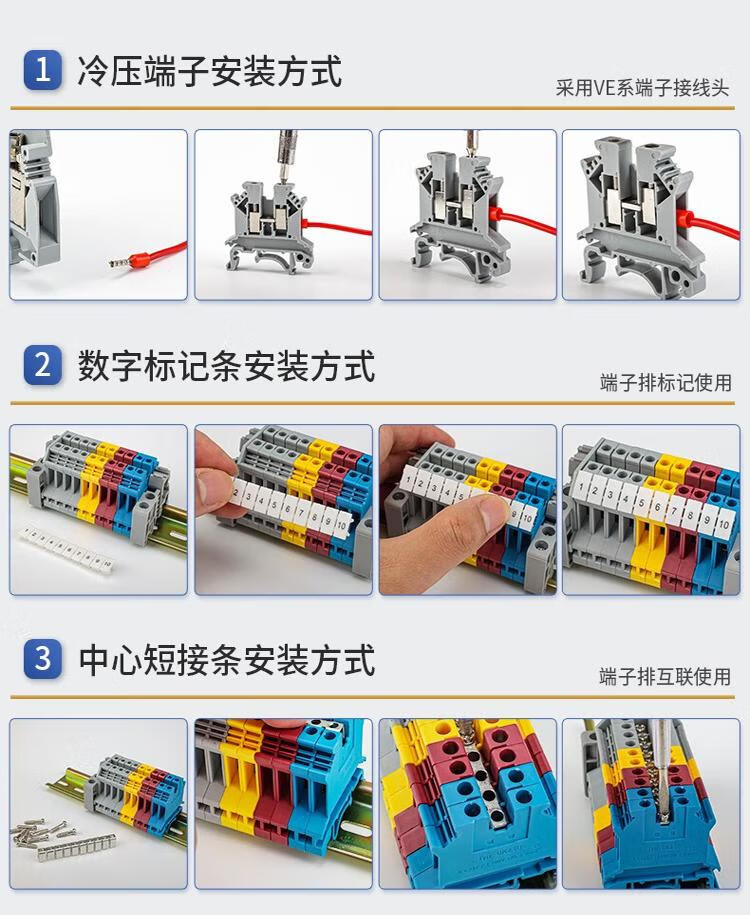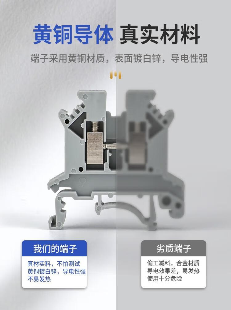 Andatong UK terminal block UK2.5B terminal block nylon flame-retardant copper rail-type voltage terminal block FBI-10-6 center shorting strip 10 positions 1