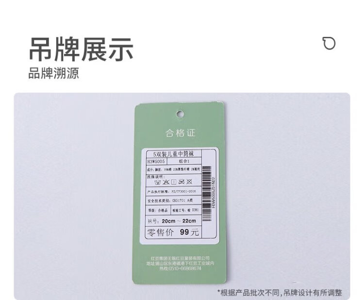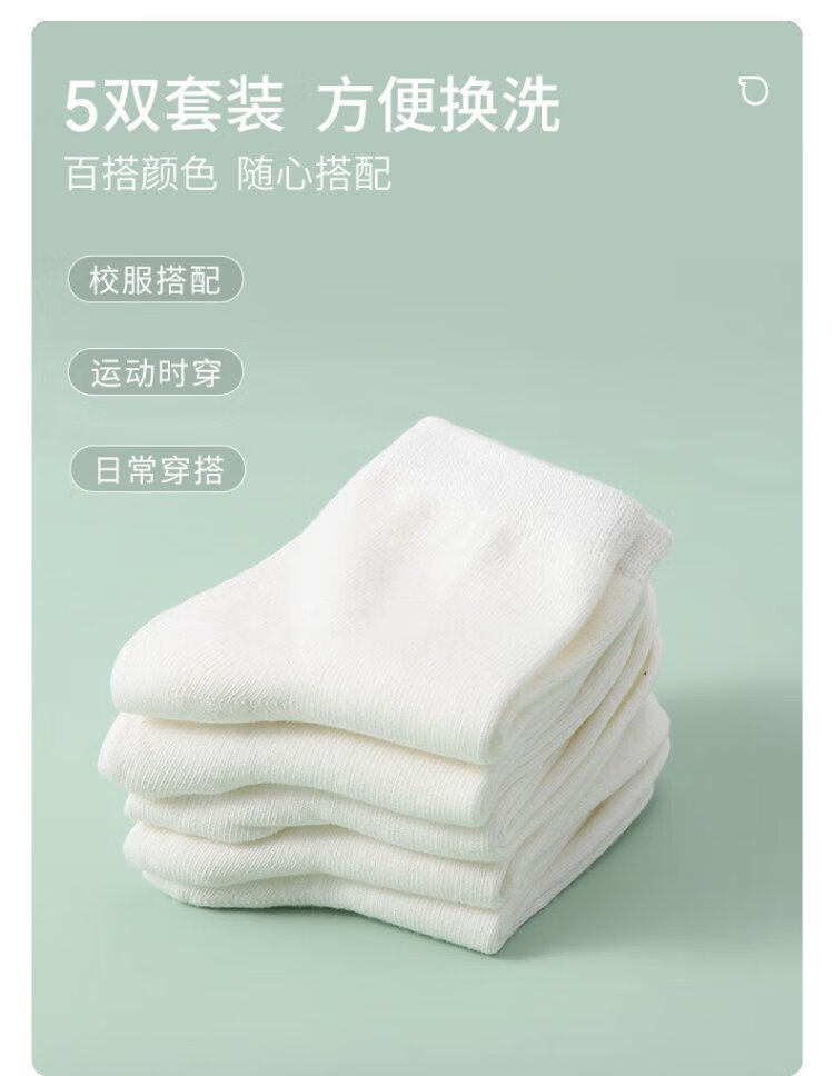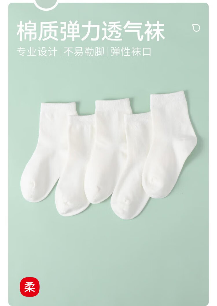 Red bean children's socks white boys and girls sports white socks cotton breathable mid-calf socks student socks W5005 group 1 22-24