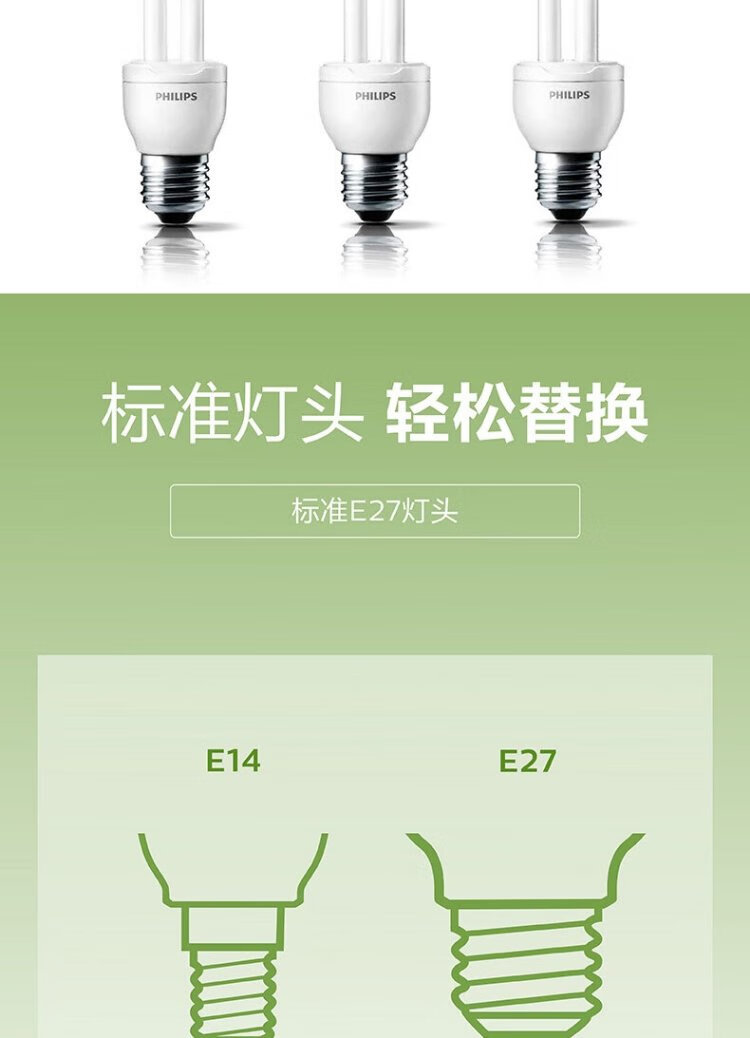 Philips (PHILIPS) U-shaped energy-saving lamp standard energy-saving lamp E27 screw socket 8W 2U white light (6500K)