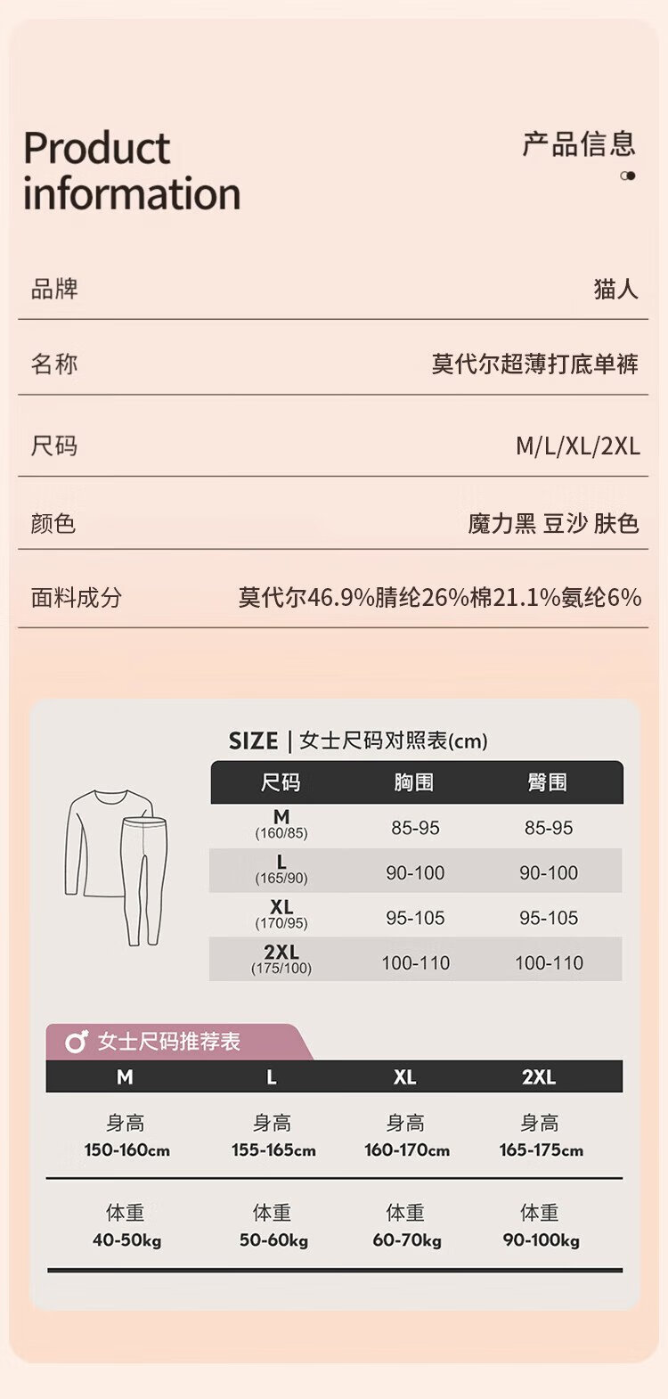 Catman Modal Autumn Pants Women's Warm Pants Women's Ultra-Thin Mask Pants Heating Silk Leggings Slim Cotton Pants Magic Black L