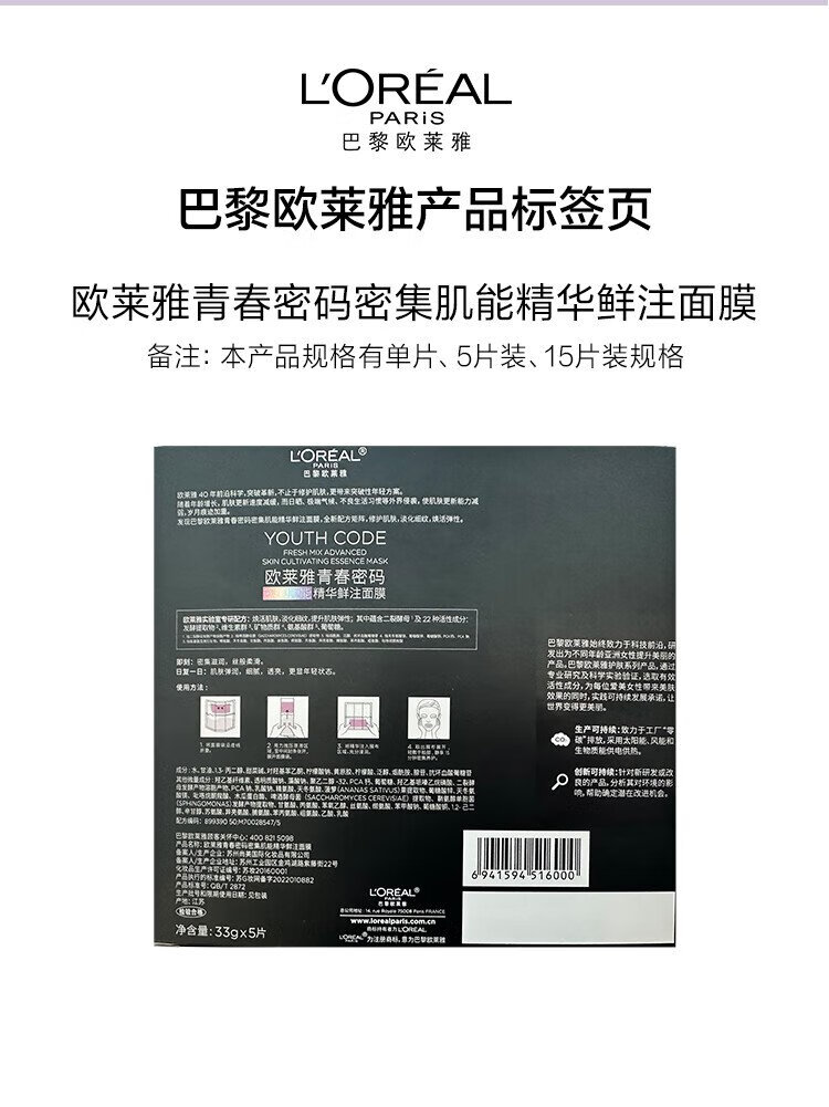L'Oreal Black Essence Mask 15 pieces moisturizing anti-wrinkle brightening skin care products cosmetics birthday gift