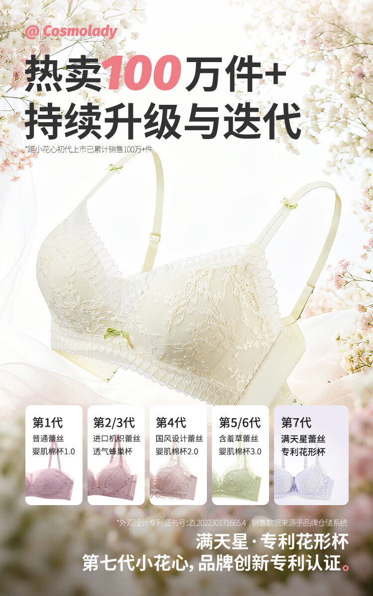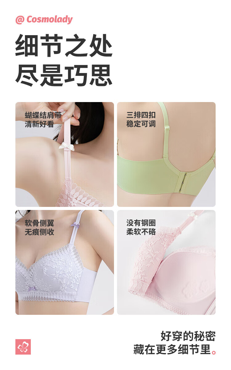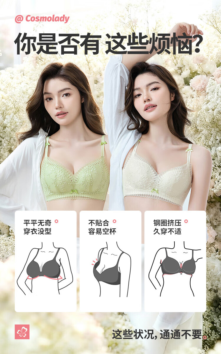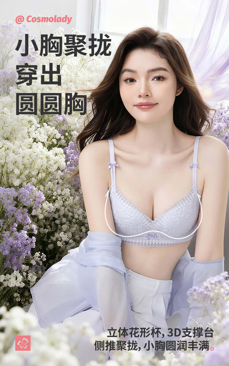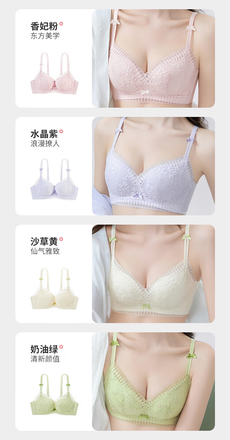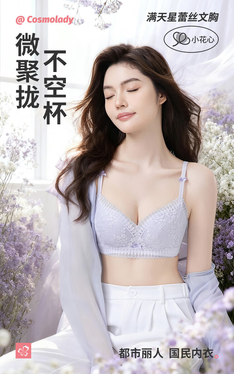 Urban Beauty Bra No Wires Push-Up Medium Thin Breathable Small Flower Heart Lace Bra Underwear Women 2B32C6