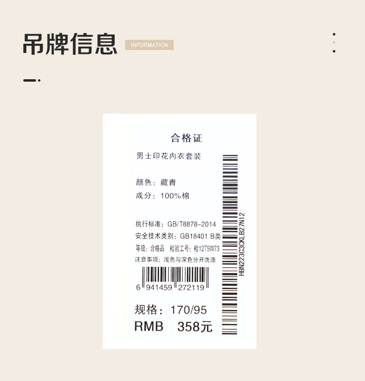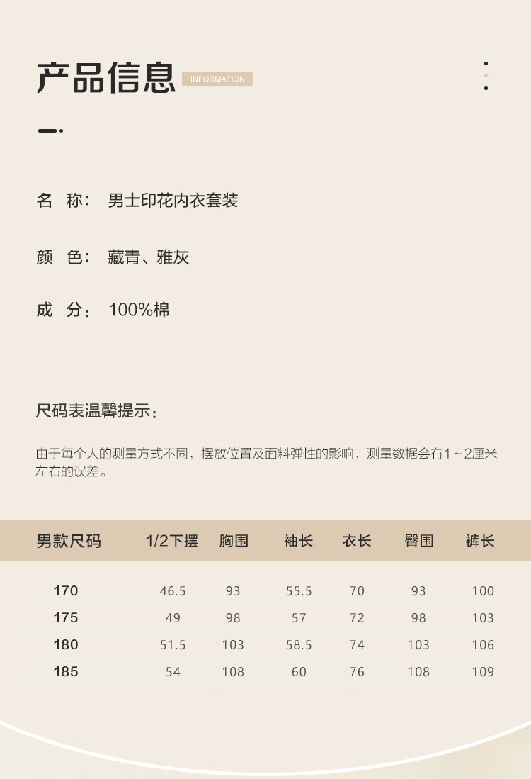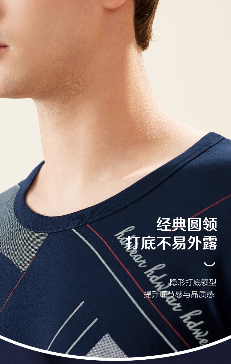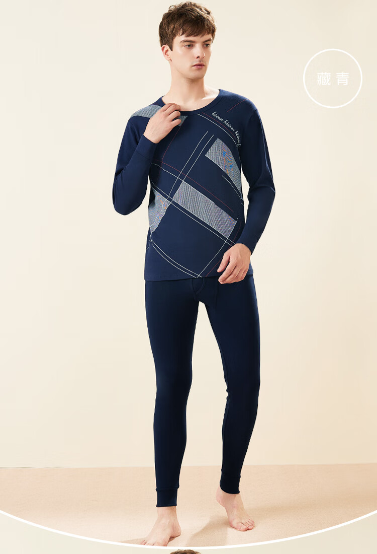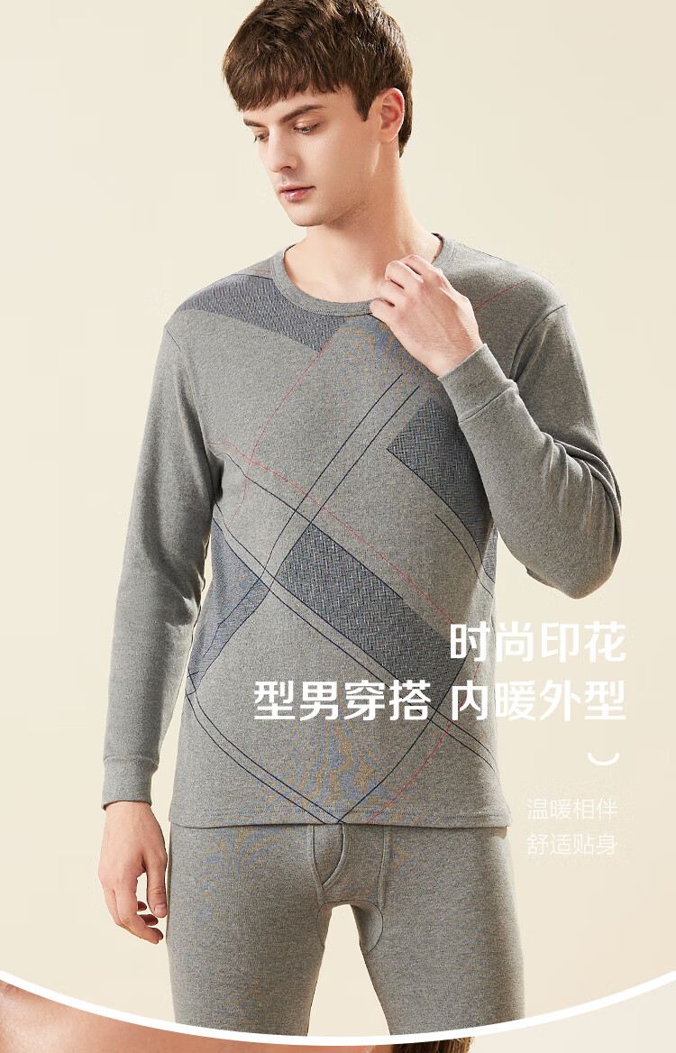 Hongdou Underwear Men's Pure Cotton Autumn Clothes and Autumn Pants Set Pure Cotton Printed Thin Cotton Sweater Cotton Pants Light Linen