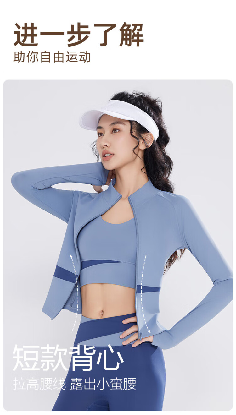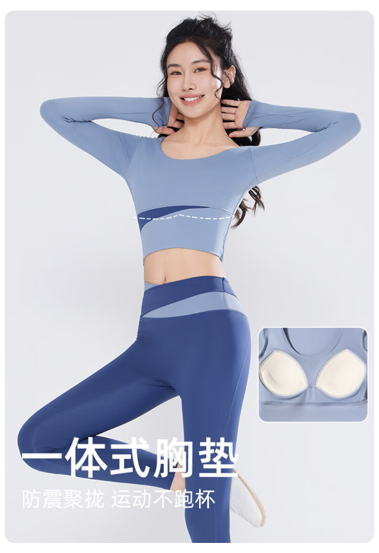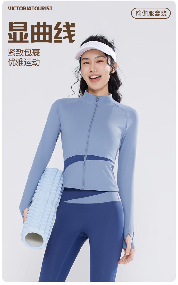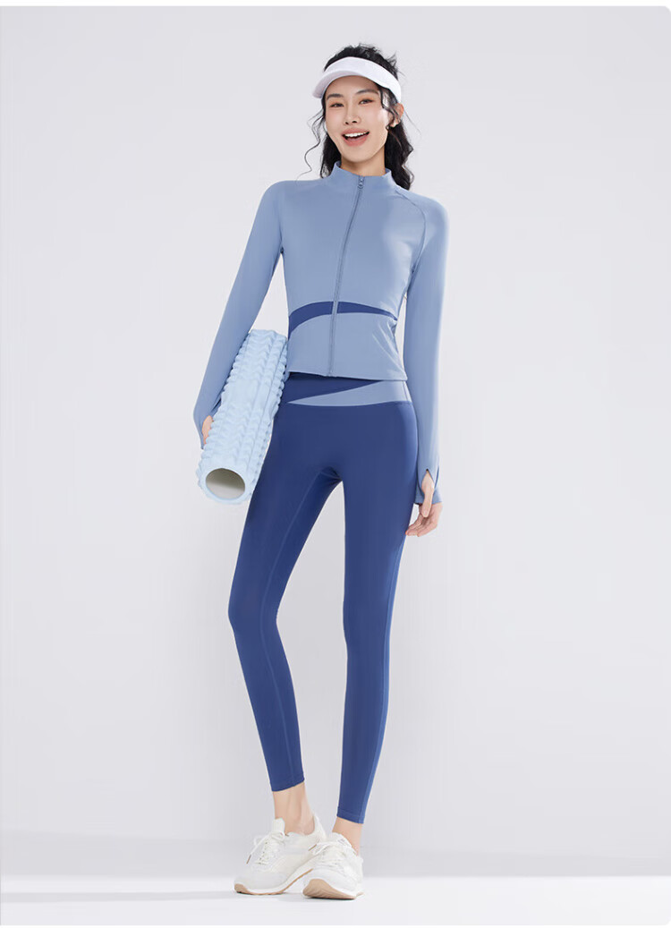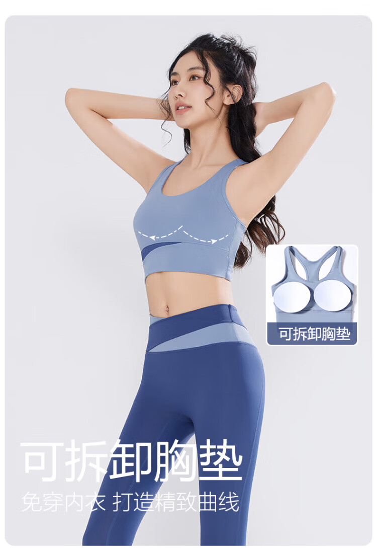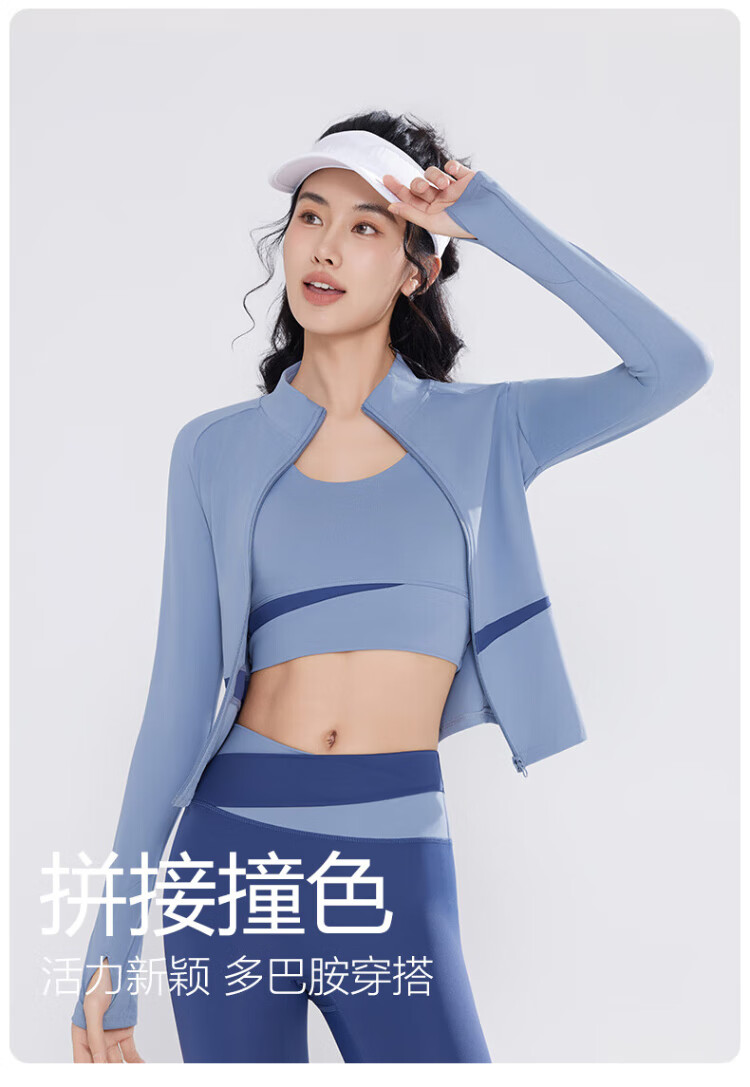 Victoria Traveler Yoga Wear Women's Suit Fitness Wear Running Sports Suit Women's Pilates Jacket with Breast Pad Three-piece Set Blue L