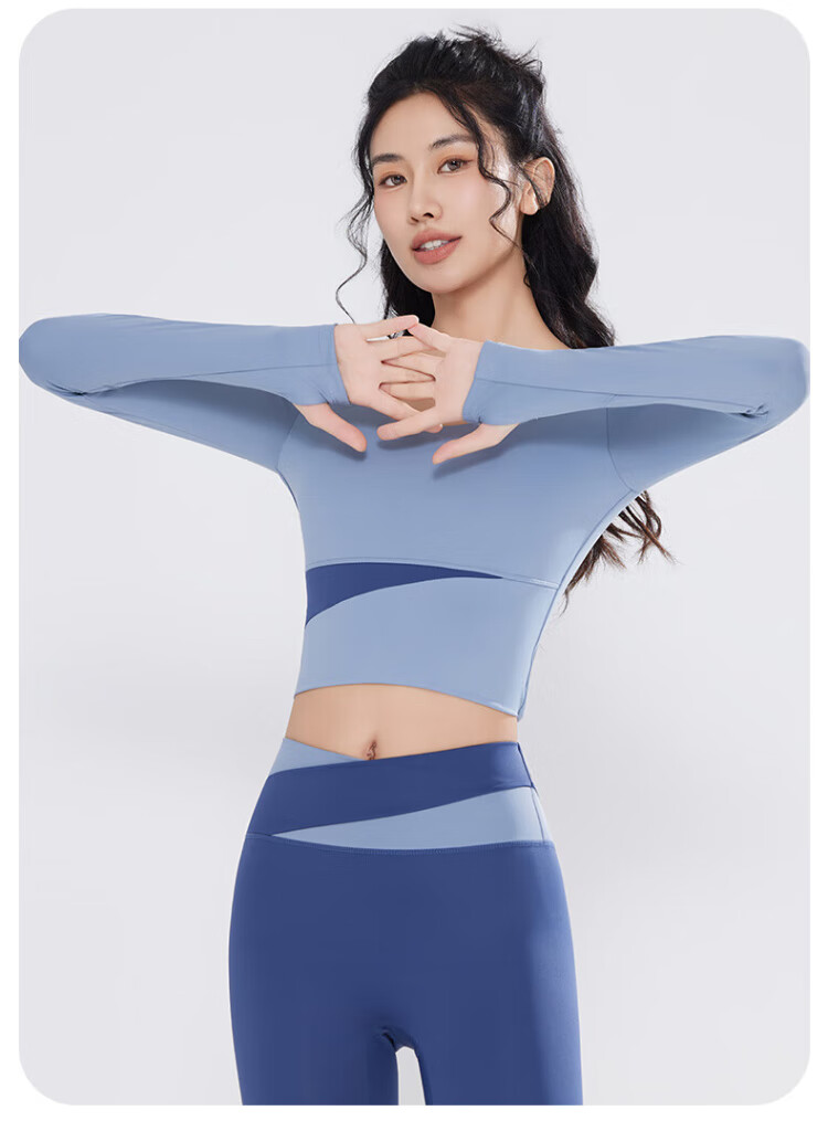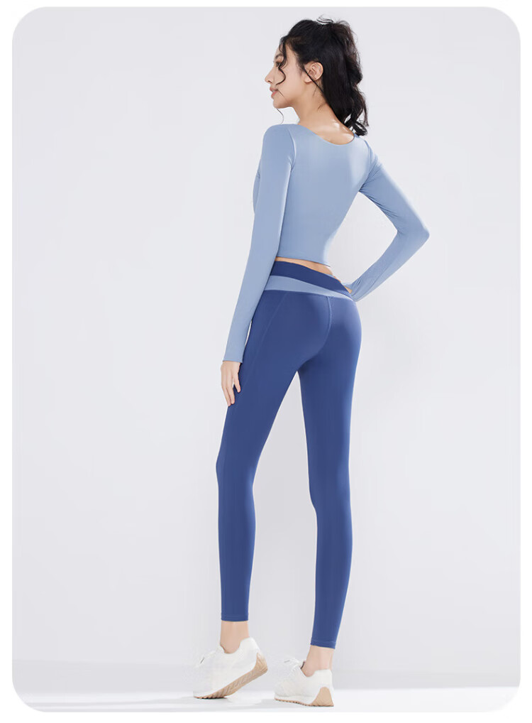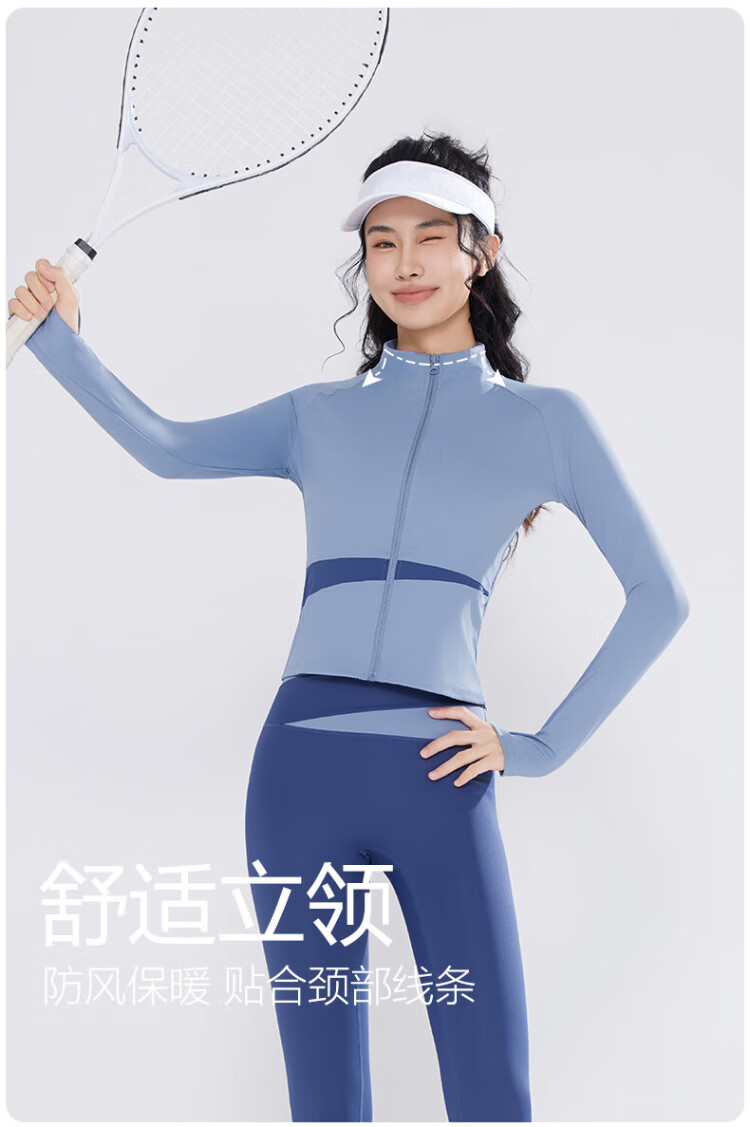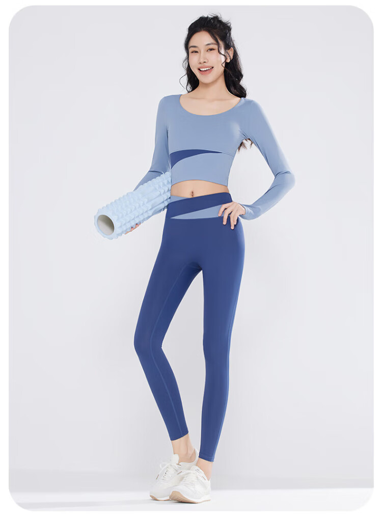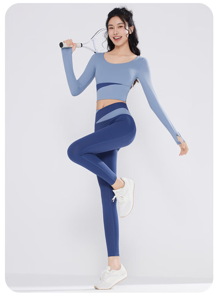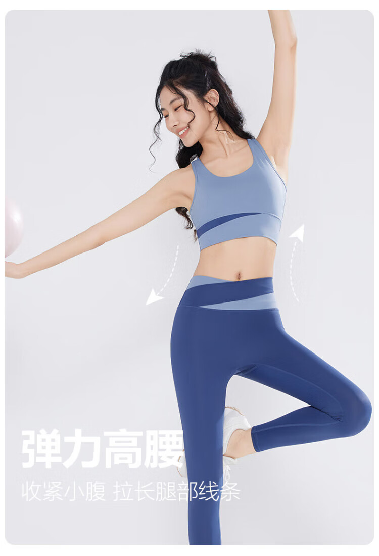 Victoria Traveler Yoga Wear Women's Suit Fitness Wear Running Sports Suit Women's Pilates Jacket with Breast Pad Three-piece Set Blue L