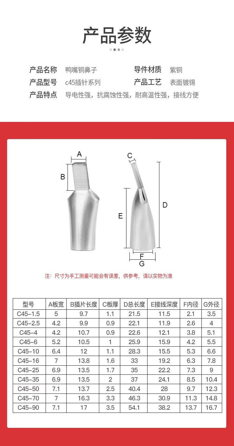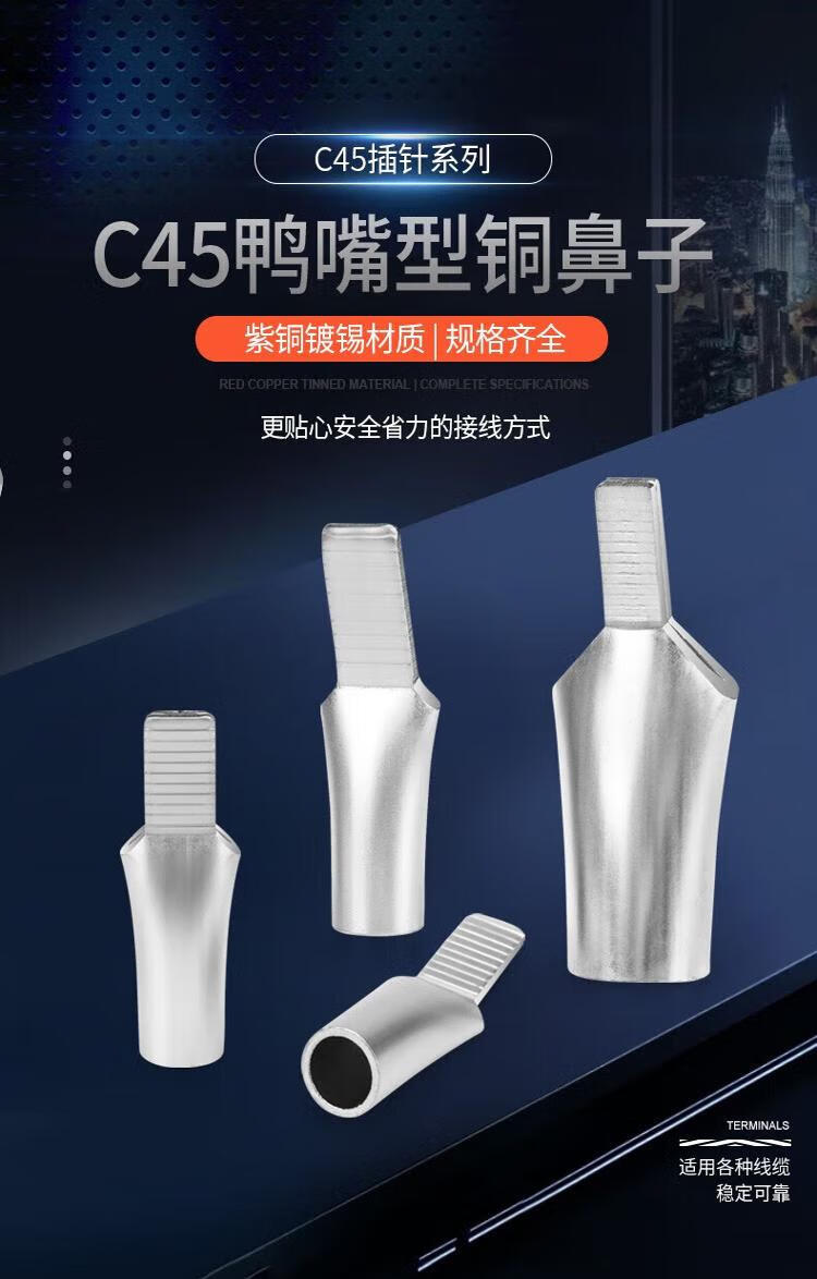Andatong duckbill type copper nose C45 pin duckbill copper nose terminal block circuit breaker insert C45-6mm (50 pieces)
