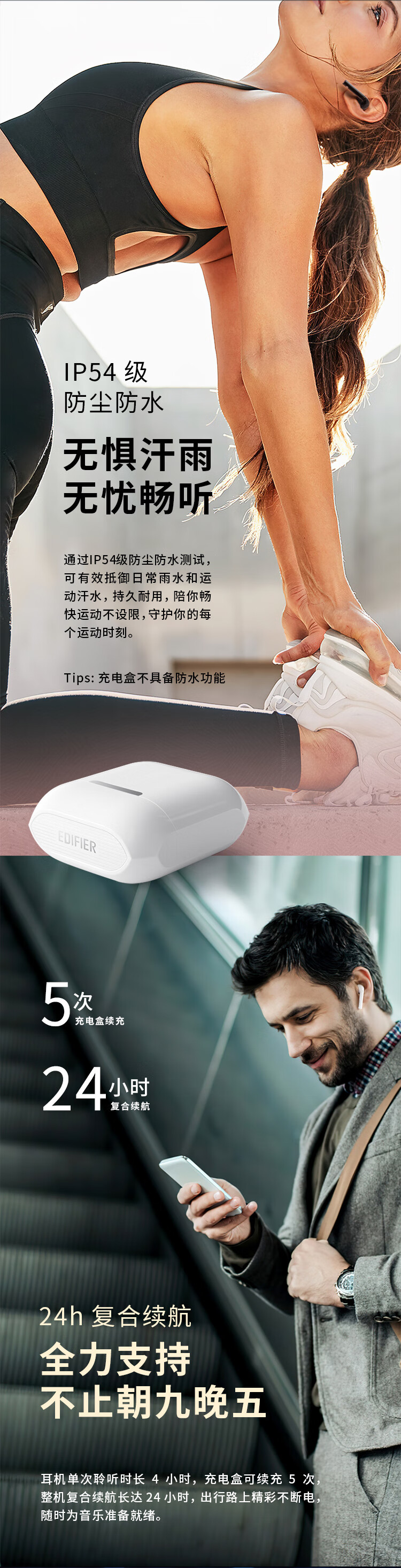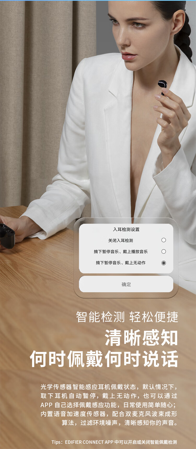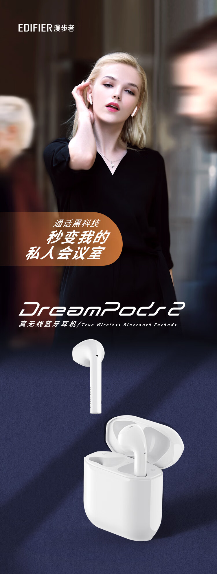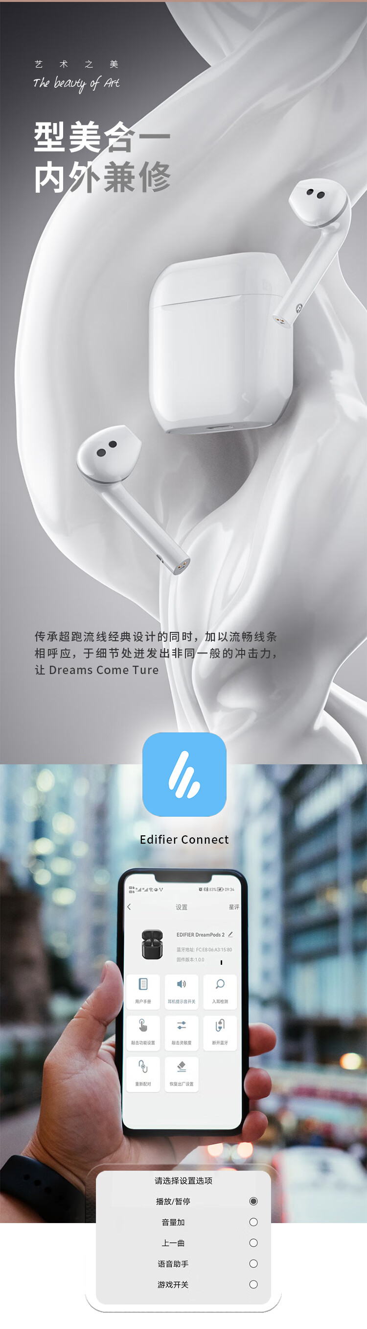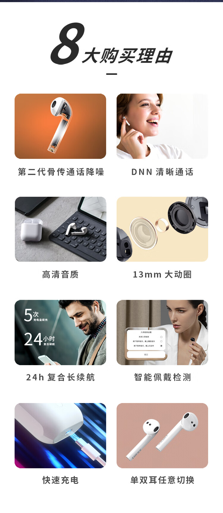 Edifier (EDIFIER) DreamPods 2 DreamPods True Wireless AI Bone Conduction Call Noise Canceling Bluetooth Headset Universal Apple Android Phone Pearl White