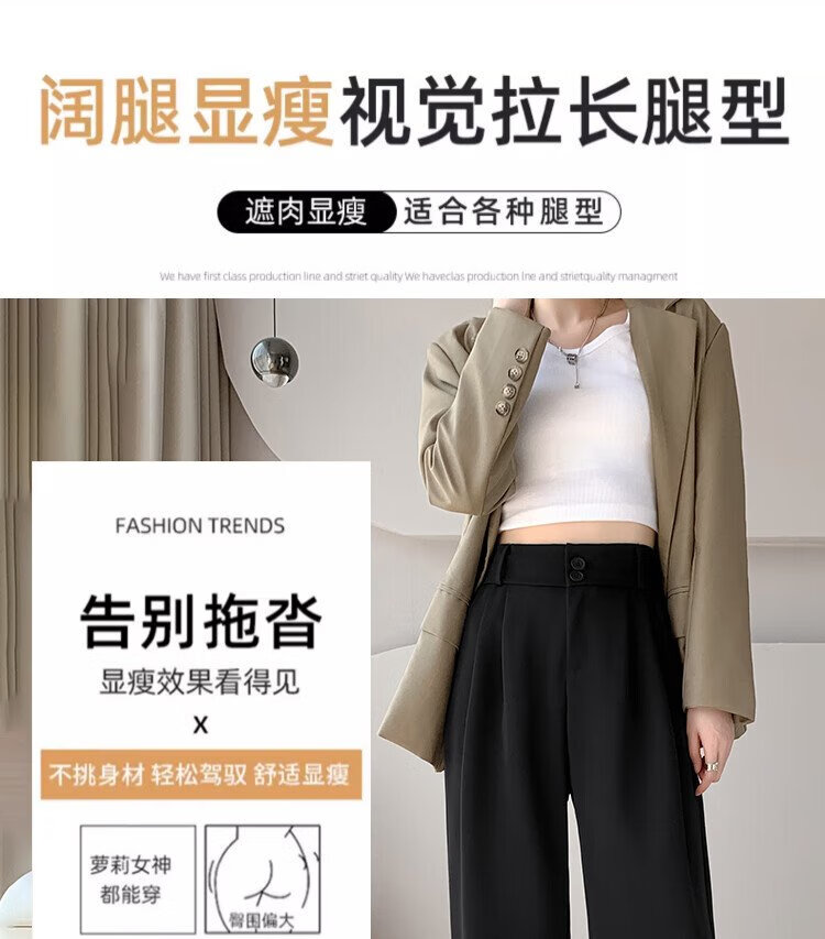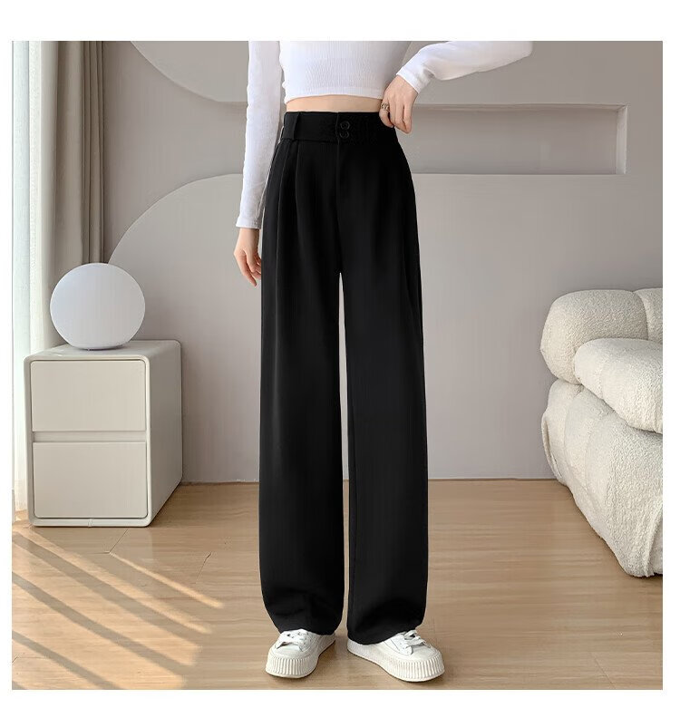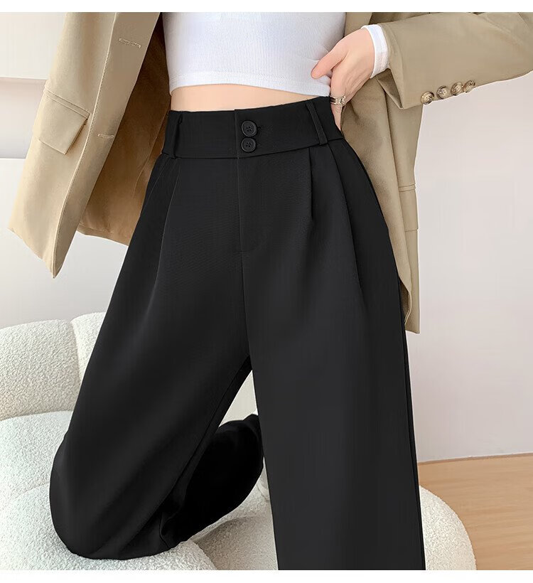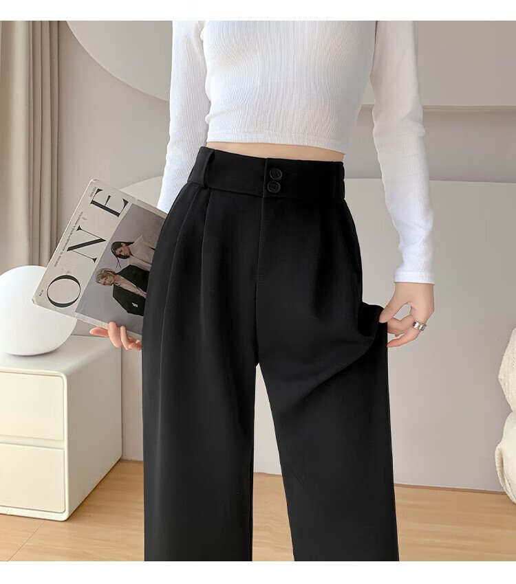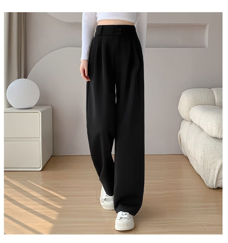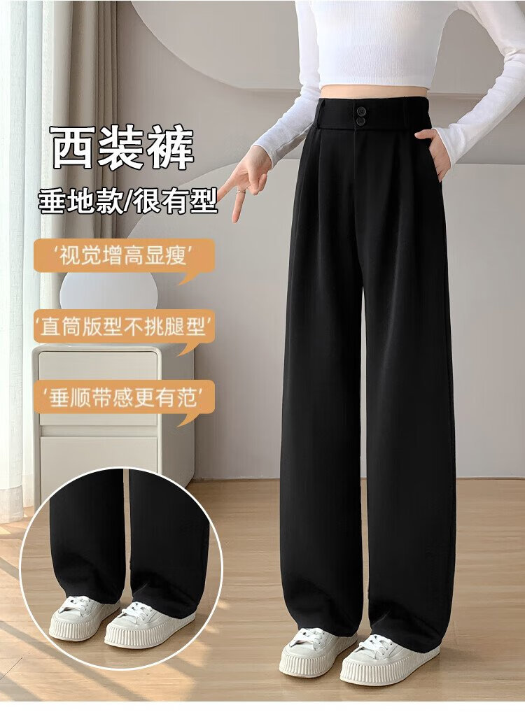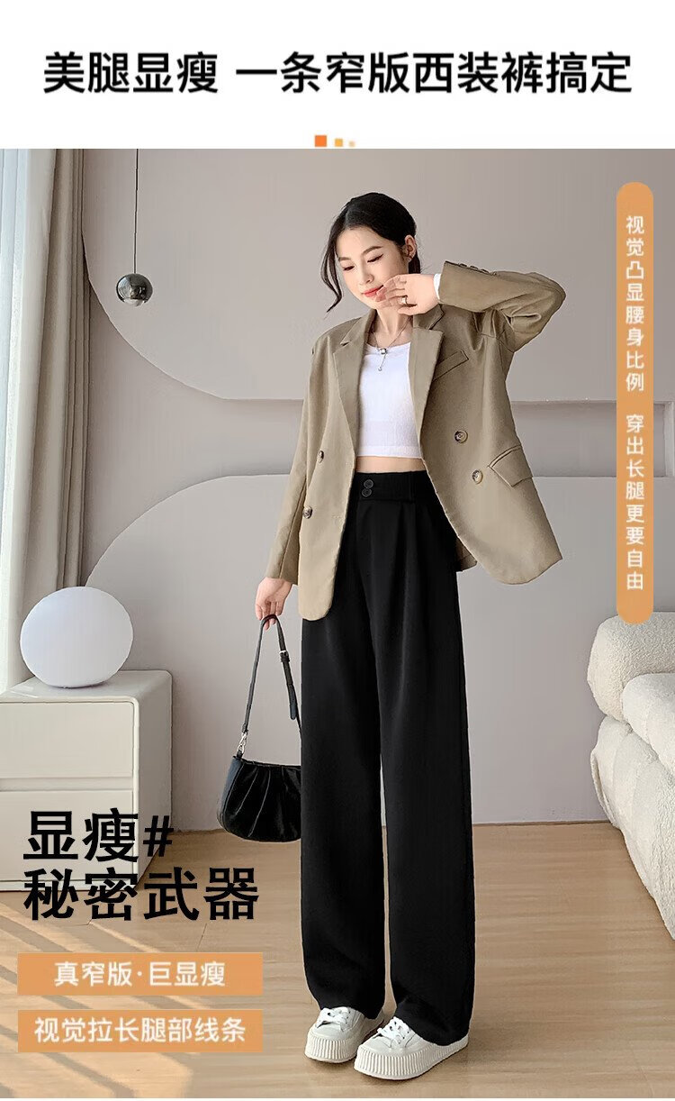 Yi Shangmei black suit pants women's spring, autumn and winter new commuter professional straight-leg small loose casual wide-leg pants L