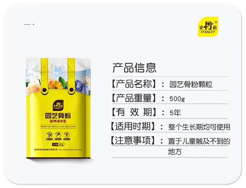 Stanley (STANLEY) horticultural bone meal flower fertilizer to promote flowering, high phosphorus and high potassium, skim bone meal fertilizer for flowering vegetables and vegetables 500g