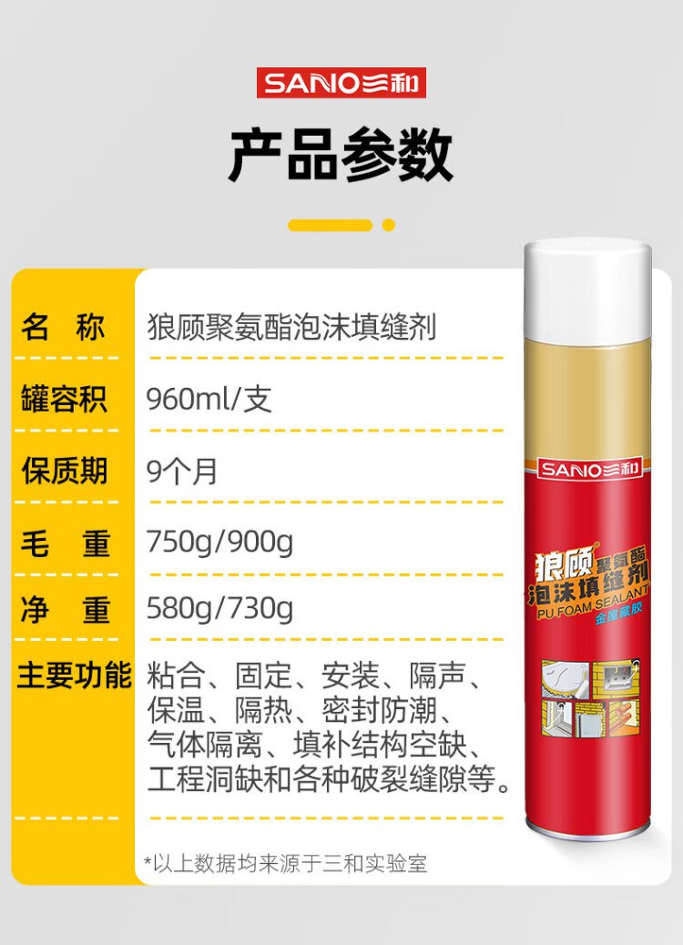 Sanhe foam glue Langgu polyurethane foam caulking agent foaming agent waterproof foam glue filling expansion agent 2 bottles of glue gun