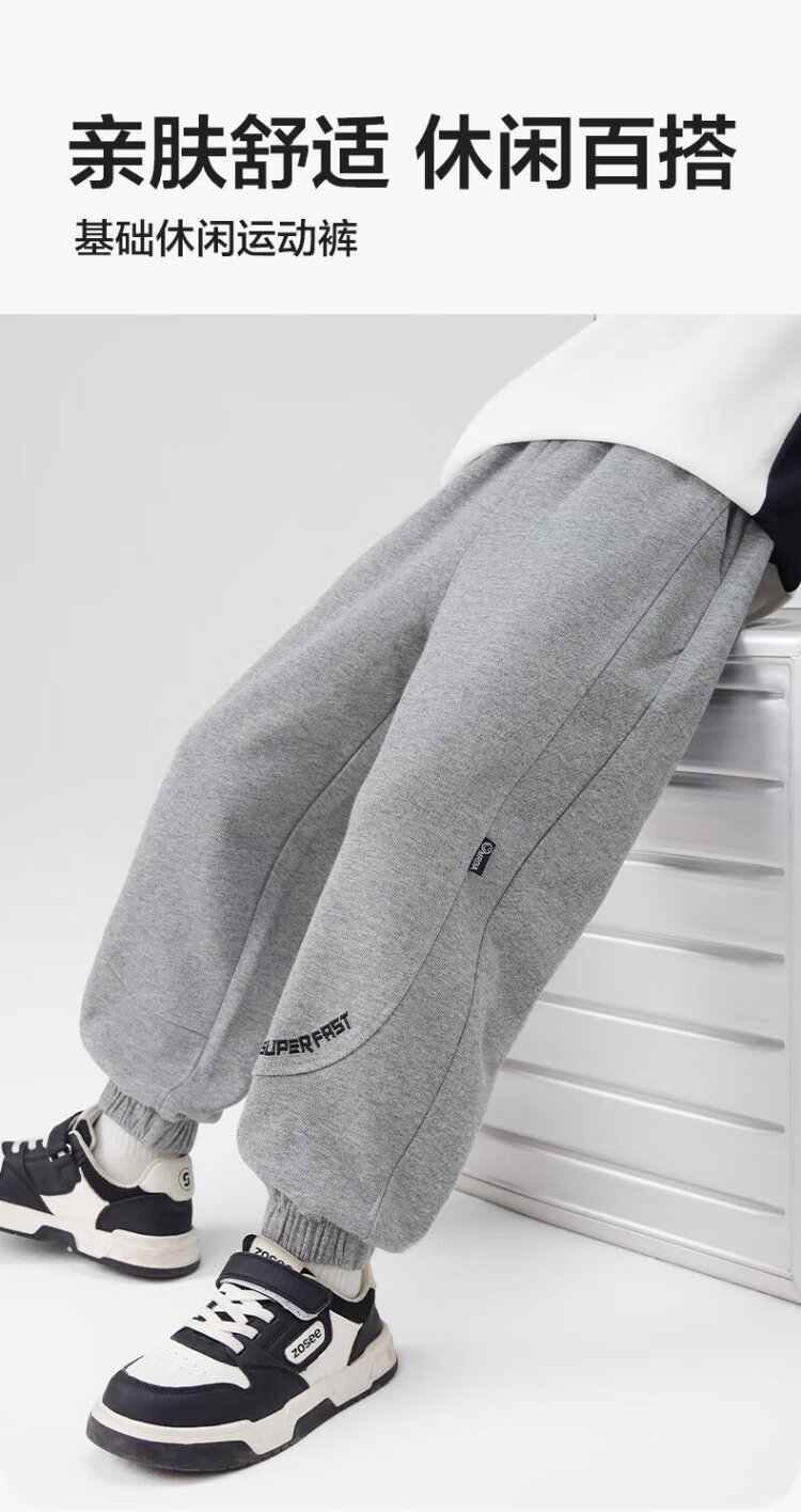 左西男童裤子儿童卫裤秋冬2025新款男孩韩版休闲长裤运动裤 灰色 150