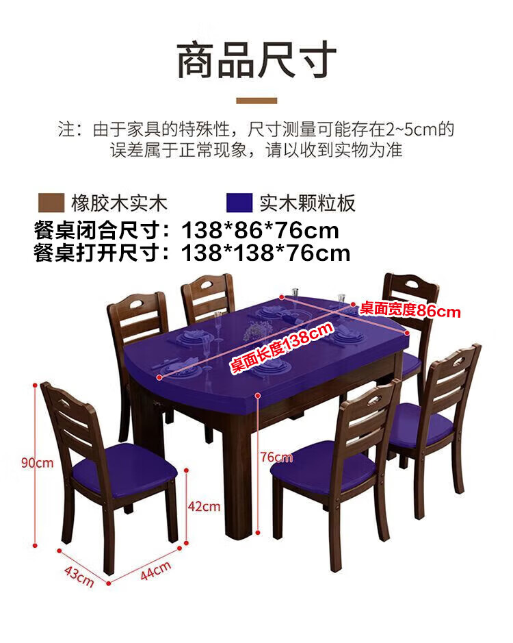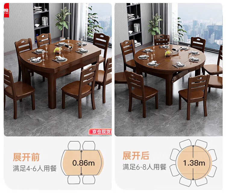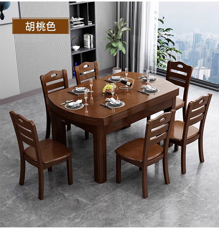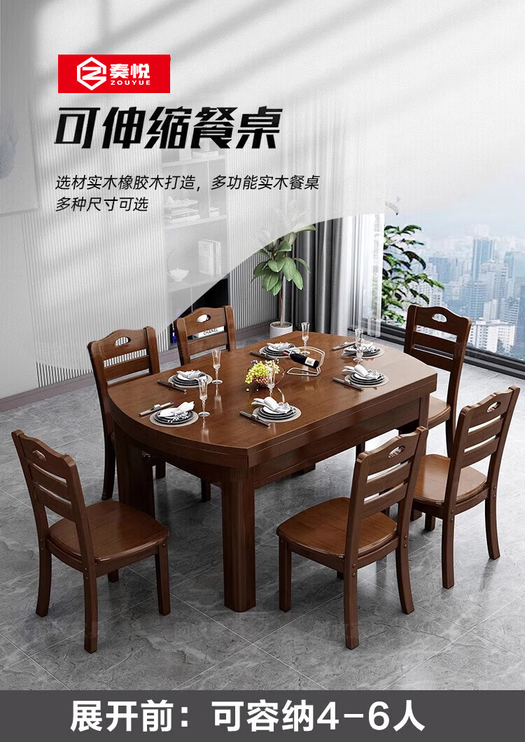 Zuoyue solid wood retractable household dining table and chair combination folding table dining table small apartment one table six chairs ZY-2411