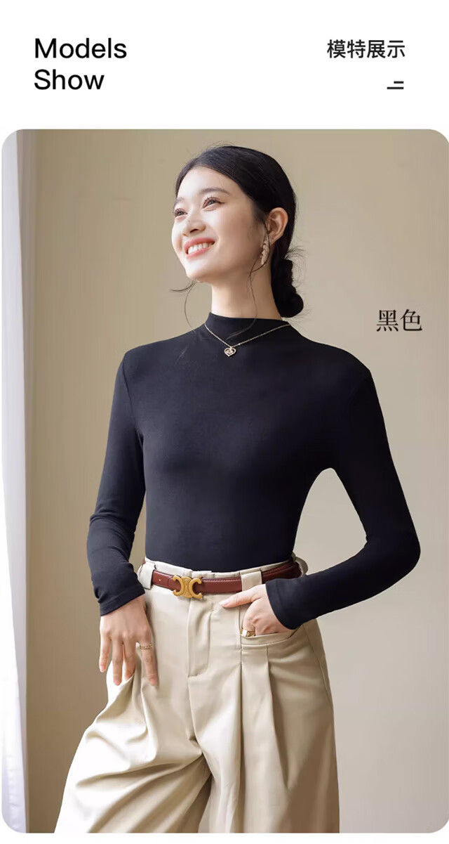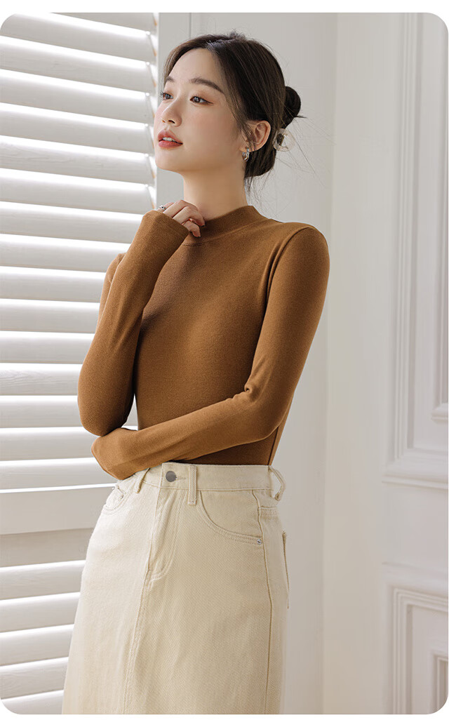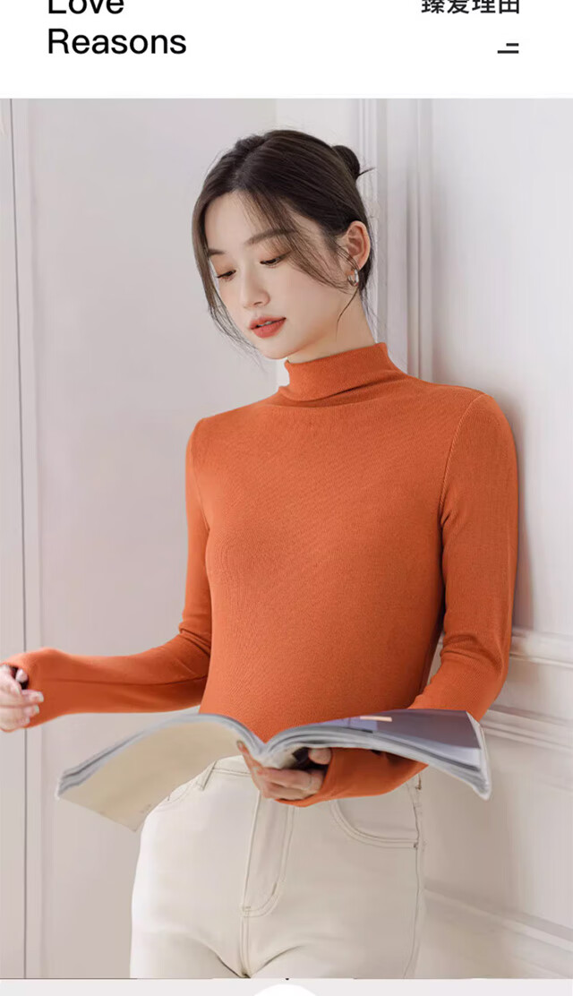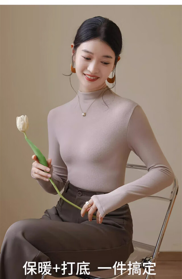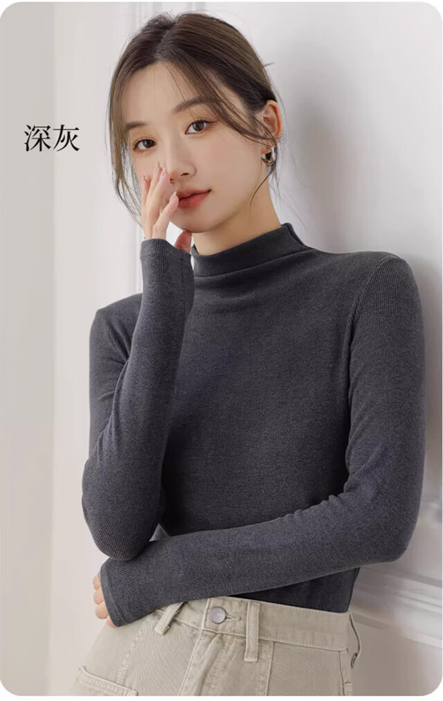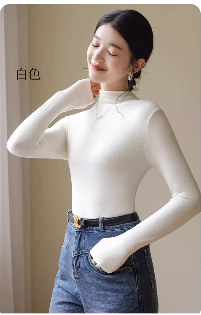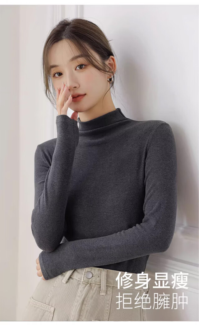 Langsha women's basic base layer spring and autumn half turtleneck solid color long-sleeved autumn clothing with slim fit high elastic base layer underneath