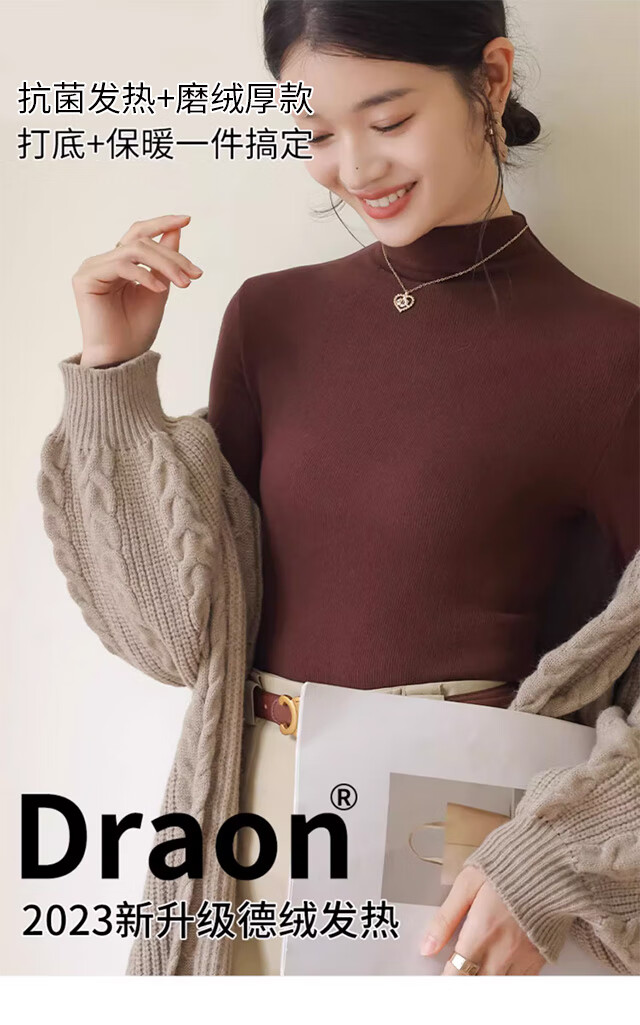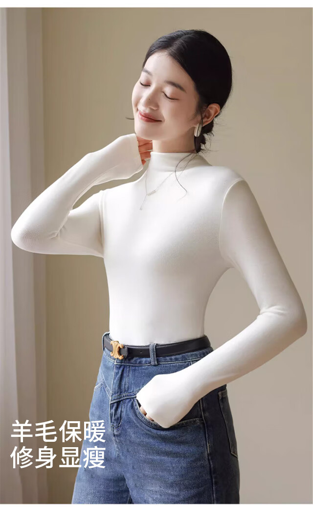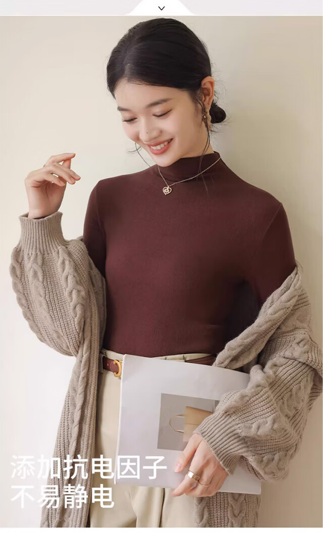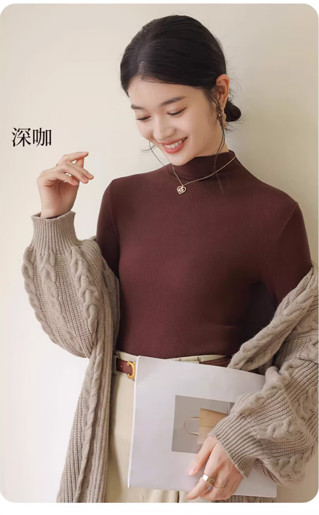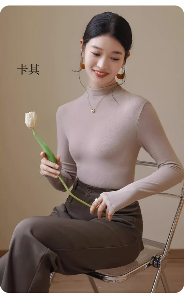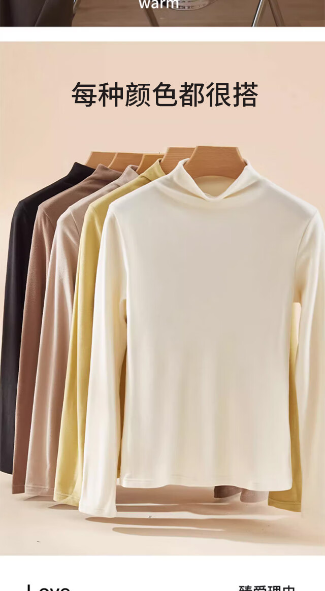 Langsha women's basic base layer spring and autumn half turtleneck solid color long-sleeved autumn clothing with slim fit high elastic base layer underneath