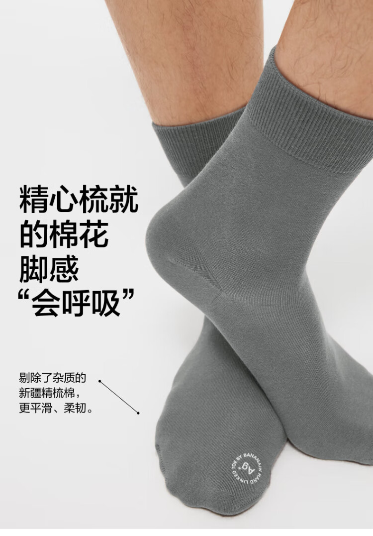 Banana Silver Skin 301S Socks Men's Xinjiang Combed Cotton 7A Antibacterial and Deodorant Business Casual Breathable Autumn and Winter Mid-Tube 5 Pairs