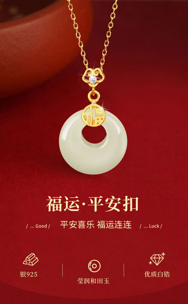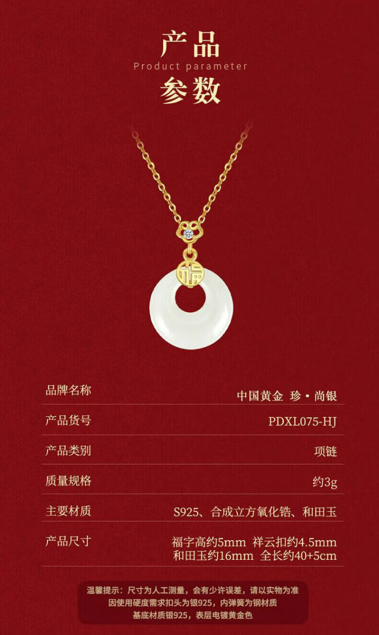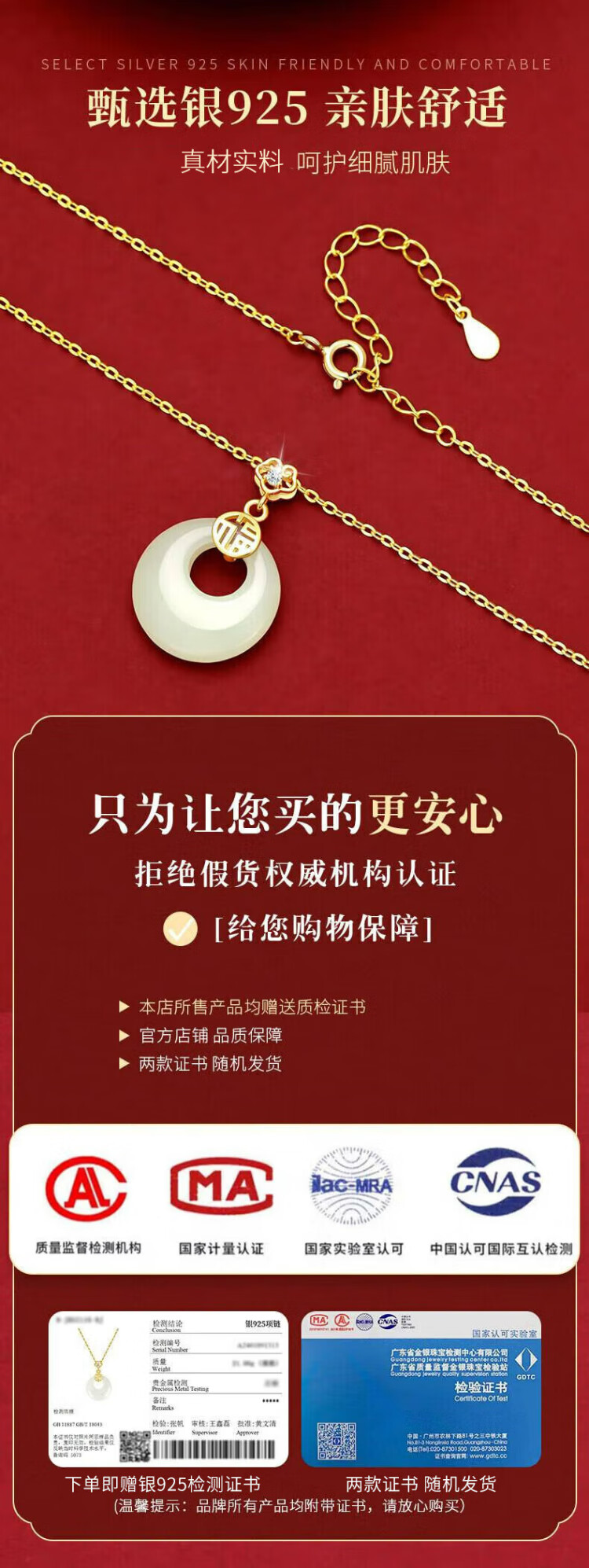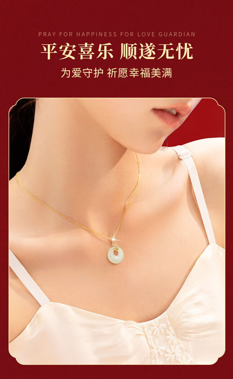 Zhen Shangyin Chinese gold zodiac horse year Hetian jade pendant peace buckle necklace girl Japanese life year gift girlfriend mother