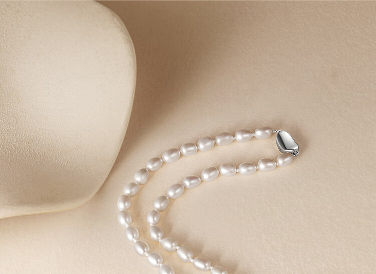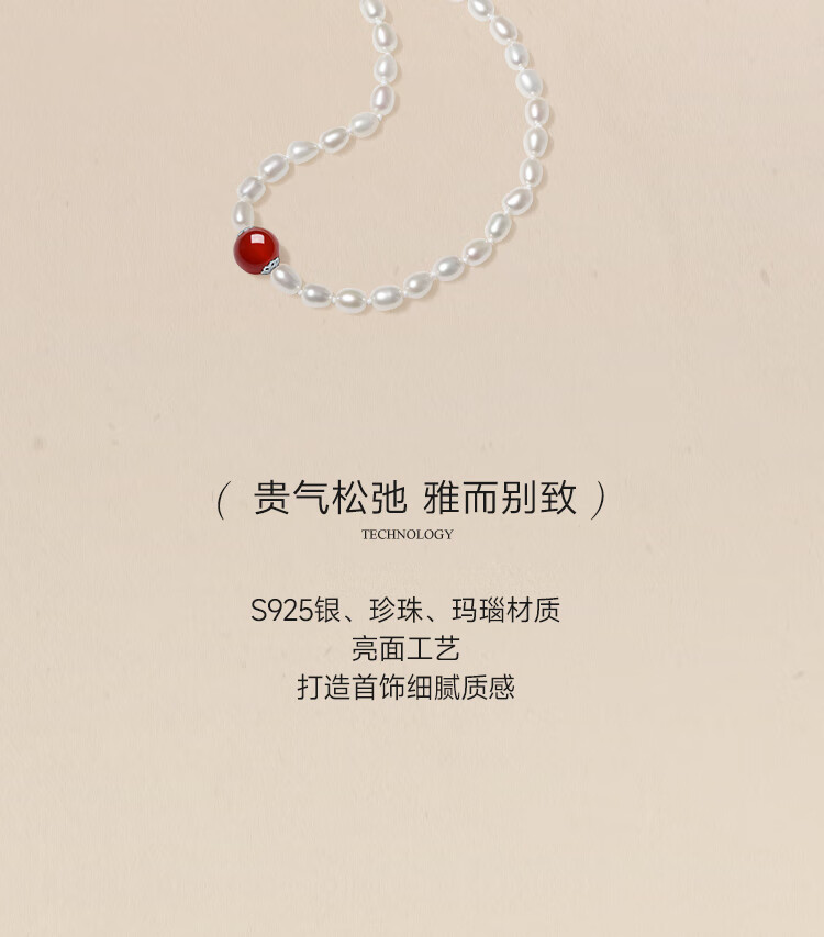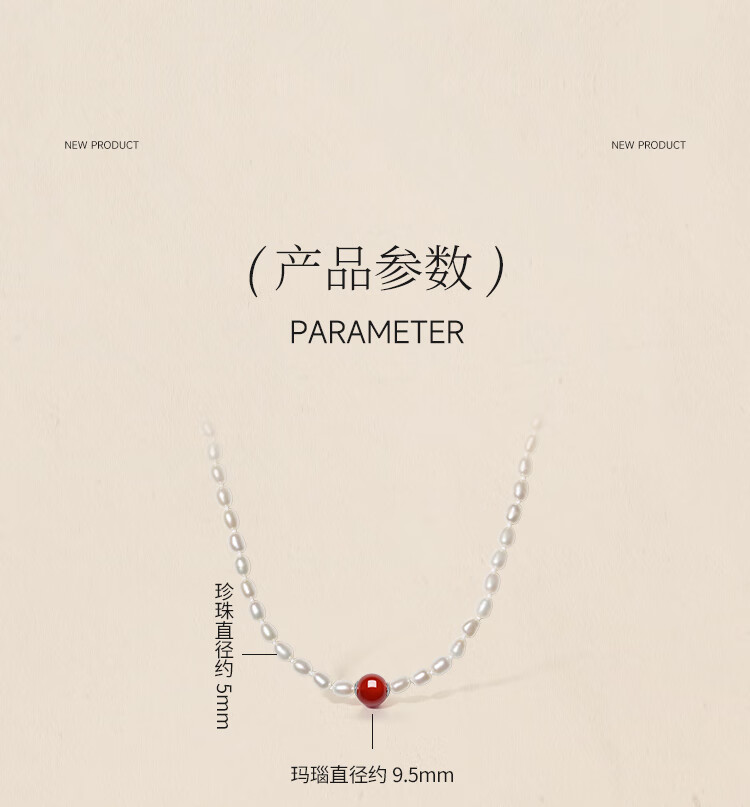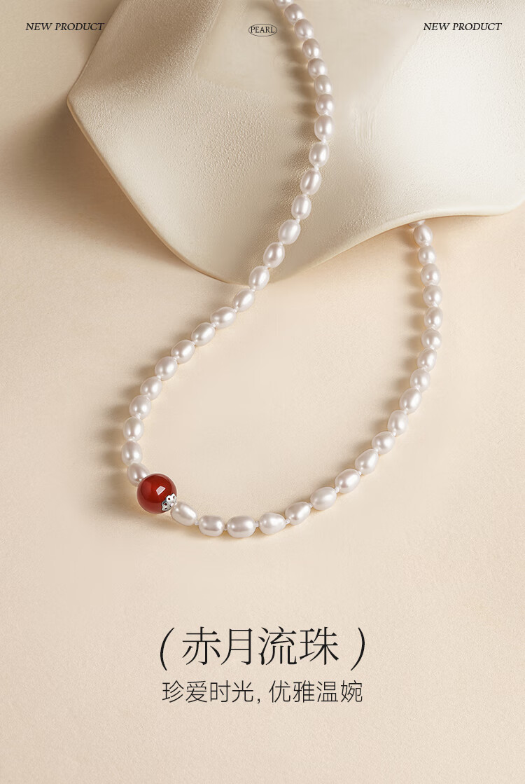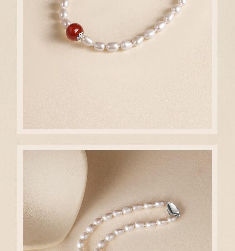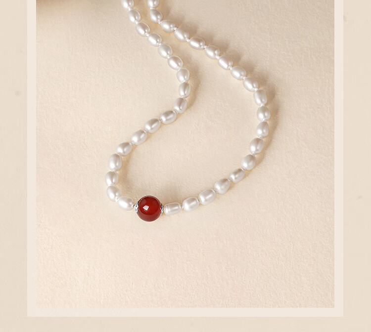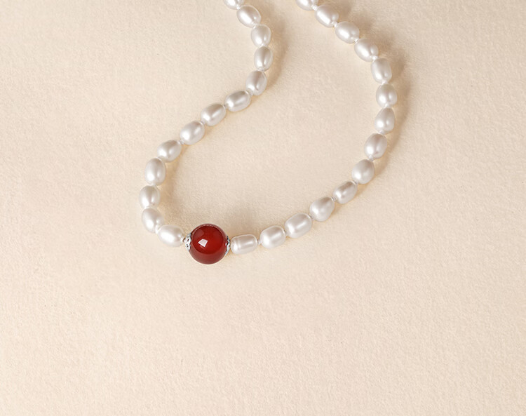 Saturday blessing silver buckle pearl necklace mother birthday gift red agate X0511903 long rice beads strong light about 5mm 45cm