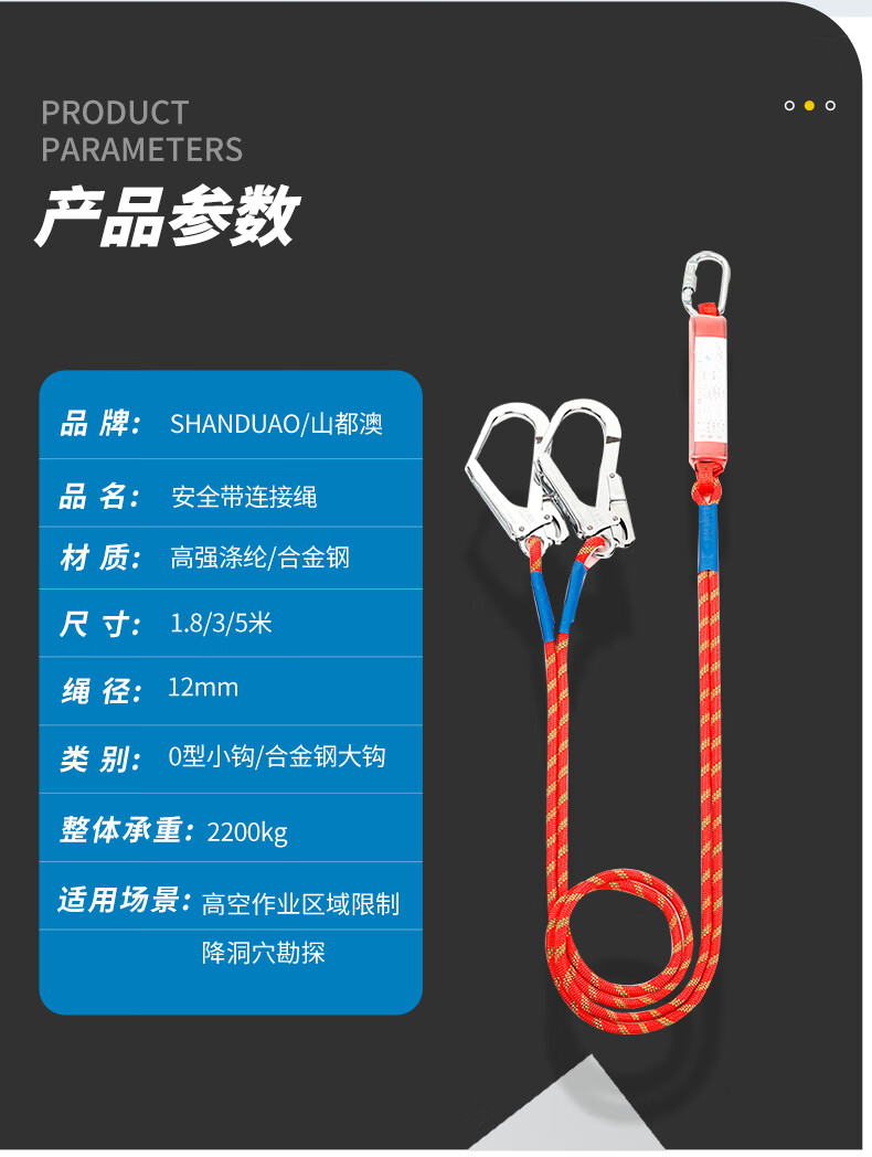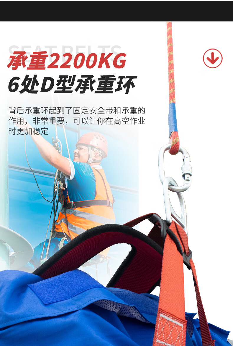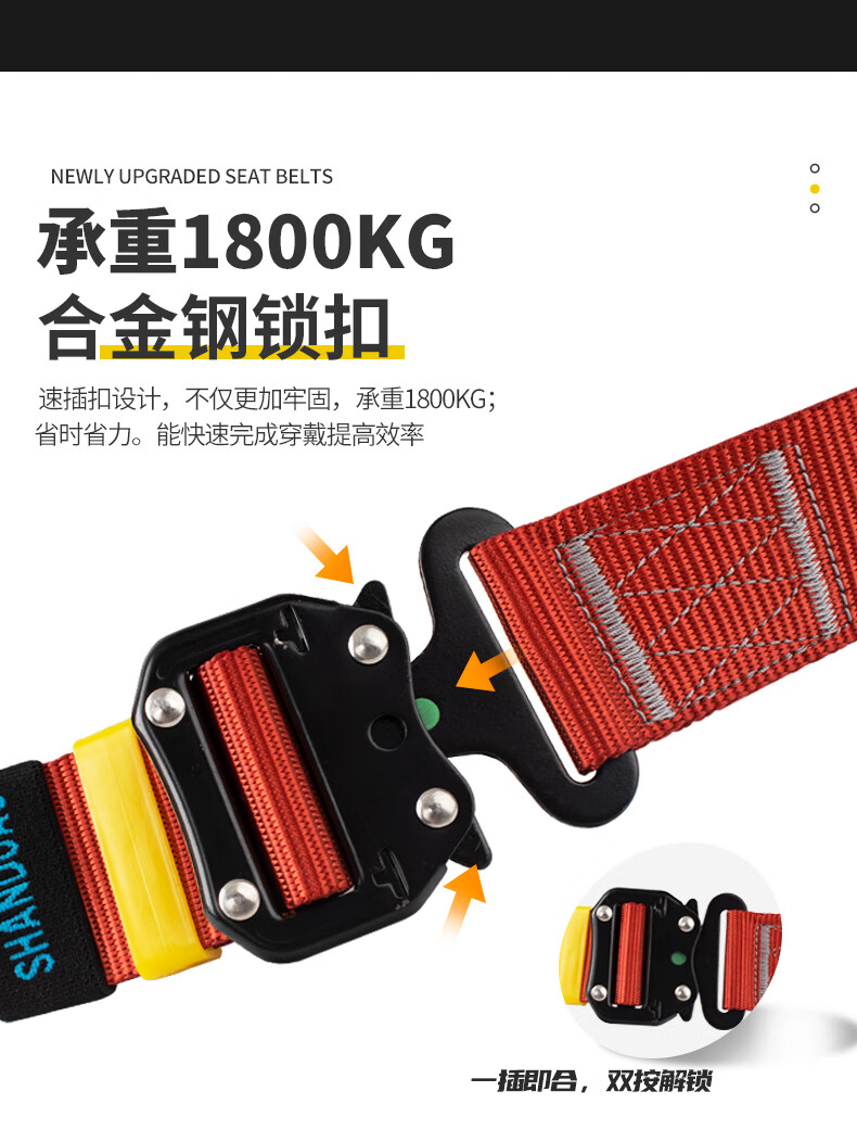 Sanduao quick-plug five-point safety belt, safety rope set for high-altitude operations, full-body fall protection, new national standard AD9027, double large hooks 5 meters