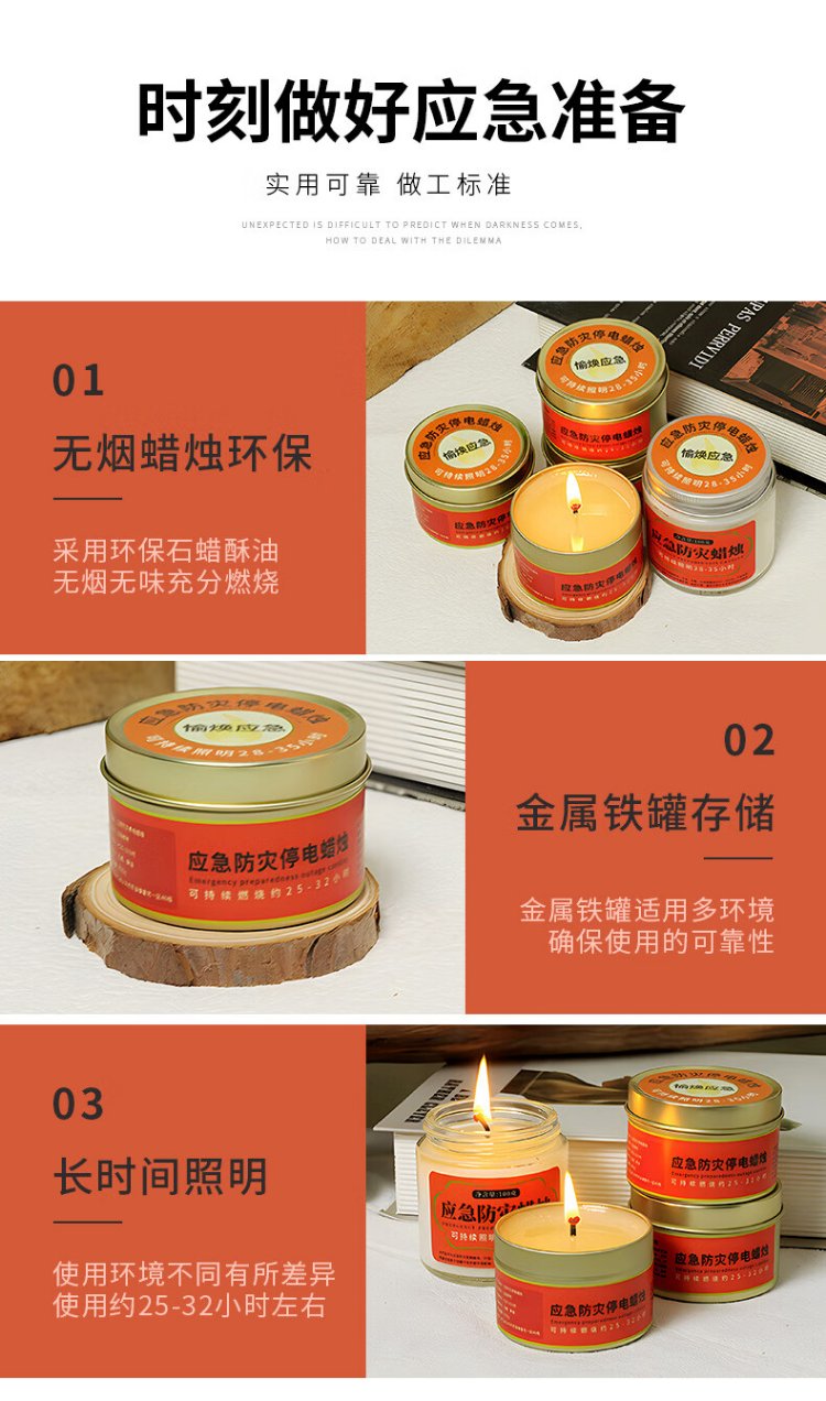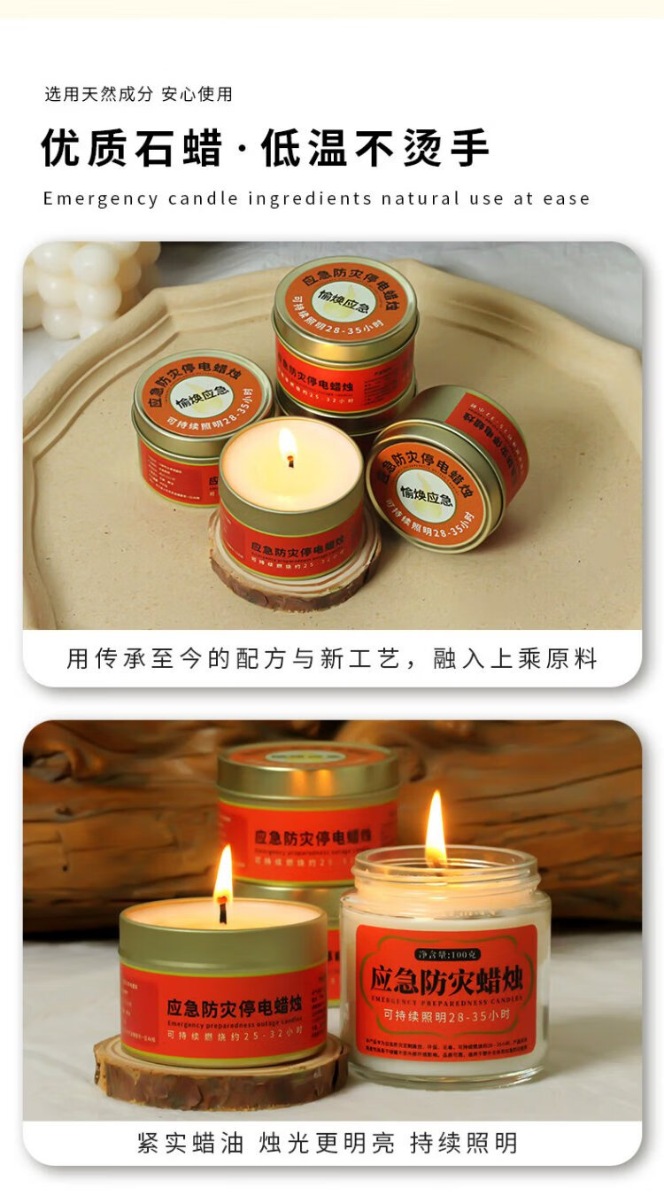 Minggu Emergency Disaster Prevention Candle, Power Outage Earthquake Lighting Candle, Waterproof, Windproof, Smokeless Candle, Warming Candle, Easy Storage Metal Iron Box 80g, 2 Pack