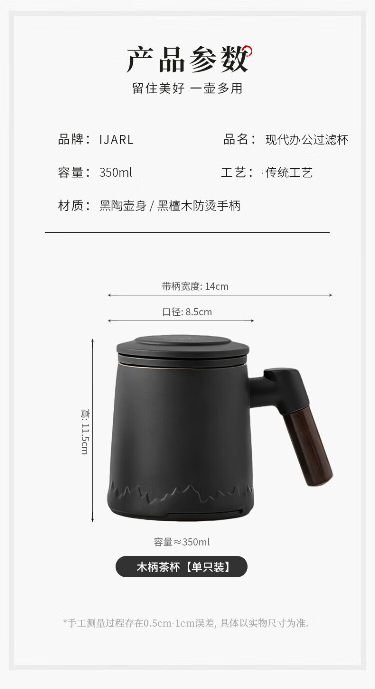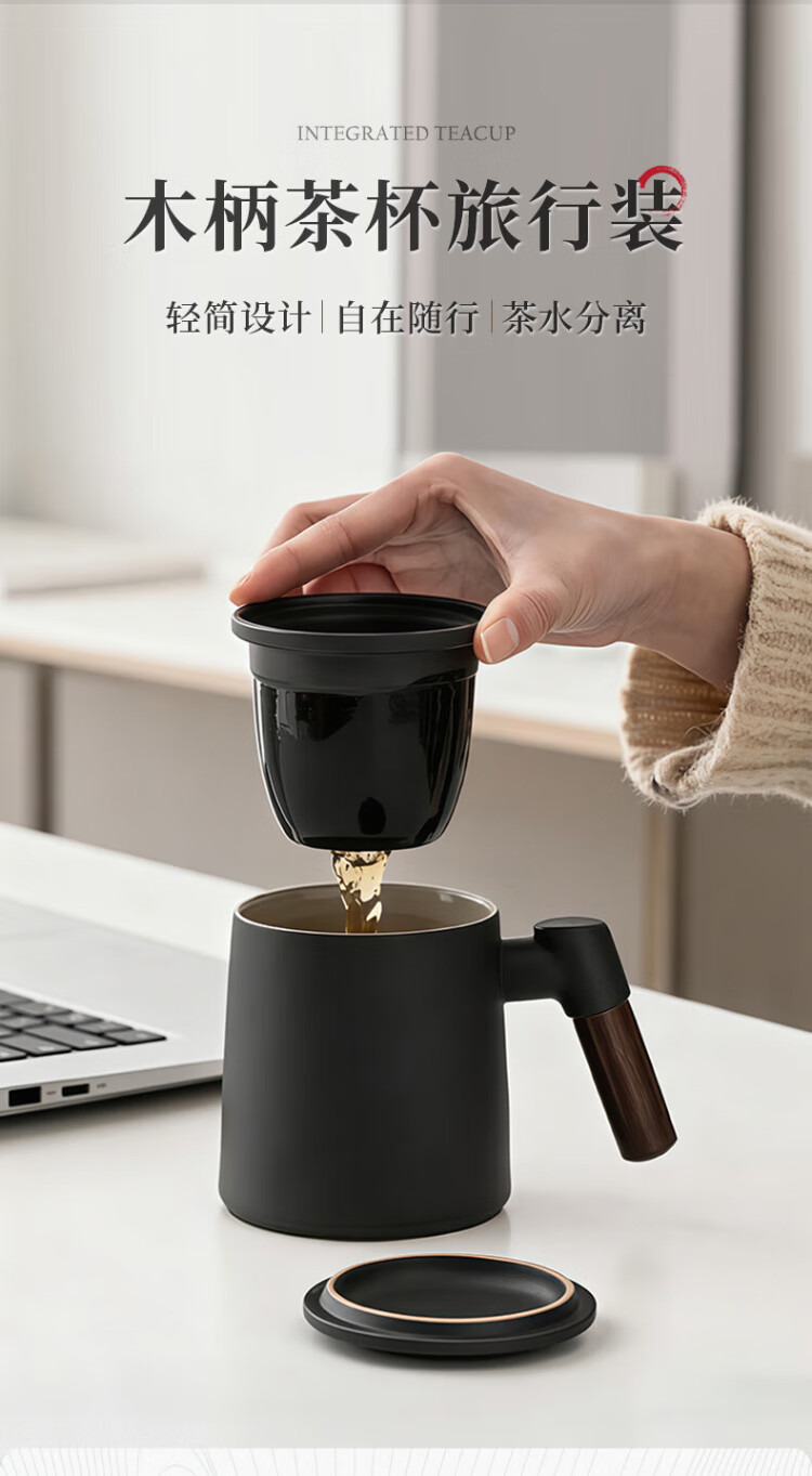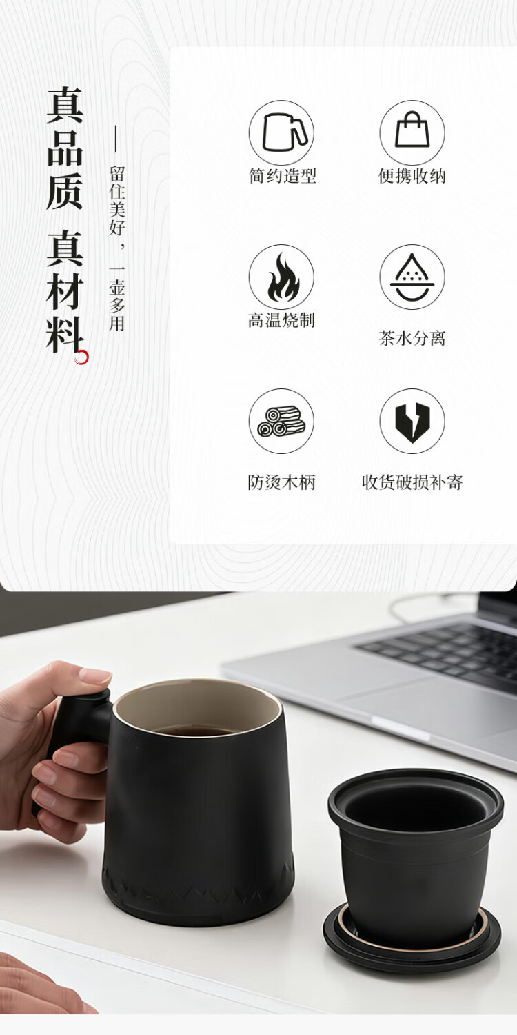 Yi Jia (IJARL) tea cup, tea water separation cup, office tea cup, fair cup, office cup with filtered tea leakage tea set 400ml