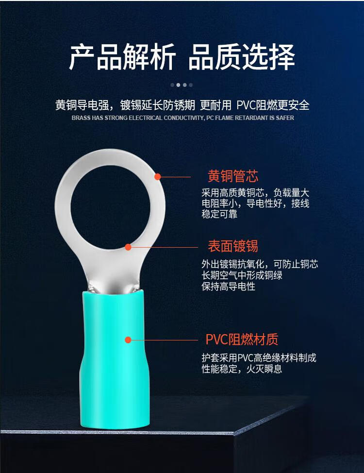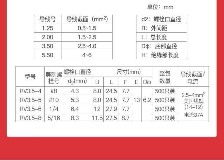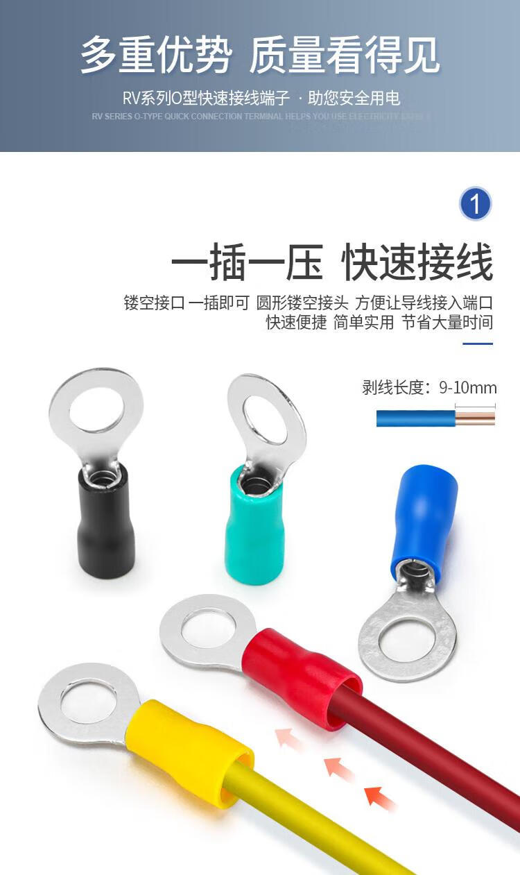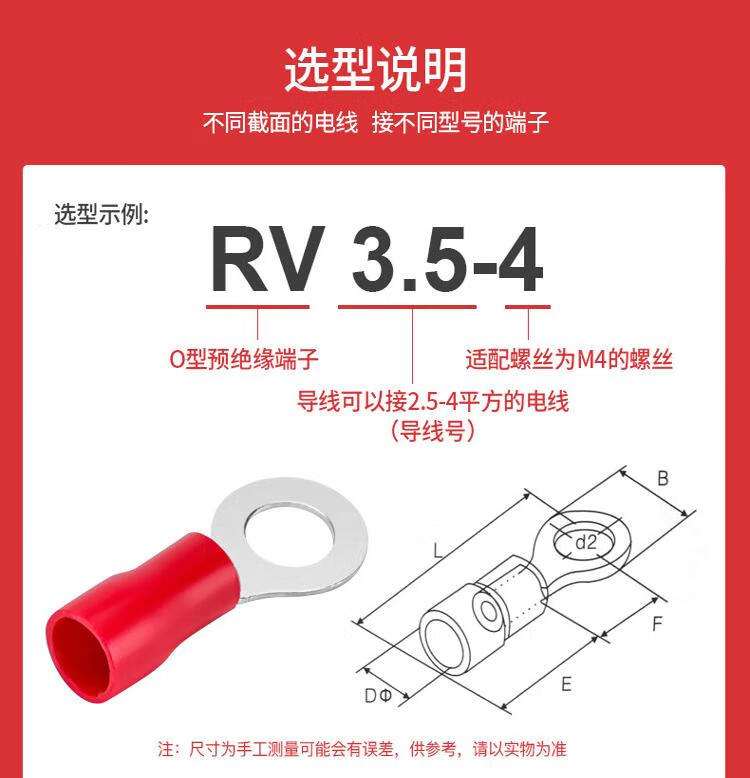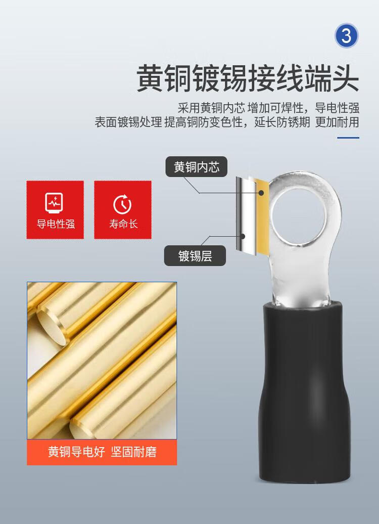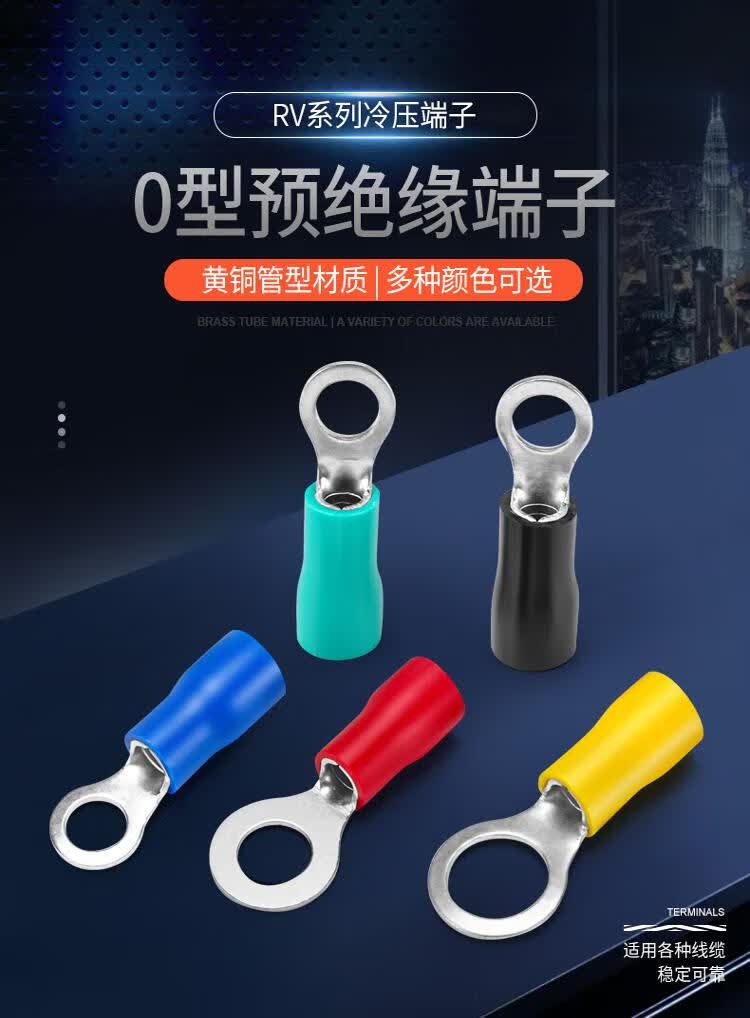 Andatong insulated terminal O-type pre-insulated terminal cold-pressed terminal block European-style pre-insulated copper nose terminal RV3.5-6 yellow