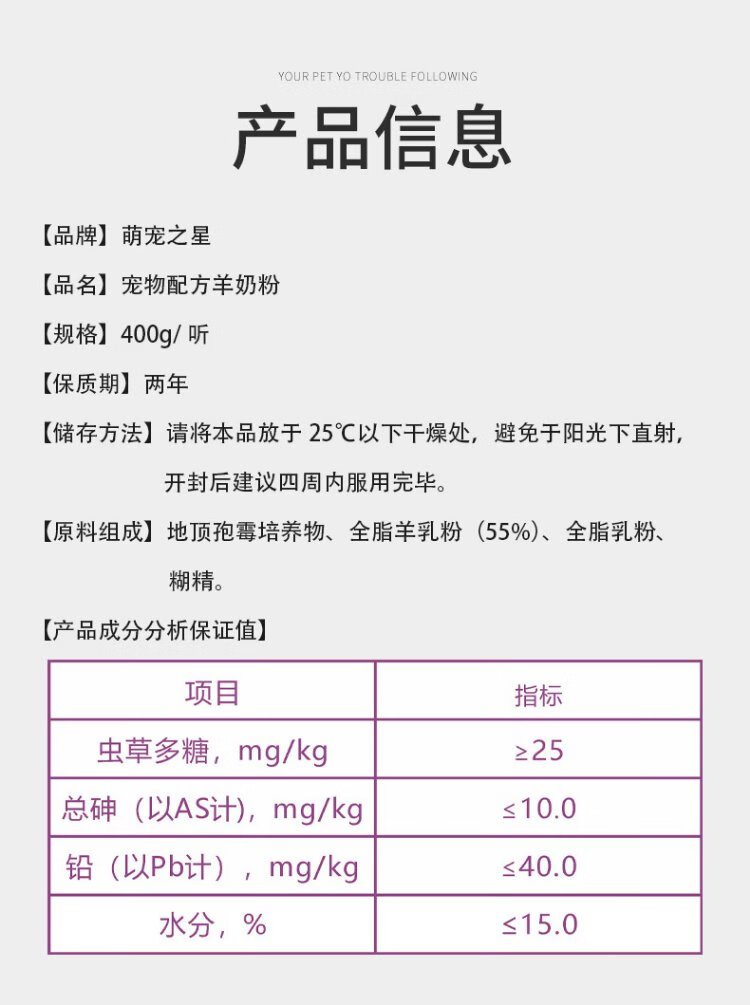 Cute Star Pet Goat Milk Powder Dog Goat Milk Powder Cat Goat Milk Powder Cordyceps Polysaccharide Type Enhanced Pet Goat Milk Powder 400g