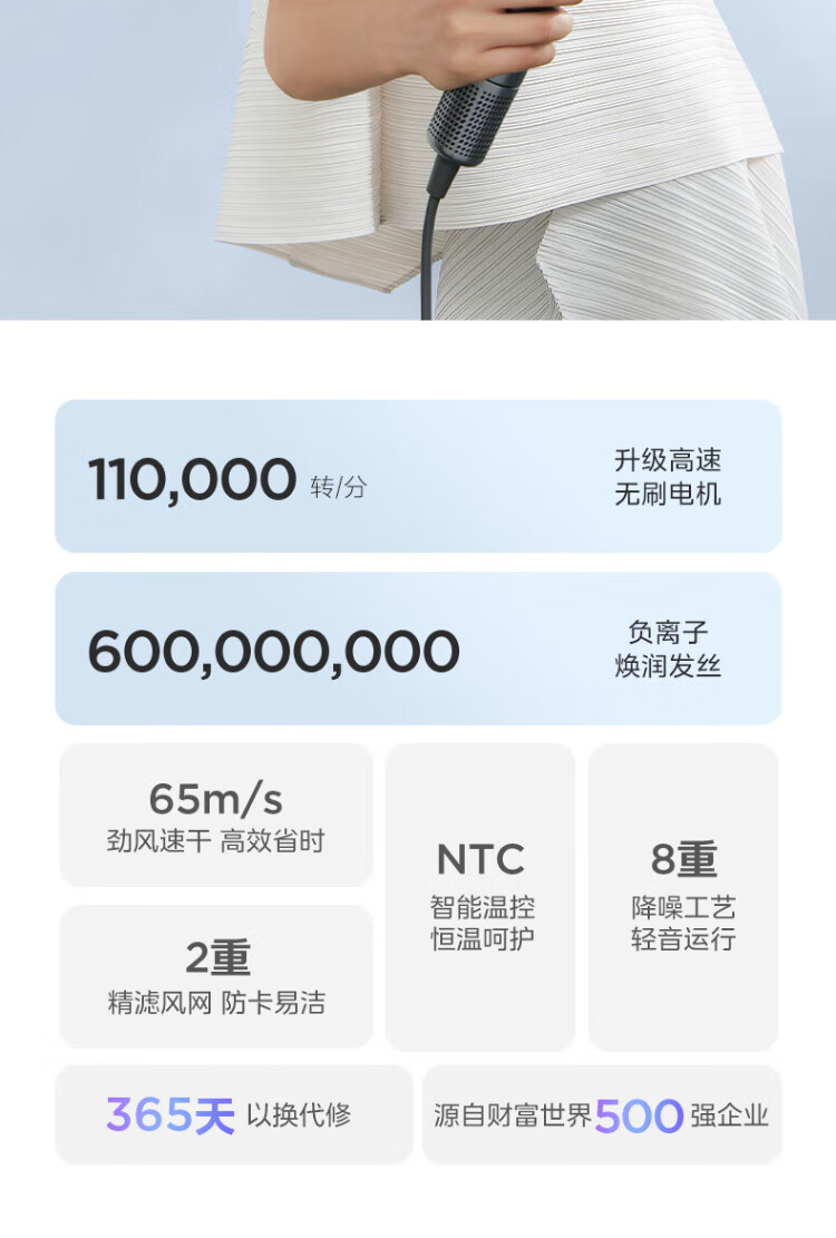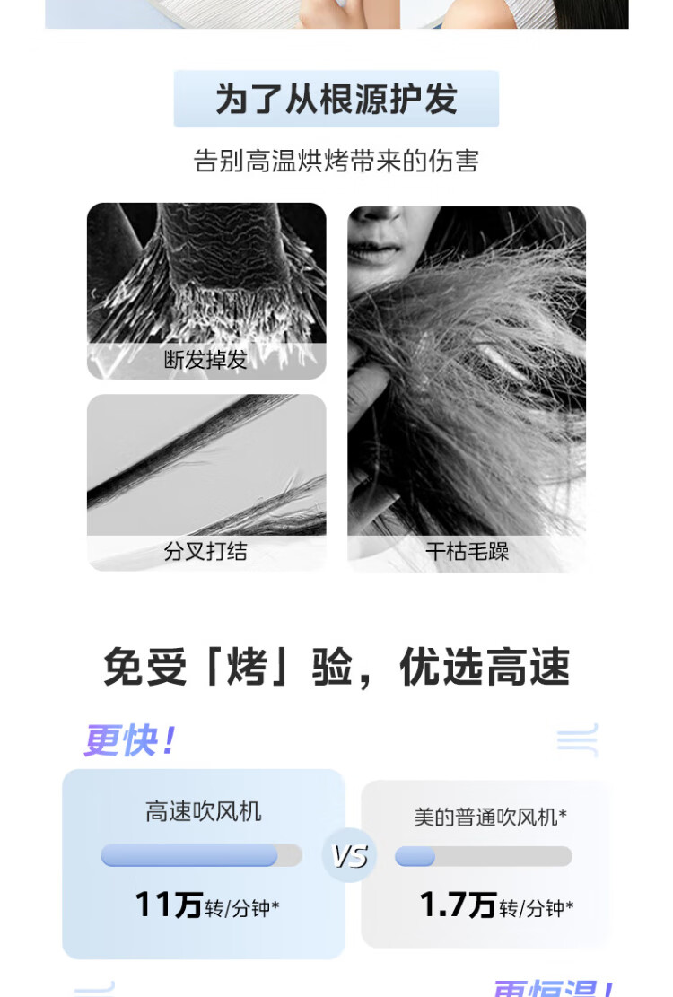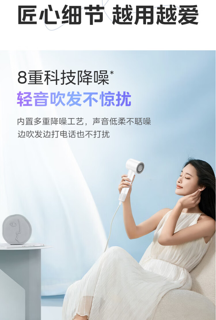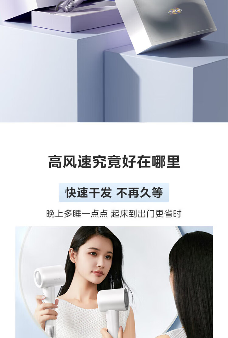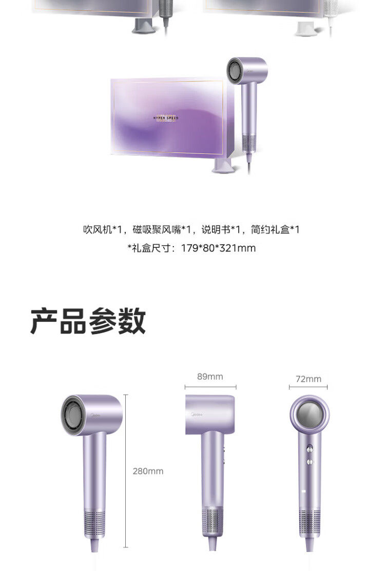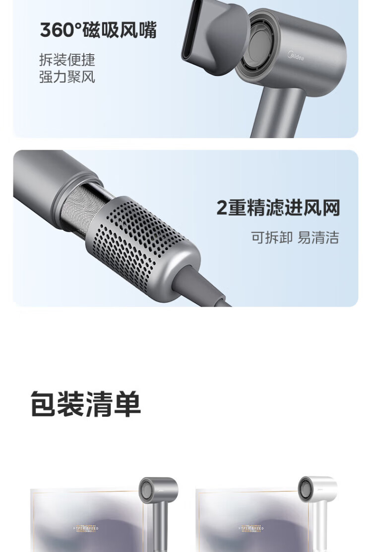 Midea high-speed hair dryer, high-concentration negative ion hair dryer, household hair dryer FG2-white gift box, national subsidy for home appliances, holiday/birthday gift recommendations