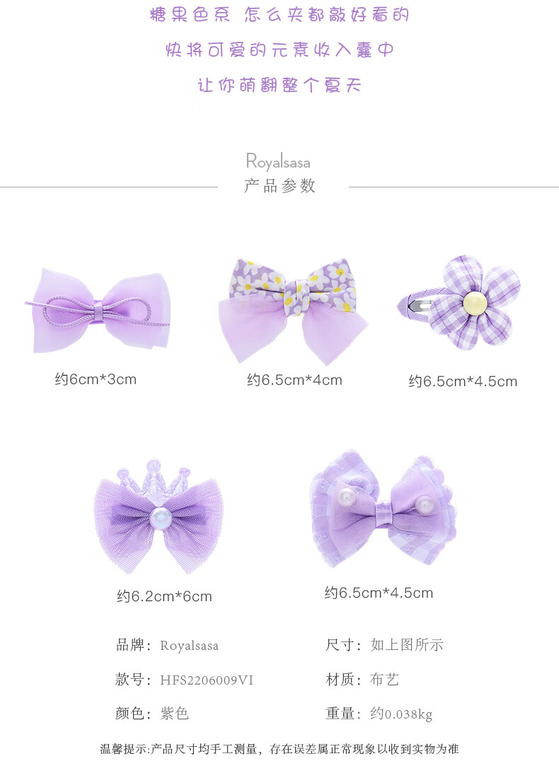 Royal sasa Royal Sasa Cute Hair Clip Women's Full Covered Cloth Does Not Hurt Hair Clip Clip Headwear Children's Hair Accessories