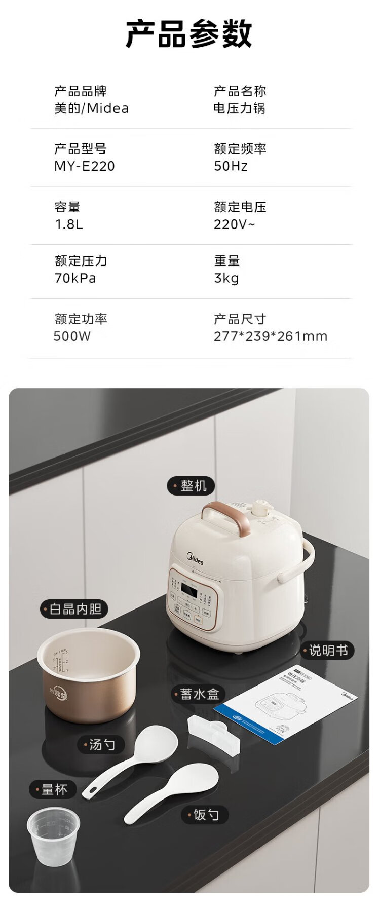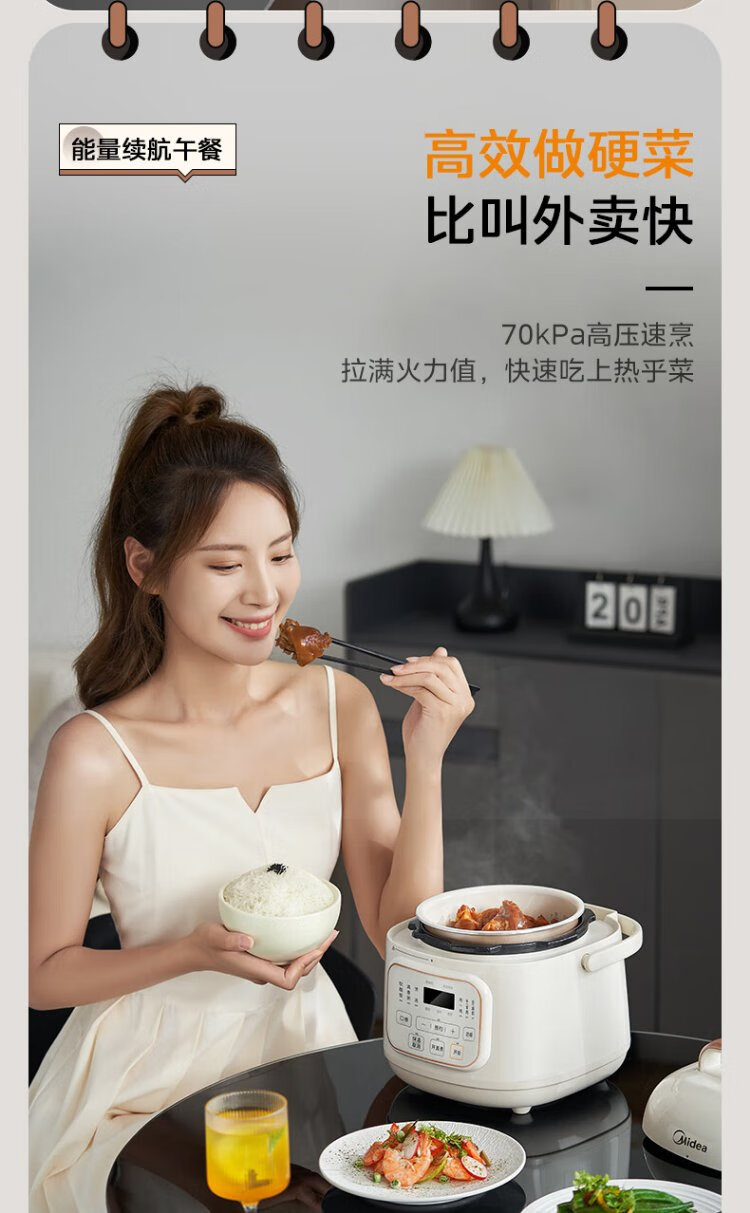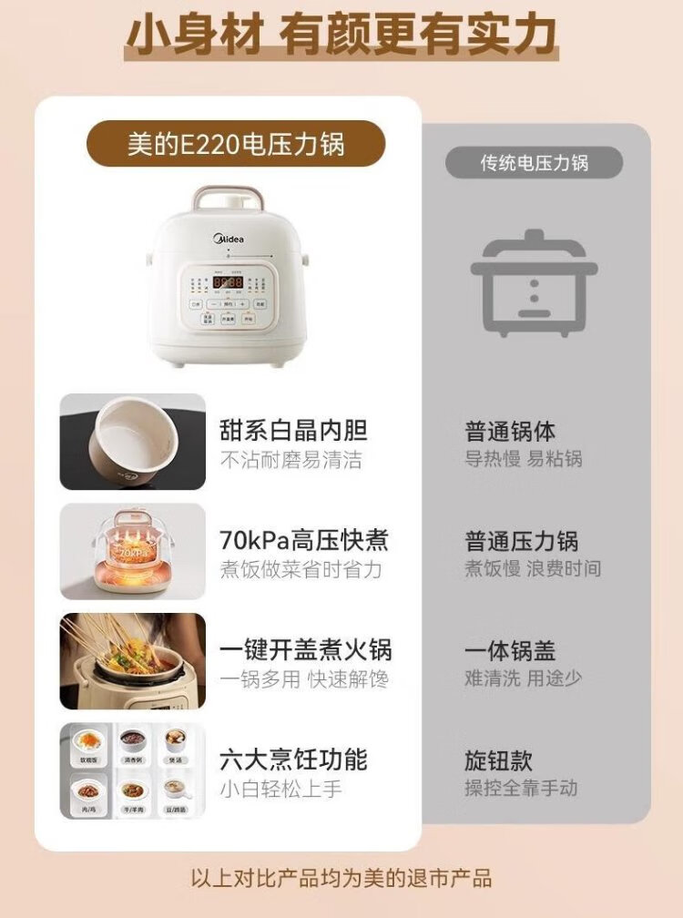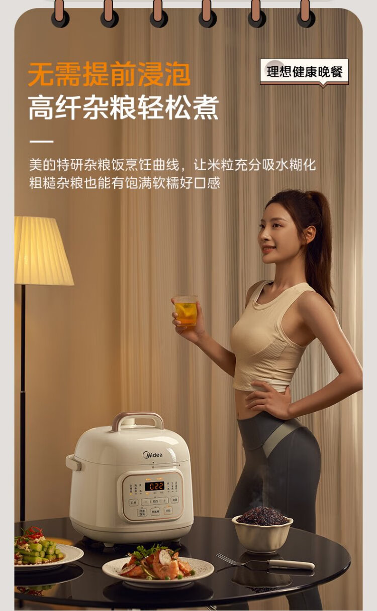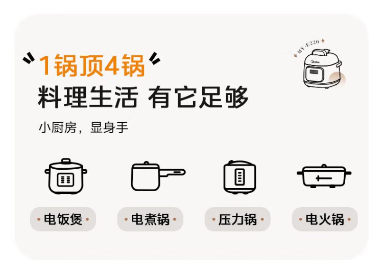 Midea government subsidy small white pot for one person mini electric pressure cooker 1.8L open lid to collect juice household smart reservation baby porridge MY-E220 rice cooker pressure cooker for 1-3 people