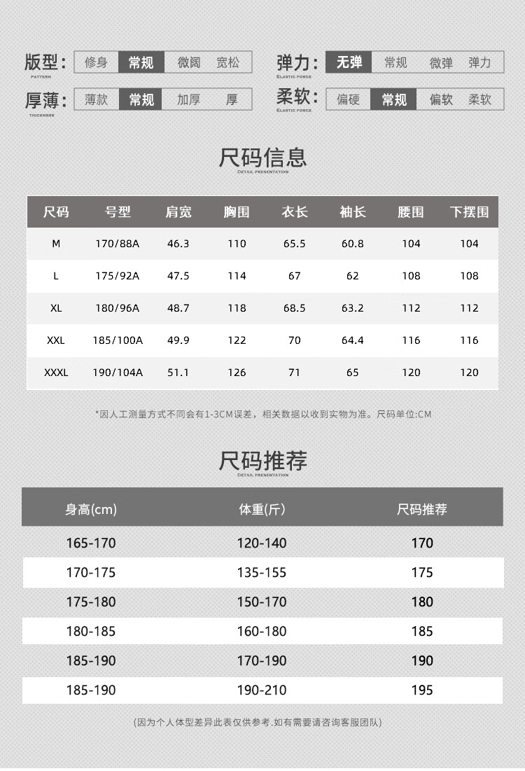 China (cm) 160-165/84-86 165-170 / 88-90 167-172 / 92-96 168-173 / 98-102 170-176 / 106-110