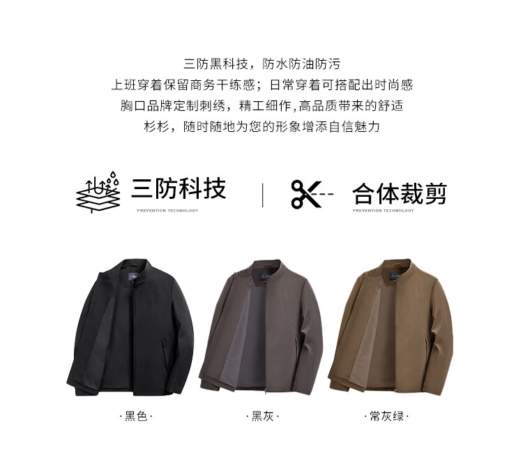 Shanshan three-proof technology jacket men's spring and autumn business casual waterproof diagonal pocket classic stand collar men's clothing