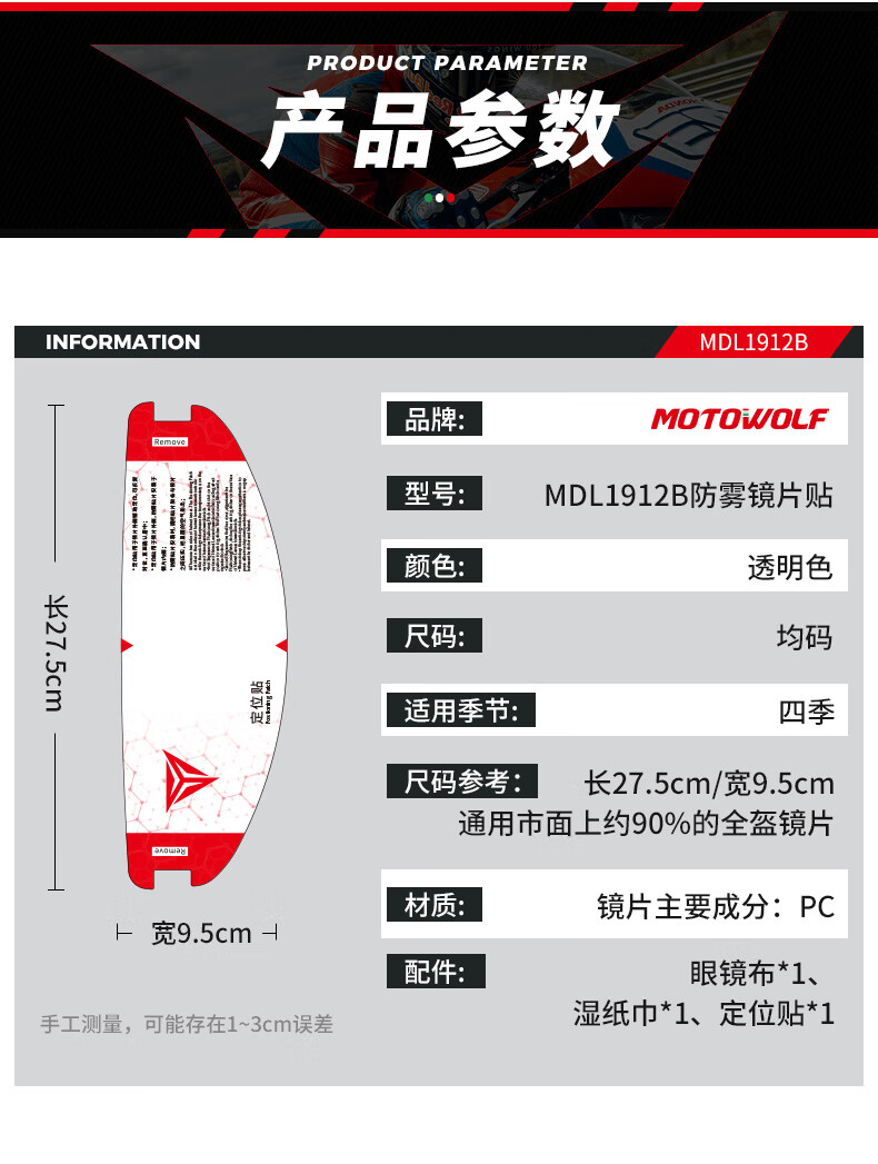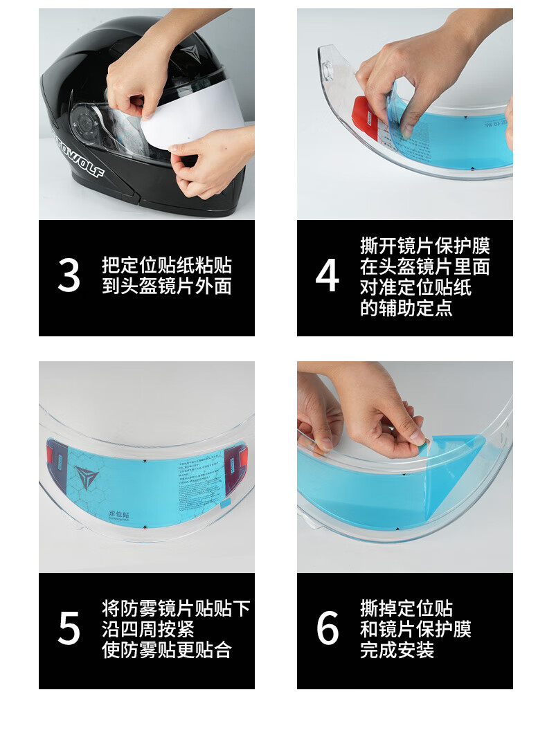 MOTOWOLF motorcycle helmet anti-fog sticker high-definition transparent lens sticker full-face helmet sticker universal helmet film
