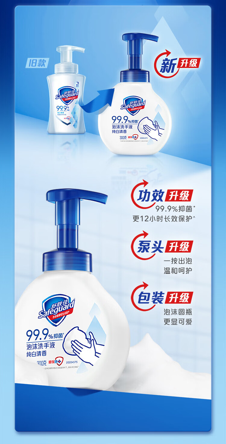 Safeguard Antibacterial Foam Hand Sanitizer White Tea Fragrance 300g Healthy Antibacterial 99.9% Fine Foam