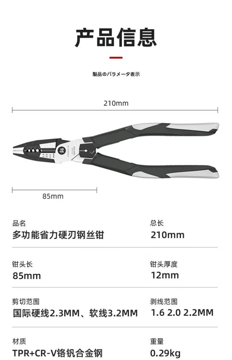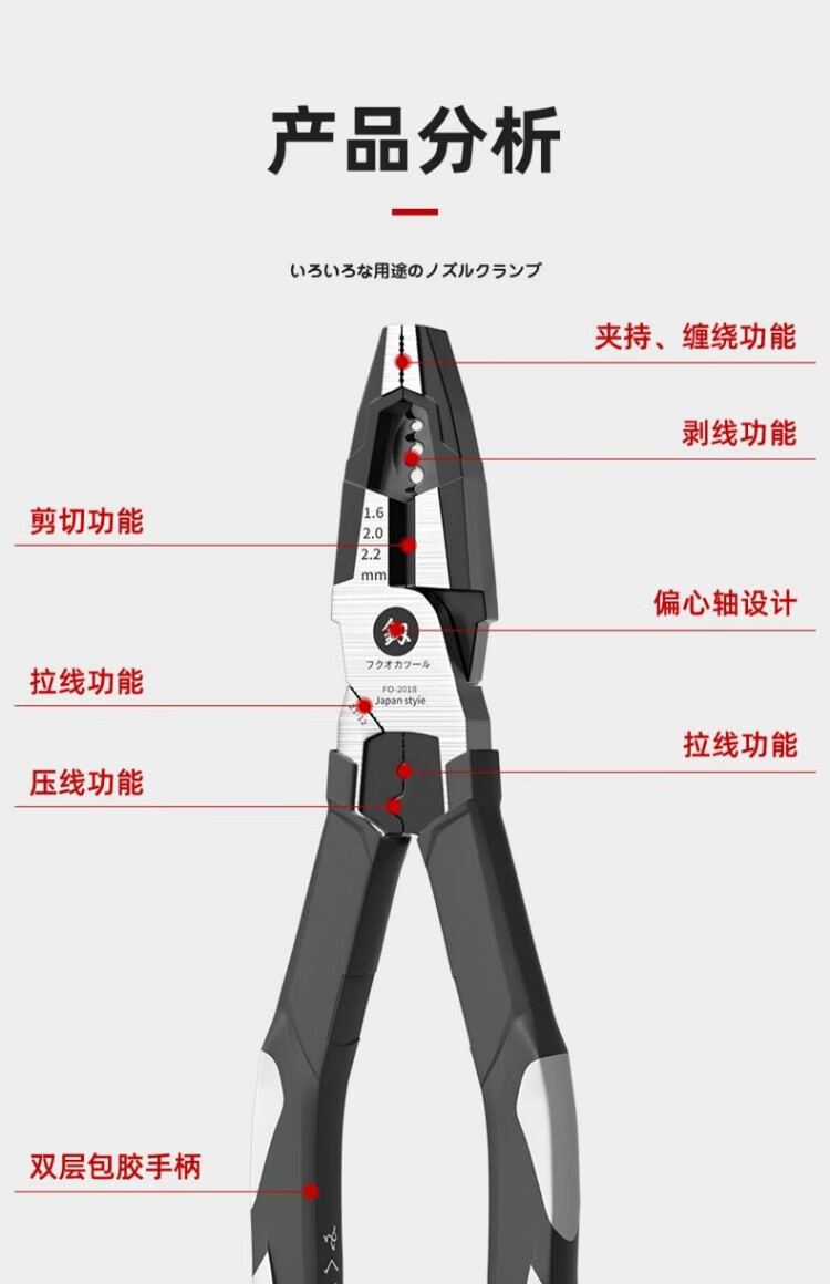 Fukuoka Tools multi-functional vise labor-saving wire pliers hard-edged wire stripping pliers crimping shearing tool 8 inches