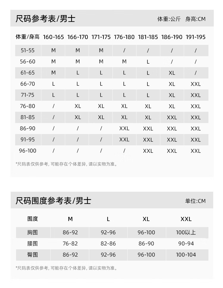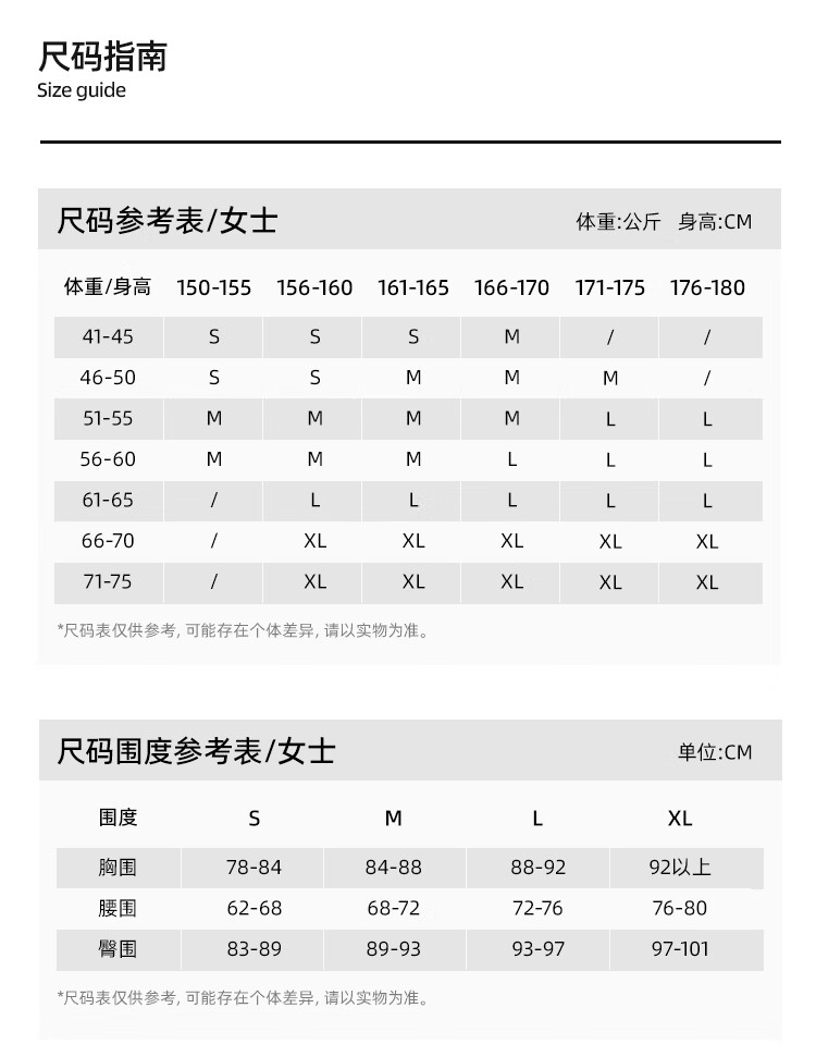 China (cm) 160-165/84-86 165-170 / 88-90 167-172 / 92-96 168-173 / 98-102 170-176 / 106-110