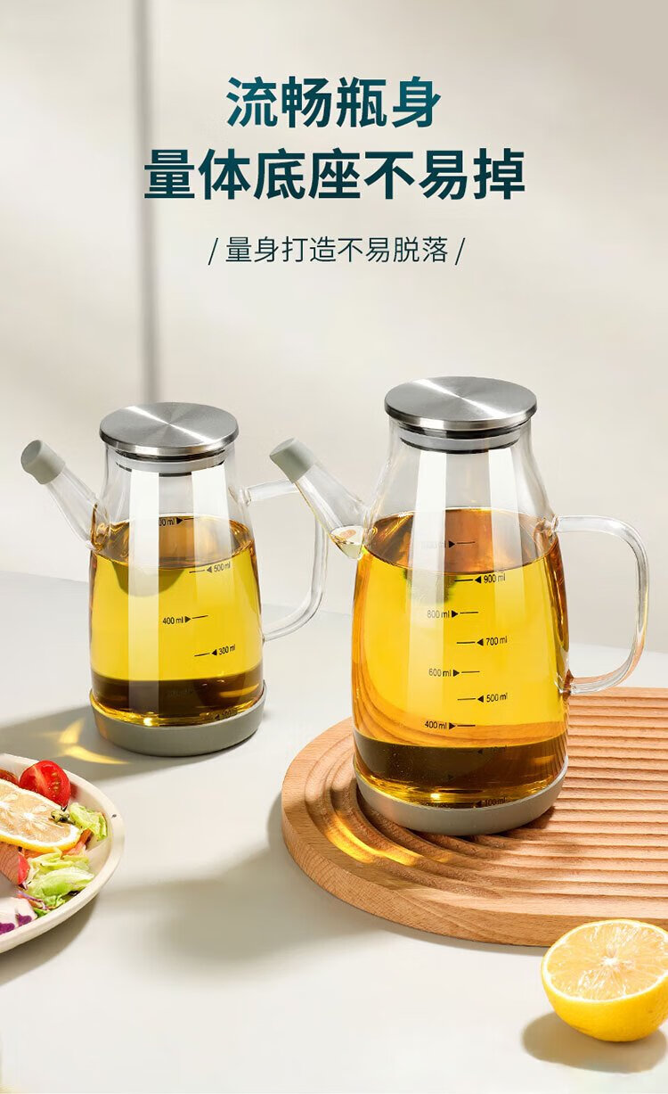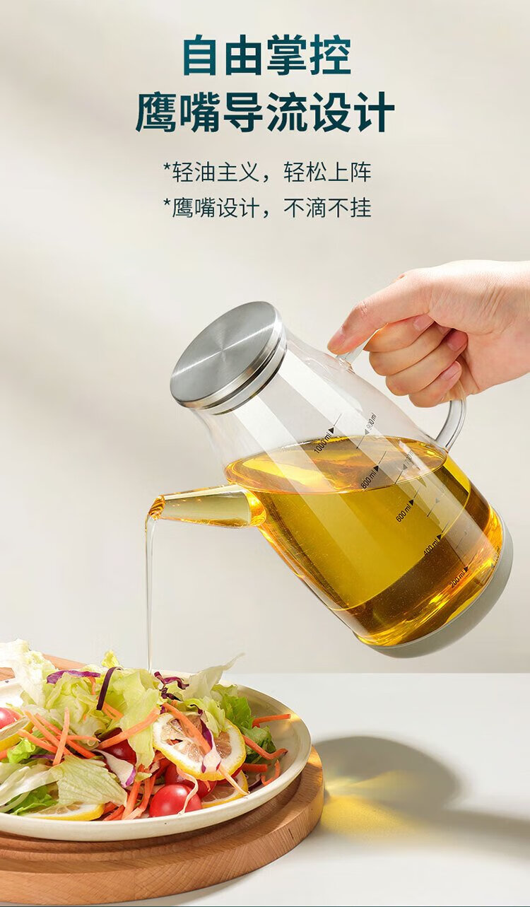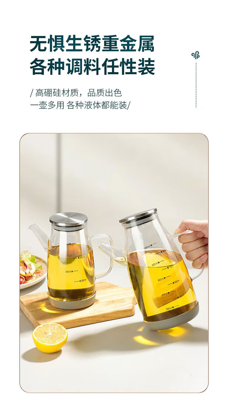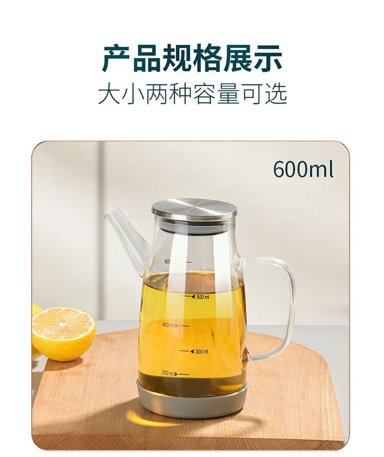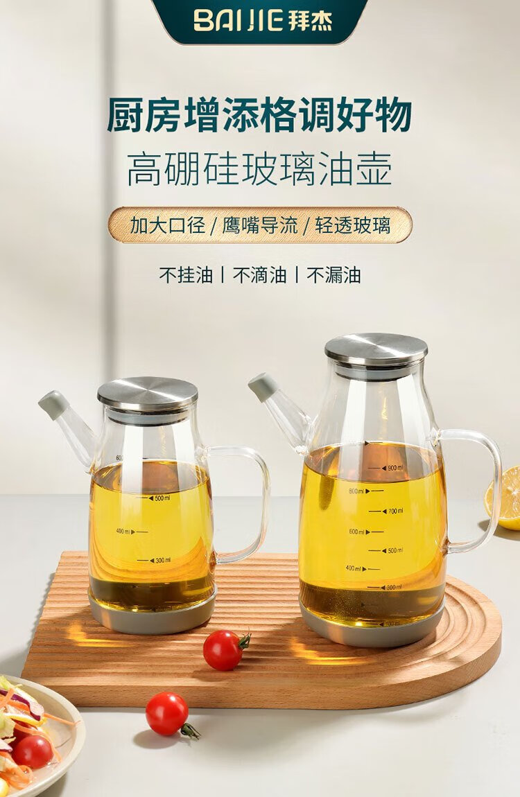 Baijie high borosilicate glass oil pot anti-leak spout does not hang oil kitchen oil bottle oil tank pot sesame oil soy sauce vinegar pot 600ml