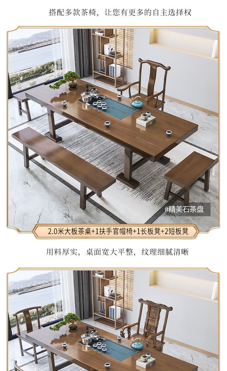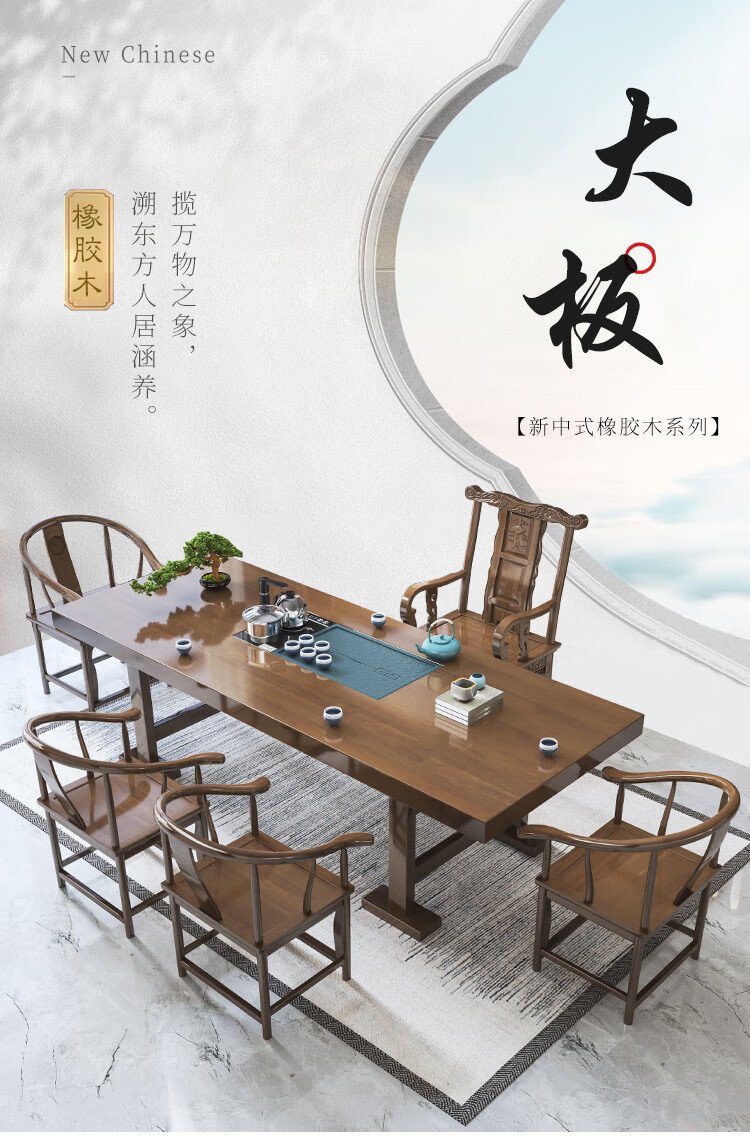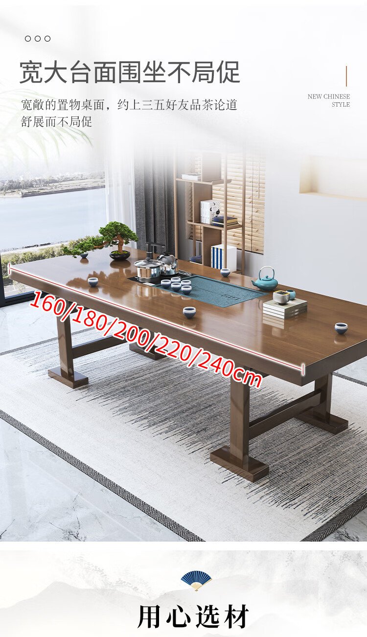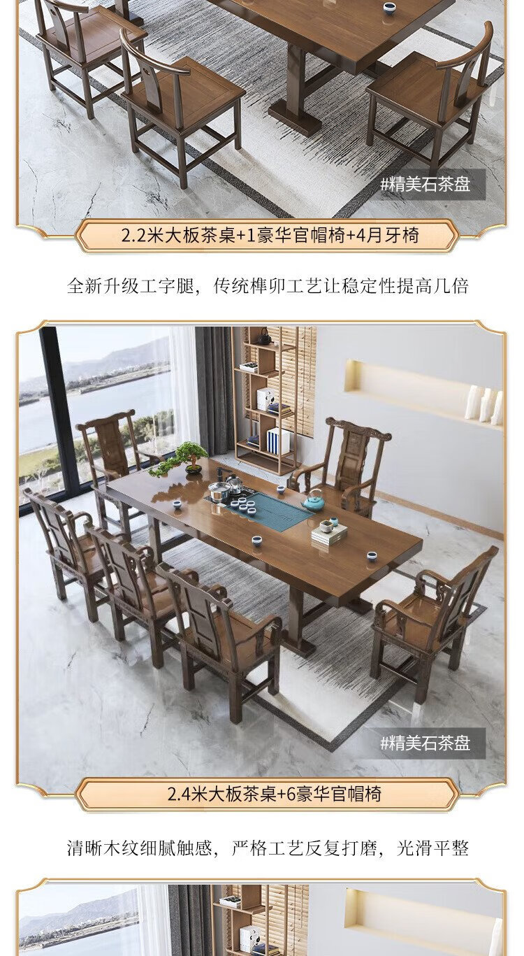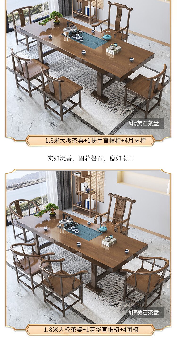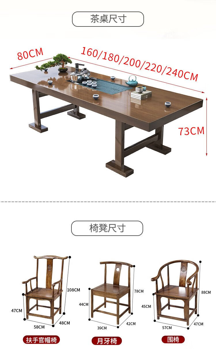 Mesa de té china Aitang de madera maciza, mesa de té de oficina, mesa de té plana de 1,6 metros + silla con sombrero oficial + 4 luna creciente