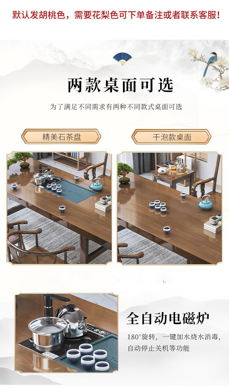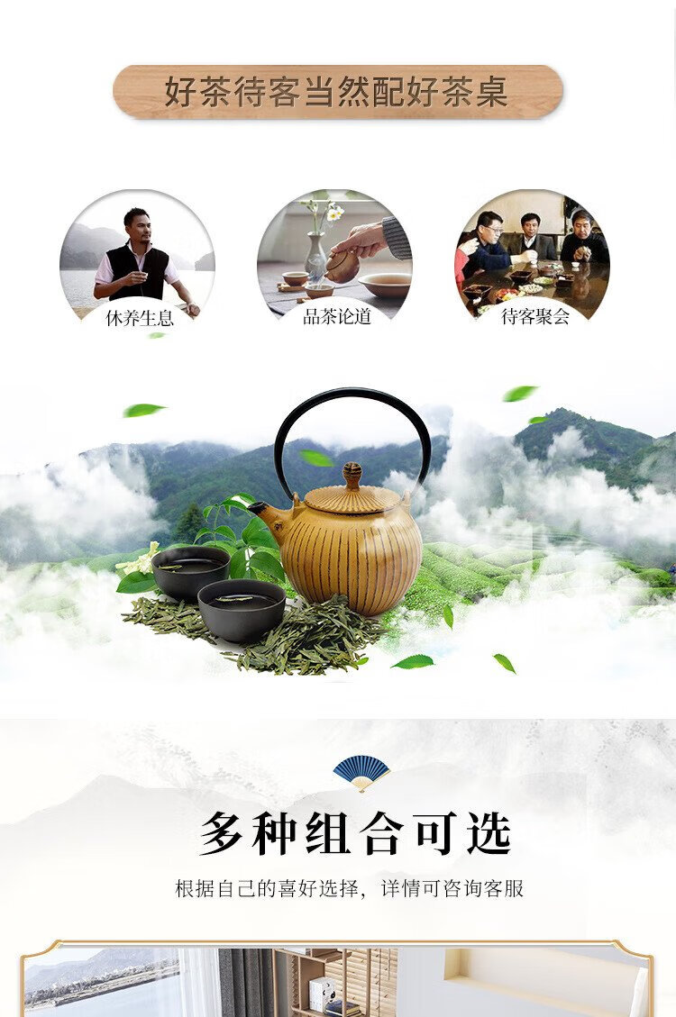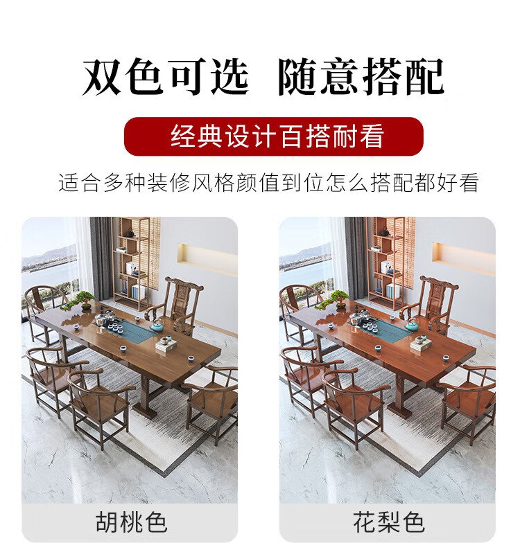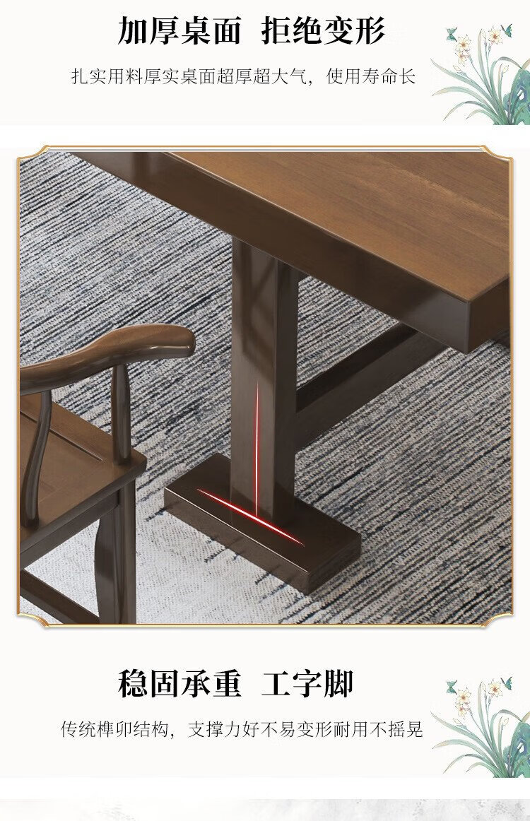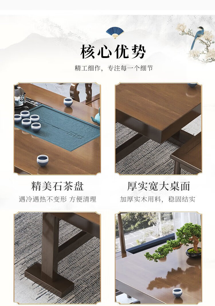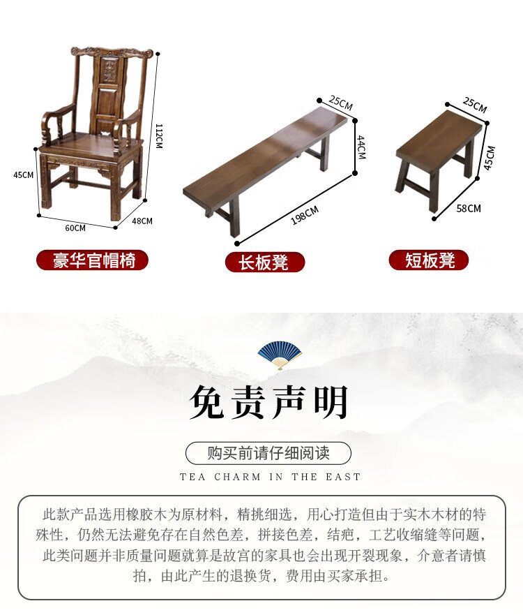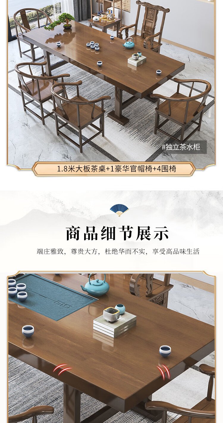 Mesa de té china Aitang de madera maciza, mesa de té de oficina, mesa de té plana de 1,6 metros + silla con sombrero oficial + 4 luna creciente
