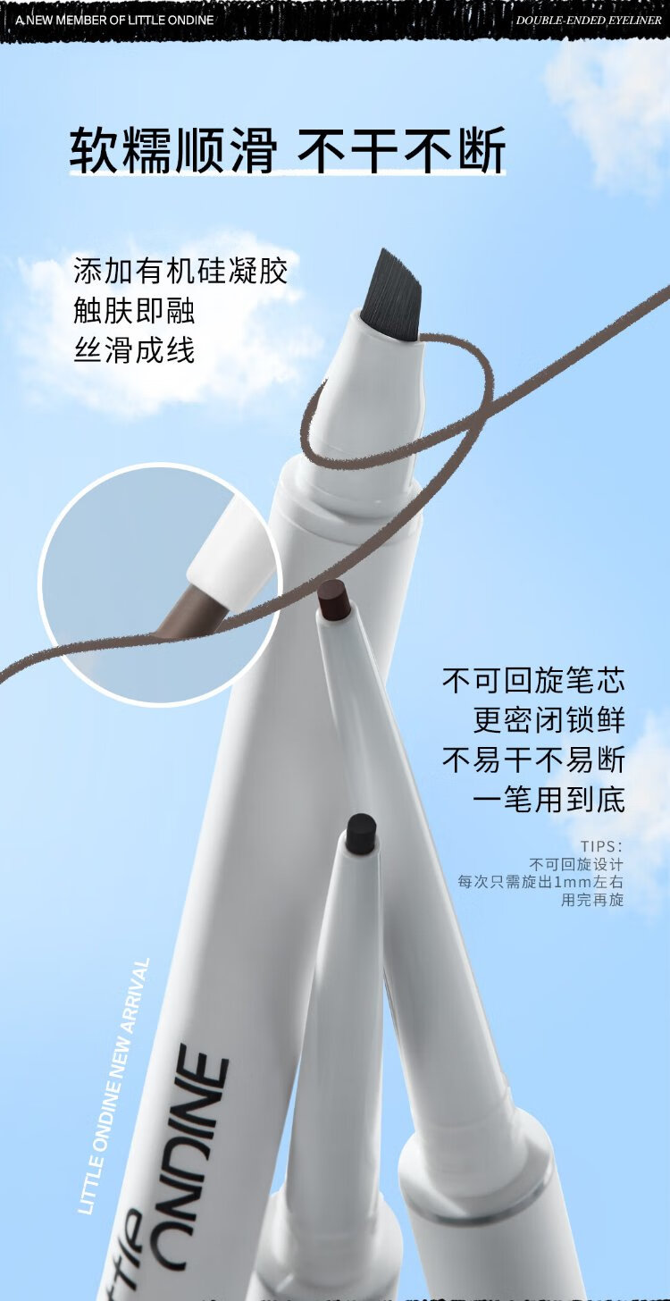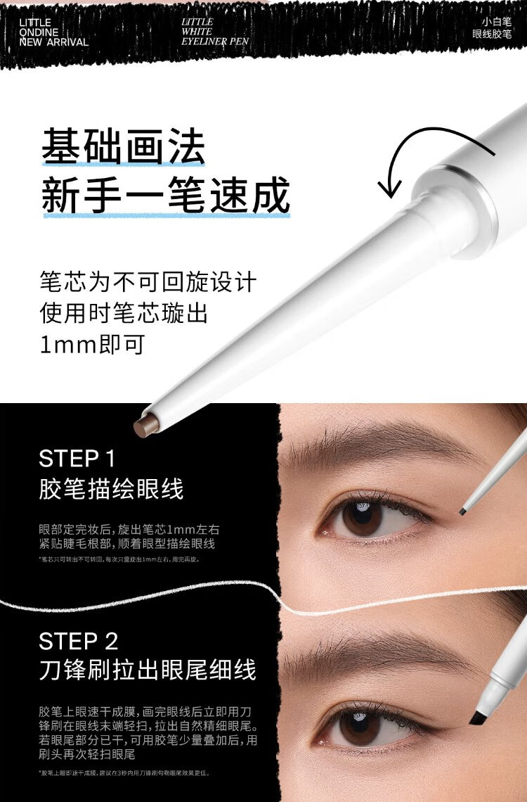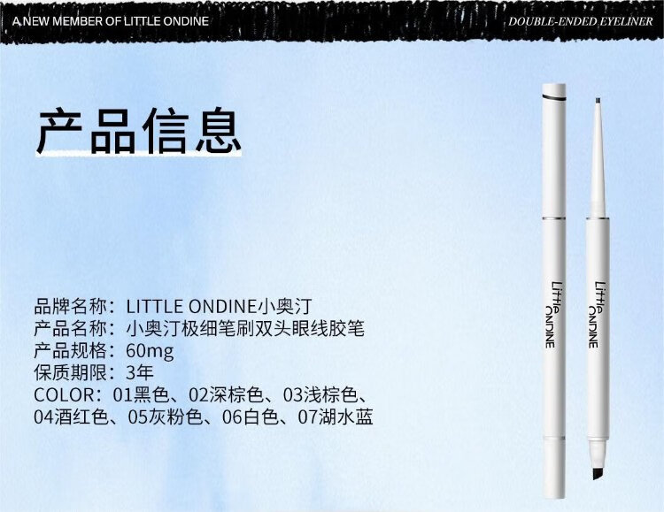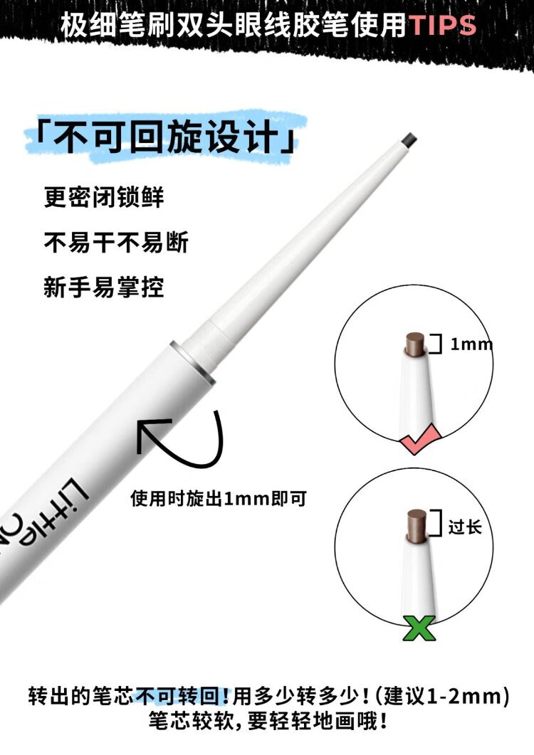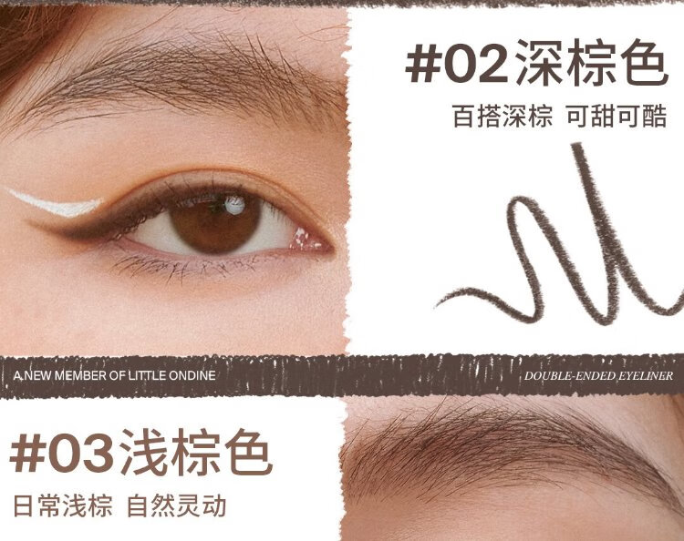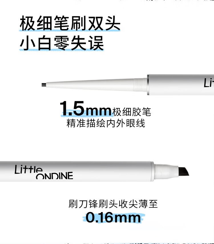 Littleondine eyeliner extremely fine brush double-ended eyeliner gel pen 02 dark brown 60mg waterproof and sweatproof not easy to smudge and long-lasting color