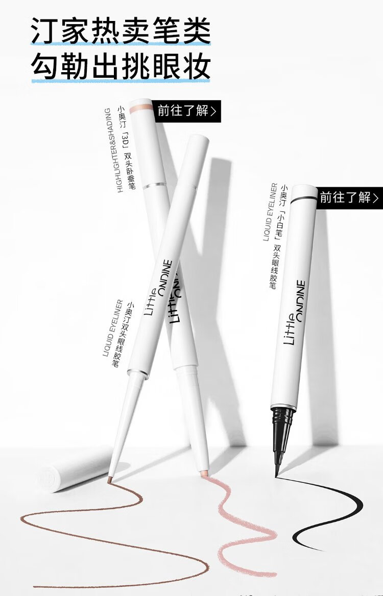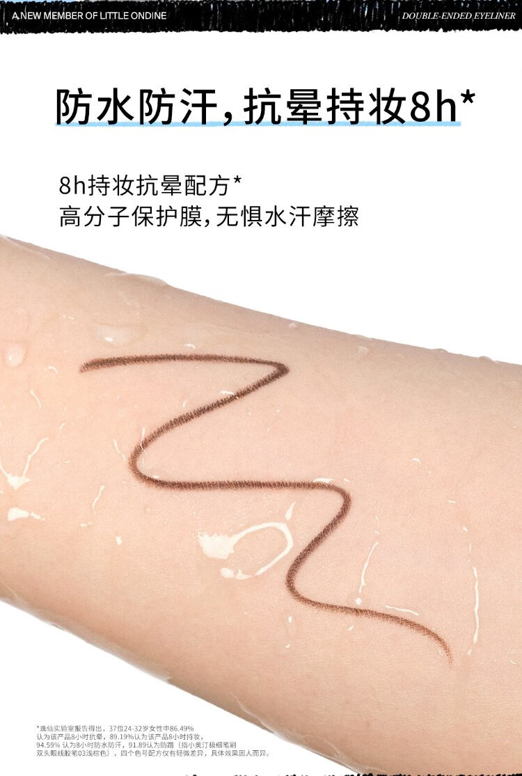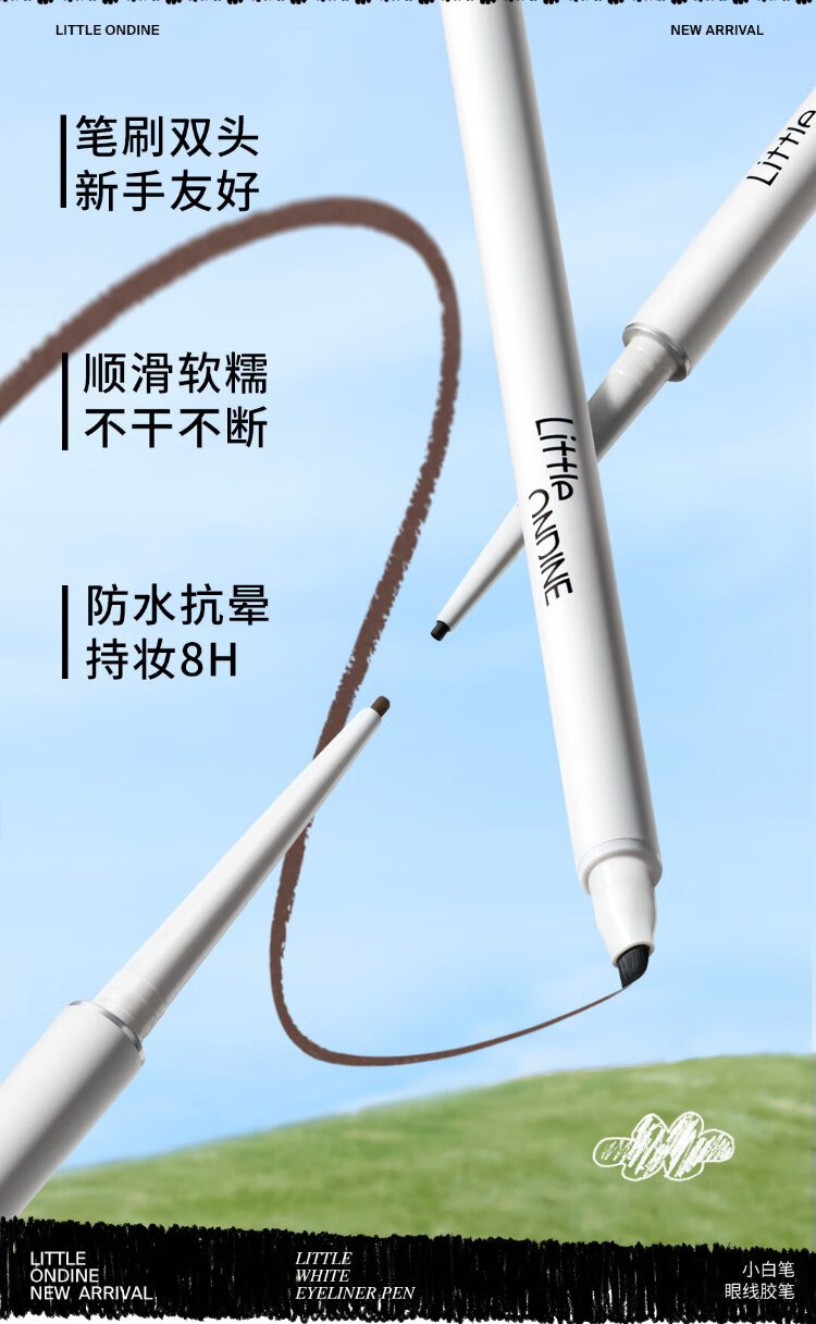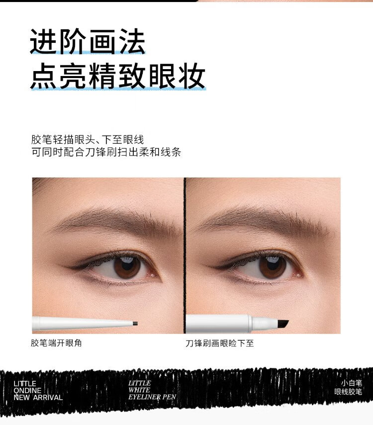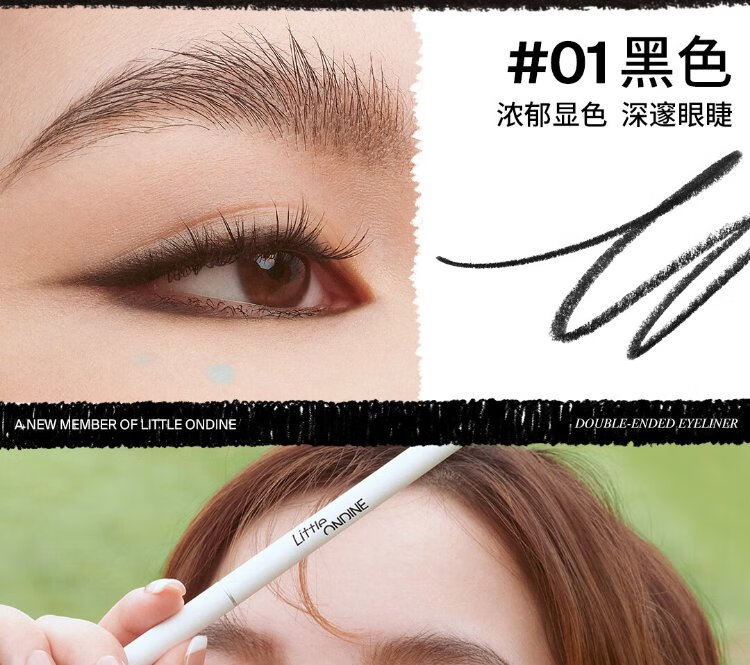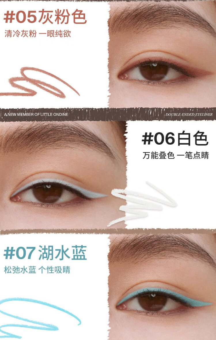 Littleondine eyeliner extremely fine brush double-ended eyeliner gel pen 02 dark brown 60mg waterproof and sweatproof not easy to smudge and long-lasting color