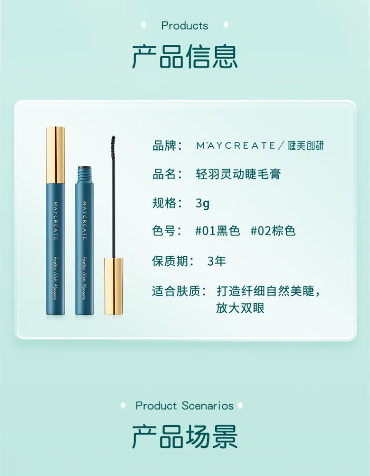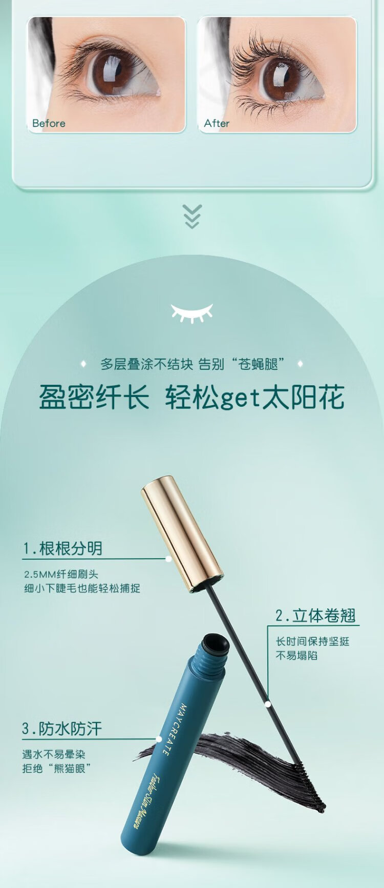 MAYCREATE eyelash primer 6g*2 pieces, natural black mascara, curling, shaping and thickening, long-lasting waterproof and sweat-proof for women