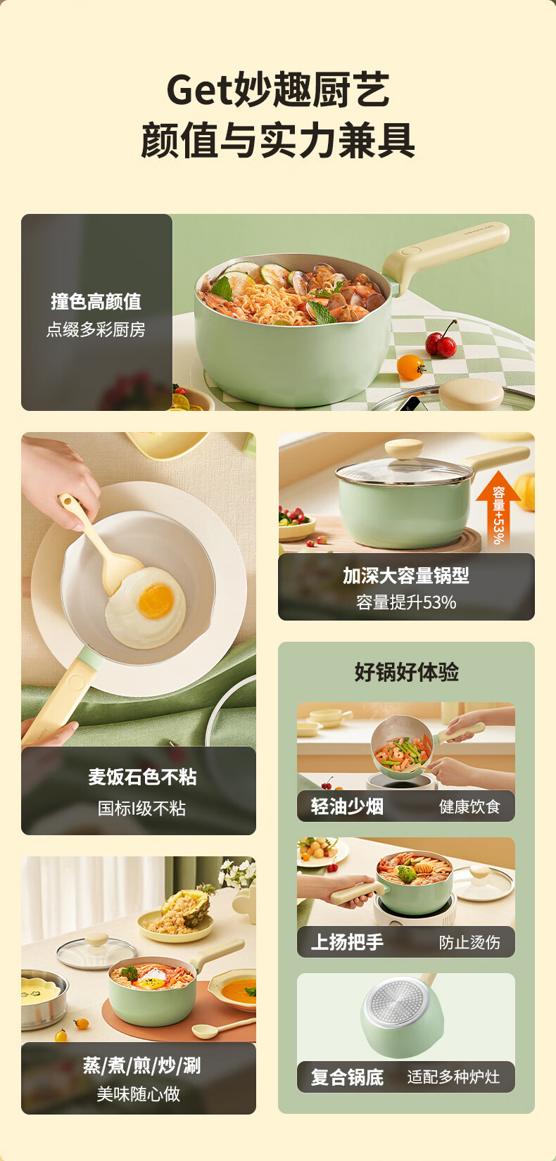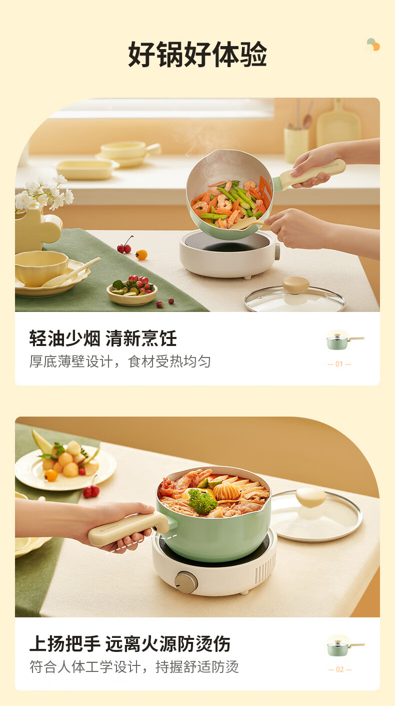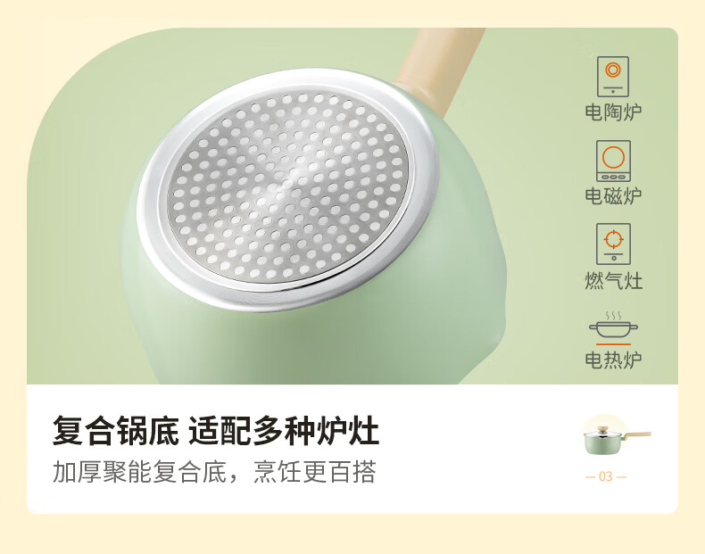 Joyoung Milk Pot Maifan Stone Color Non-stick Baby Food Pot 20cm Hot Milk Noodle Small Pot Gas Induction Cooker Universal Pot
