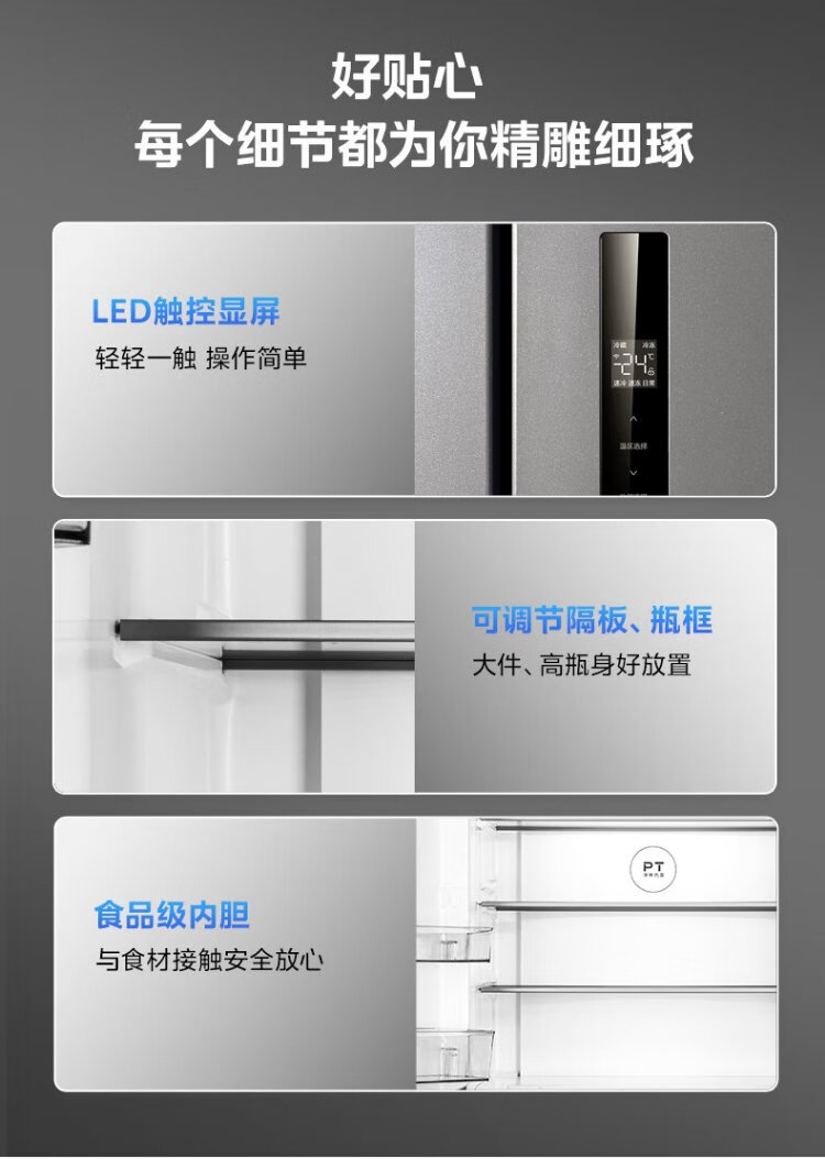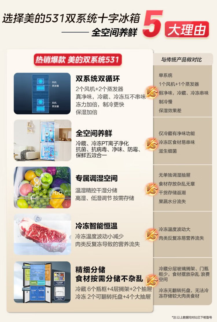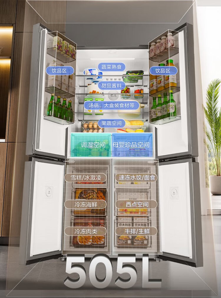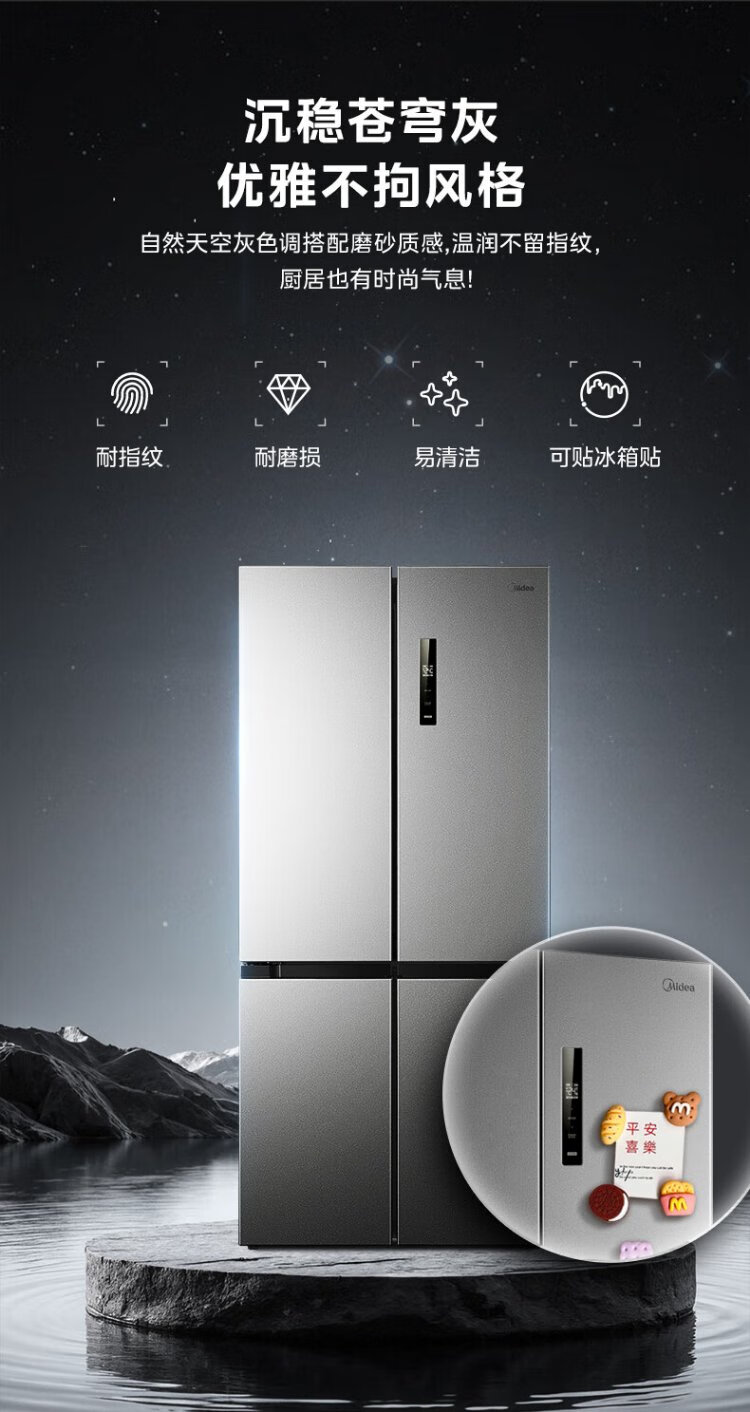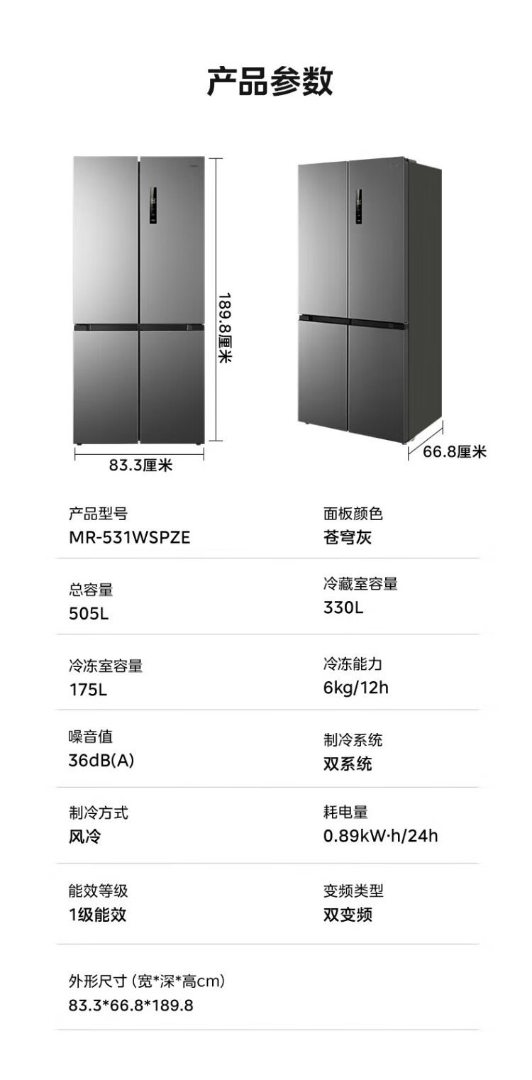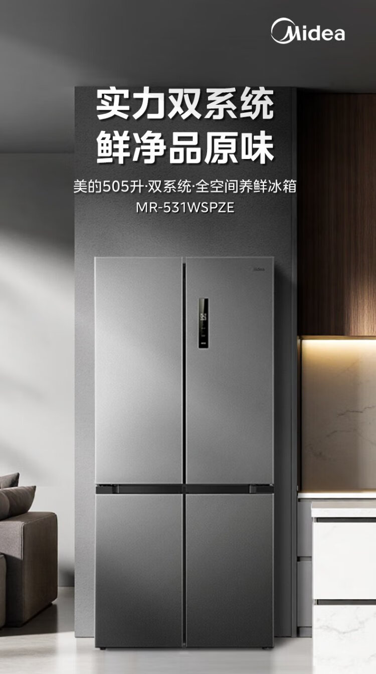 Midea 531 dual-system dual-cycle cross-open four-door air-cooled frost-free first-level inverter state-subsidized large-capacity household smart refrigerator MR-531WSPZE