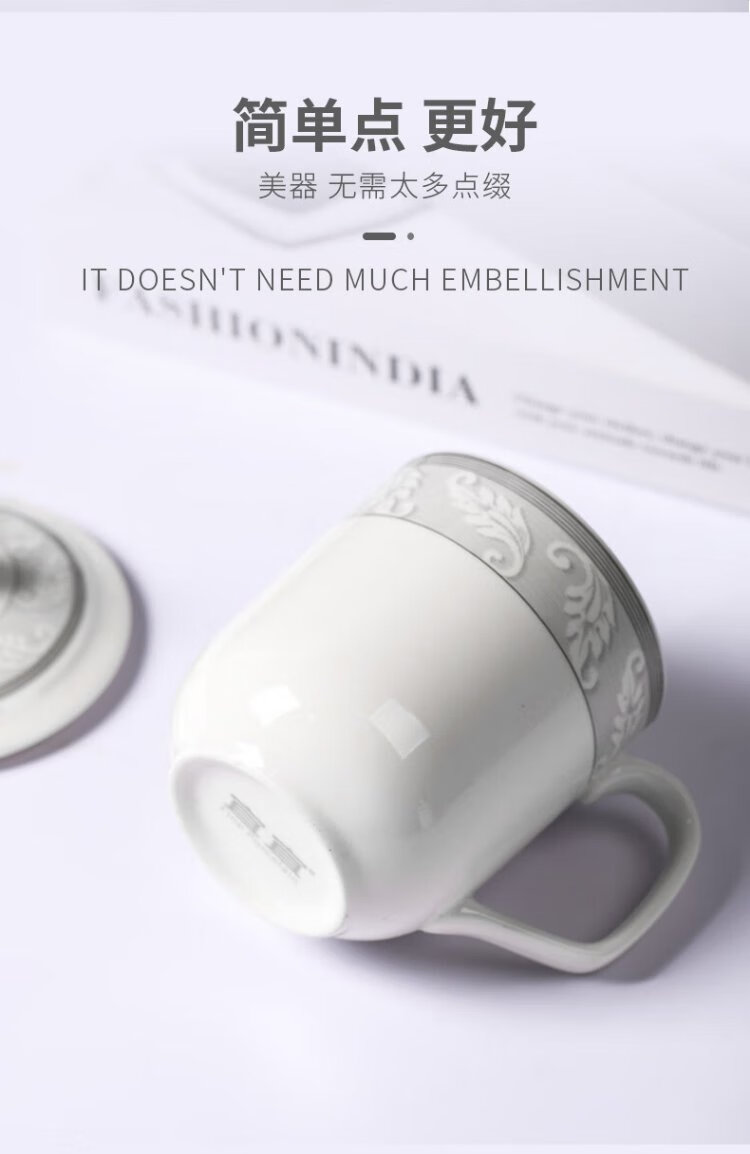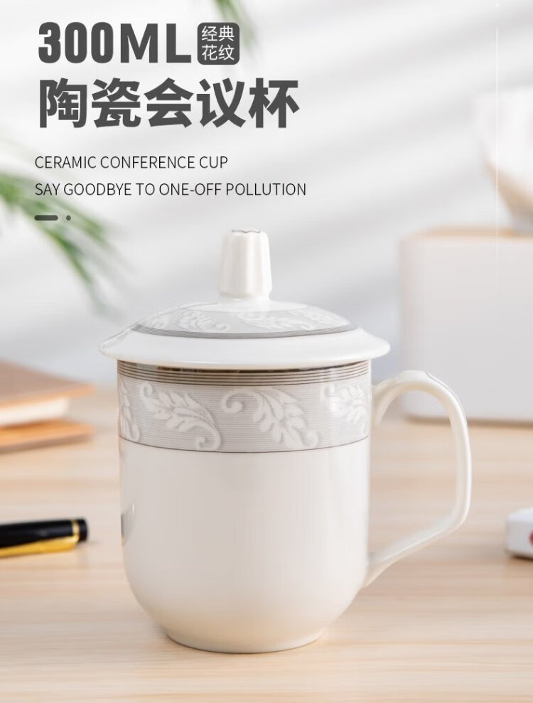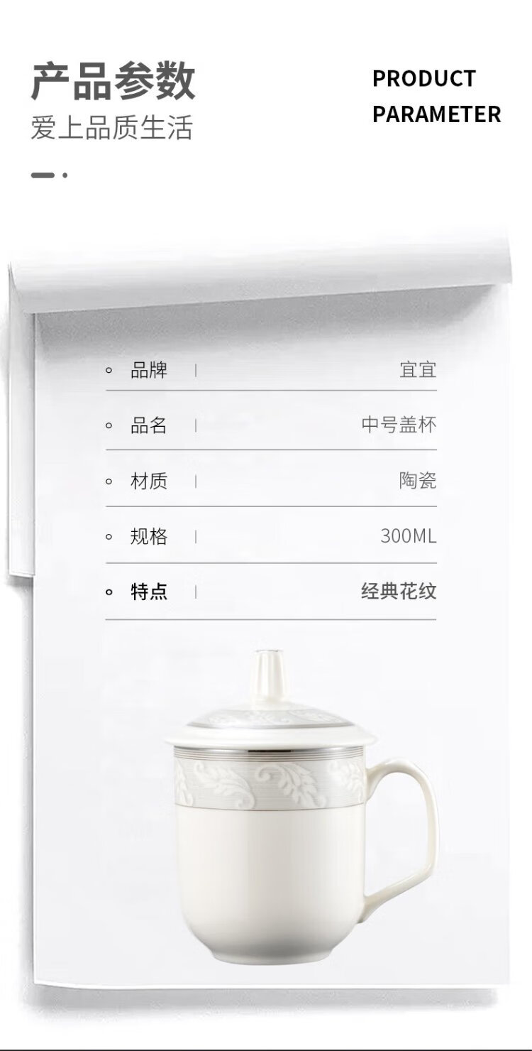 Yiyi ceramic medium lid cup 300ml mug with lid office meeting meeting reception tea cup water cup